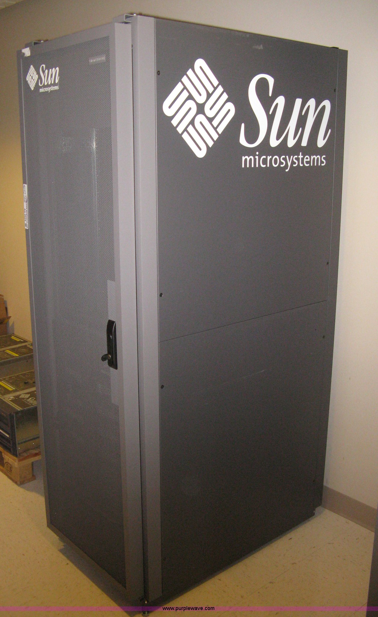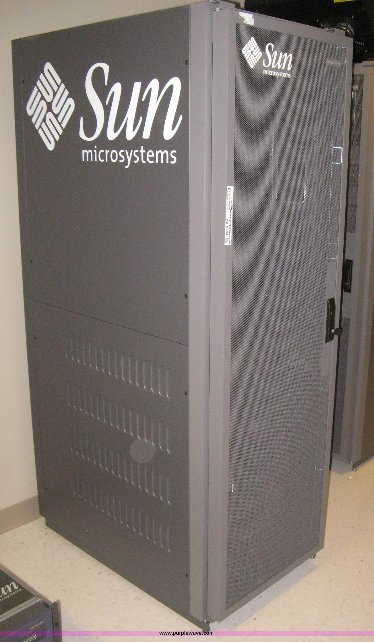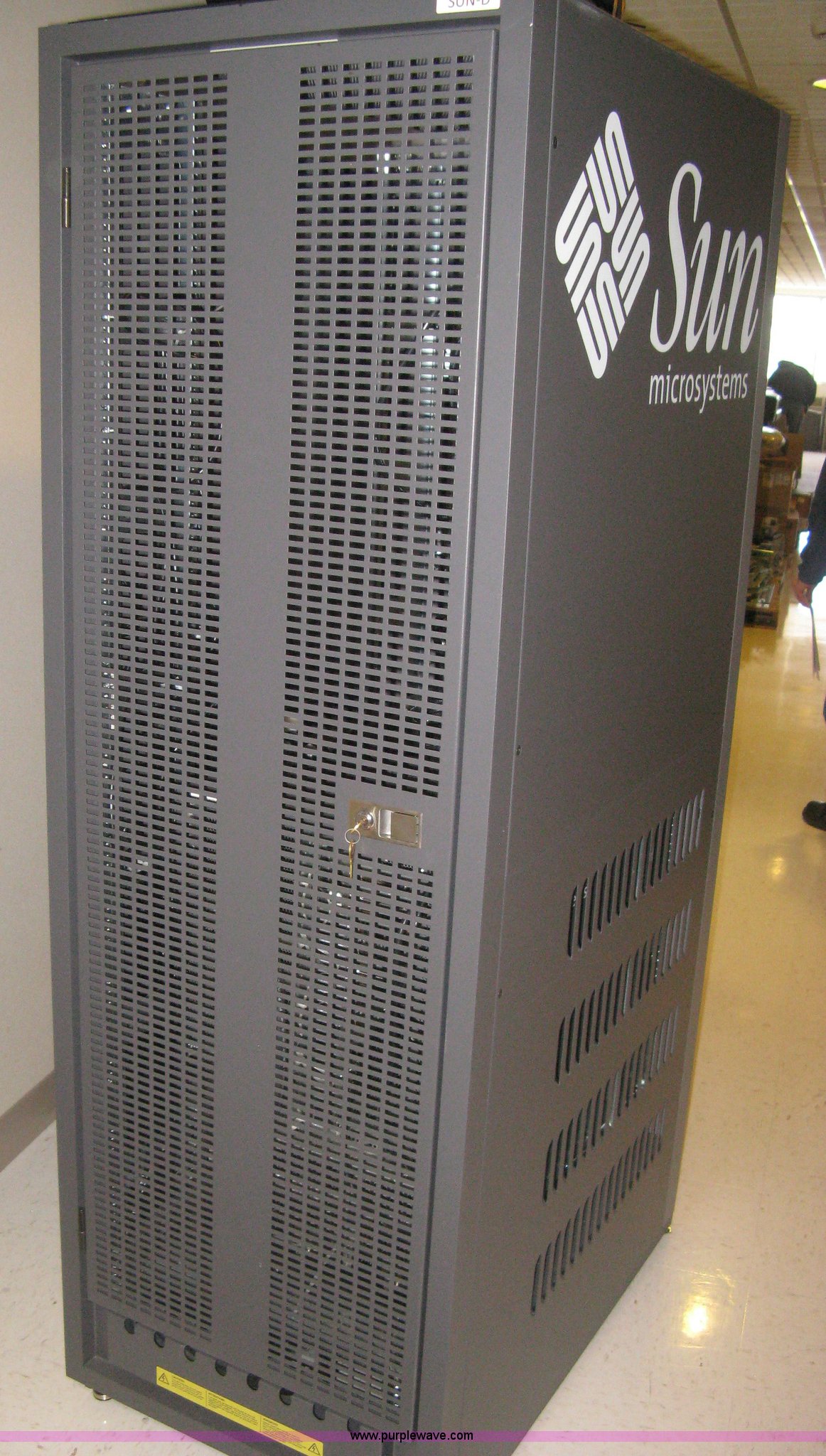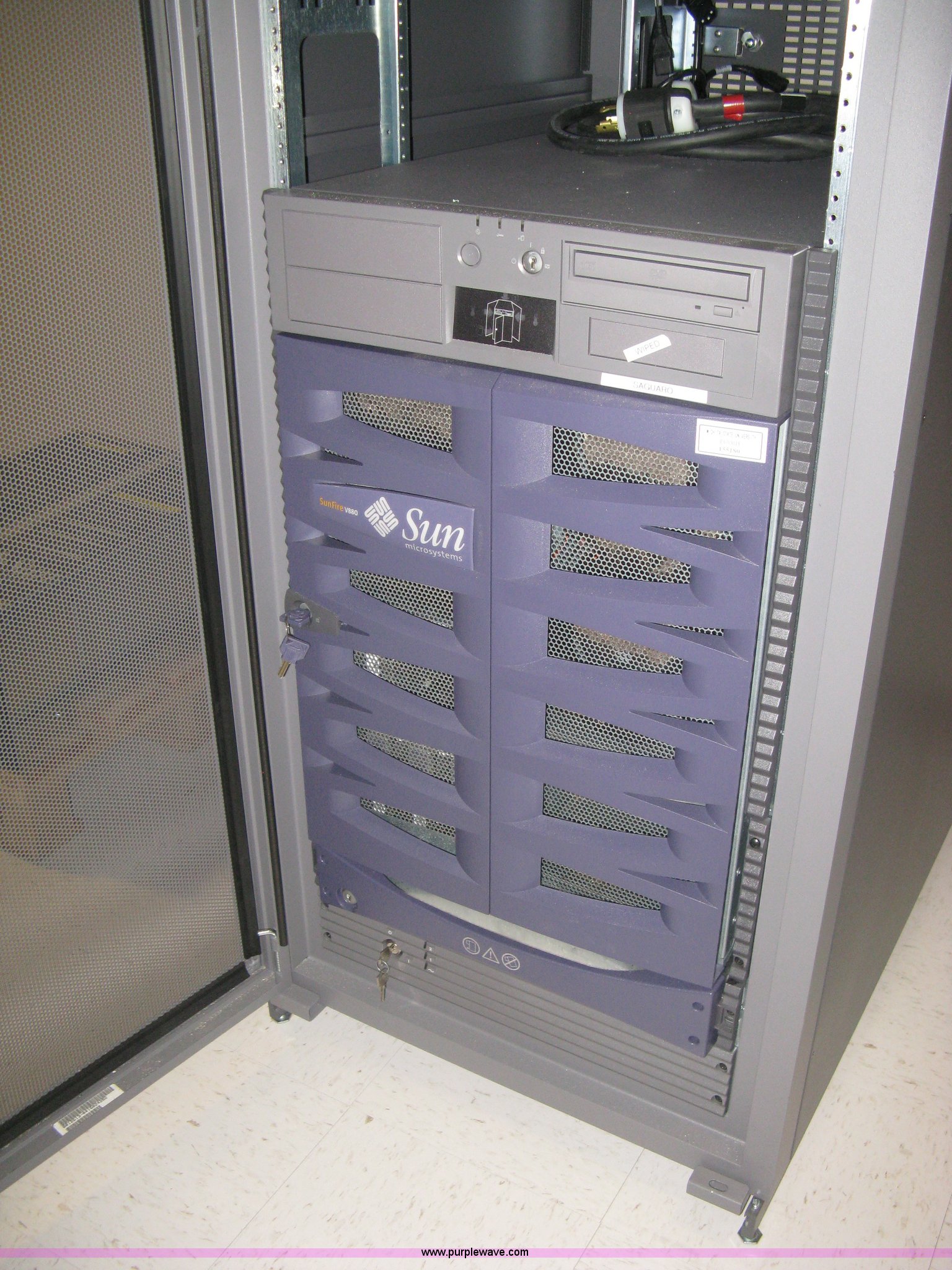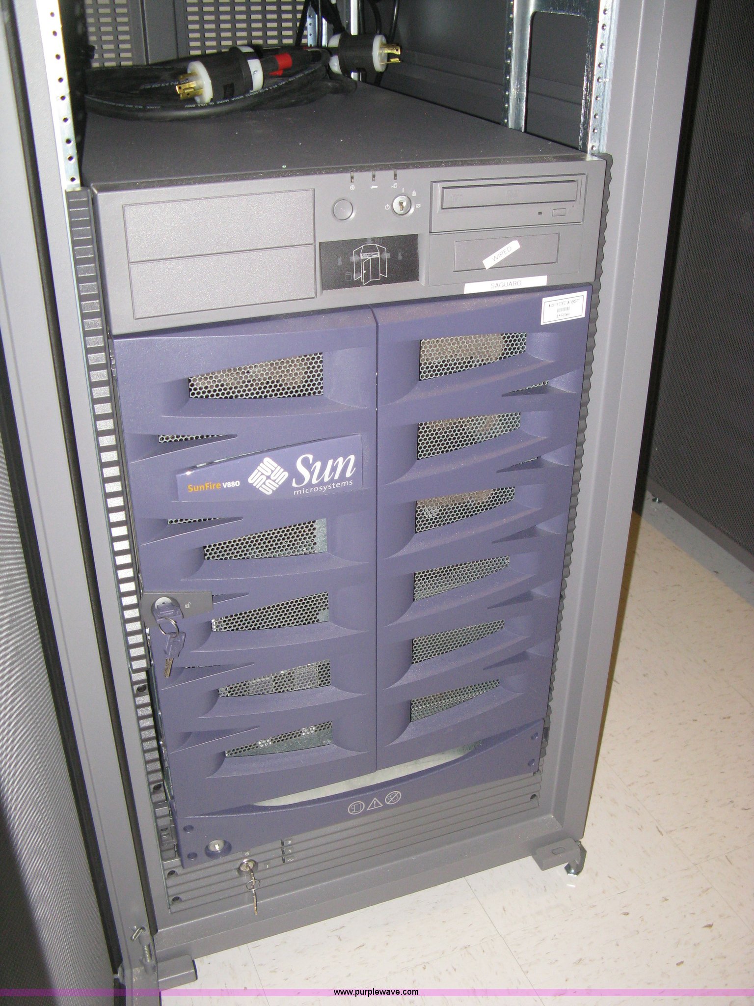 Purple Wave is selling a used Computers in Kansas. This item is a Sun Sunfire V880 rack mount server with Sun StorEdge rack with the following: (4) 1200 MHz ultaSparcIII+ processors, (6) Seagate 72 GB hard drives, DVD drive, (2) ethernet ports, (2) RS232(DB25), (2) USB ports, (9) PCI ports, (2) power supplies, 18.9"W x 32.9"D x 28.1"H, Approximately 200 lbs, Sun cabinet with integrated power distribution, 24"W x 39.5"D x 72"H, 38 RU available, 114 mounting holes front and back, 350 lbs empty