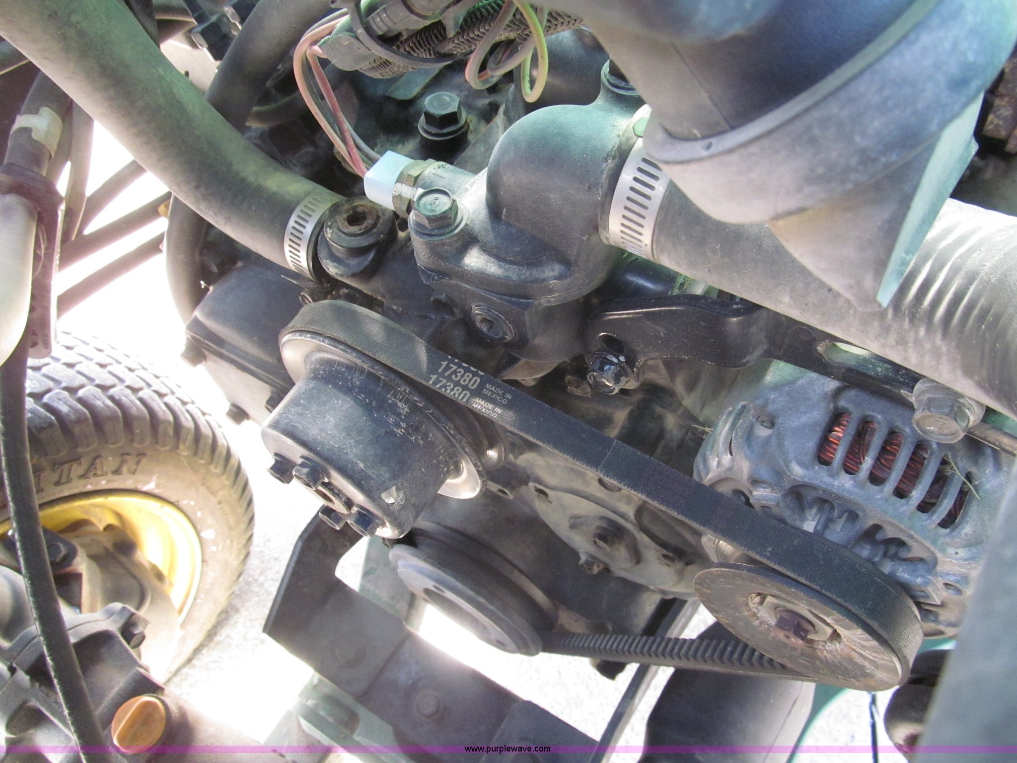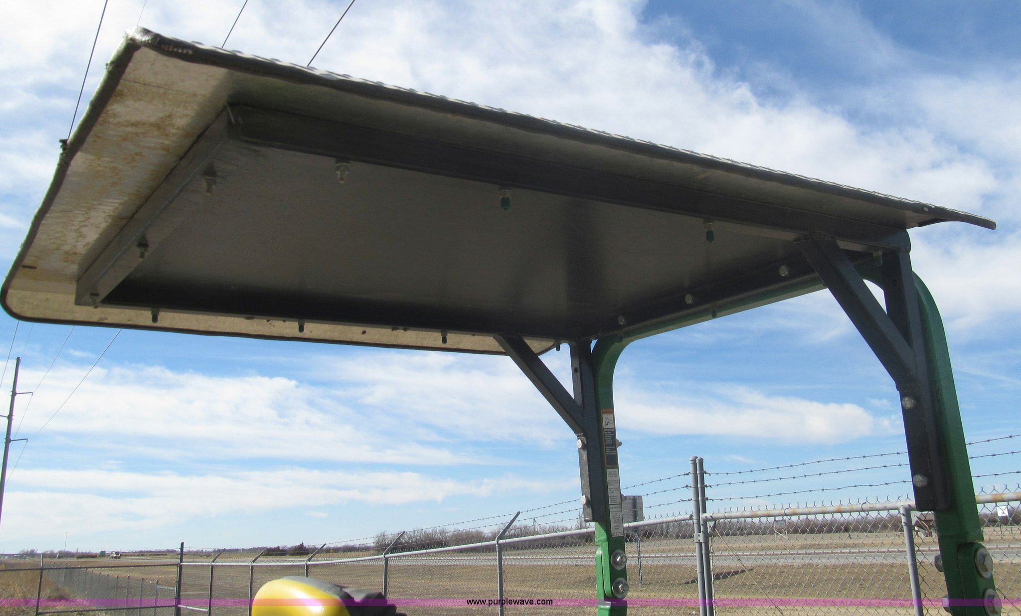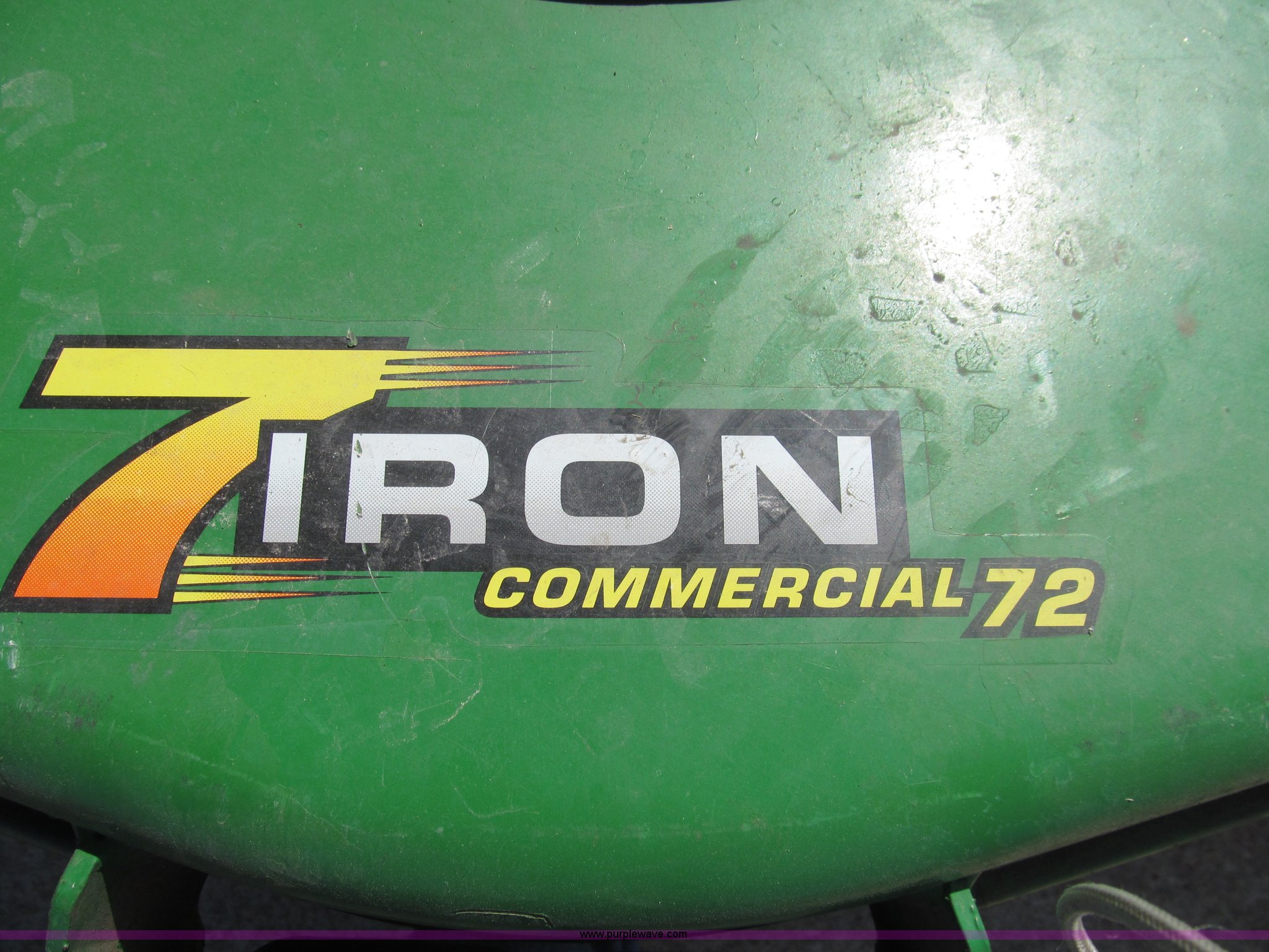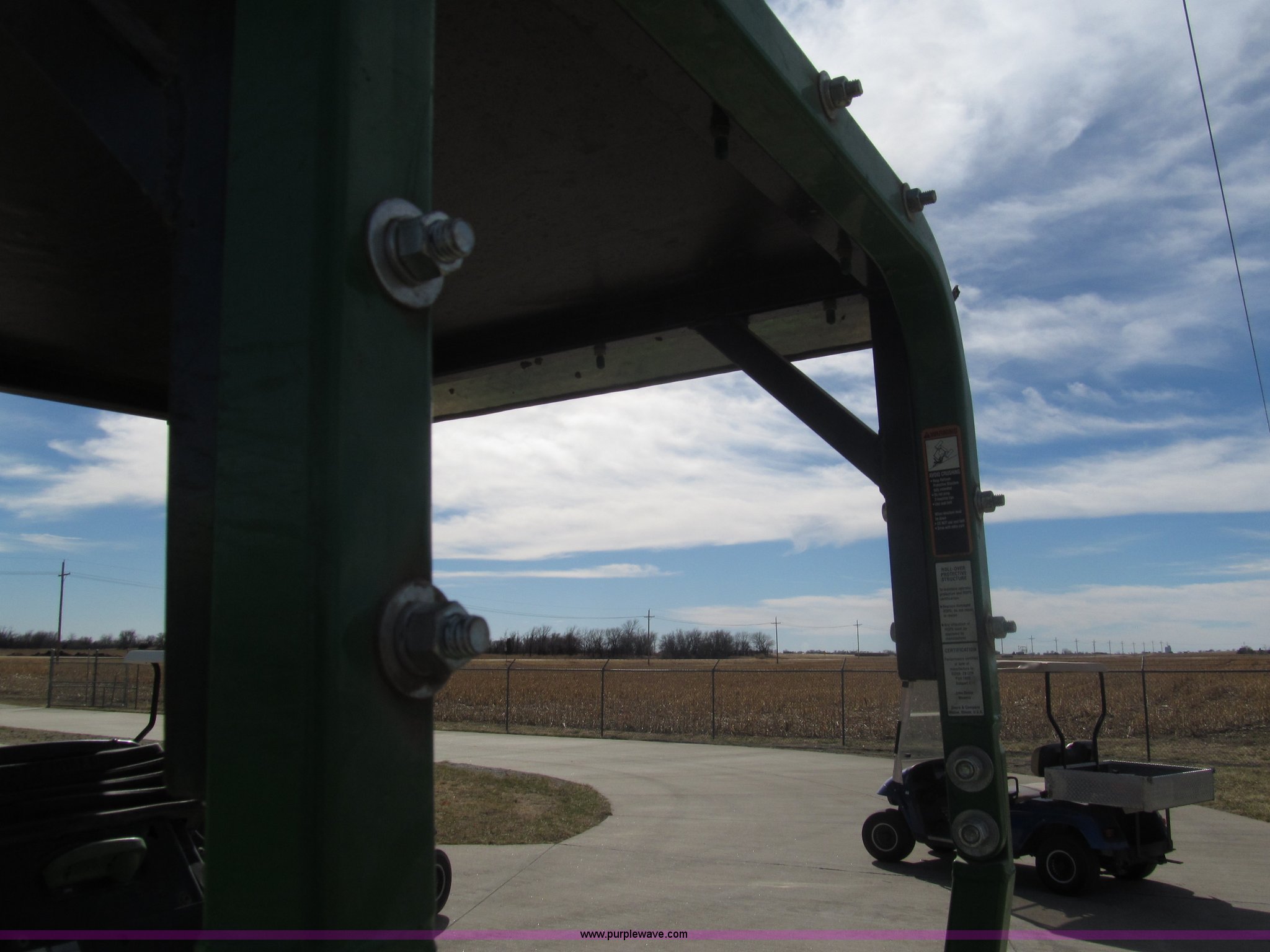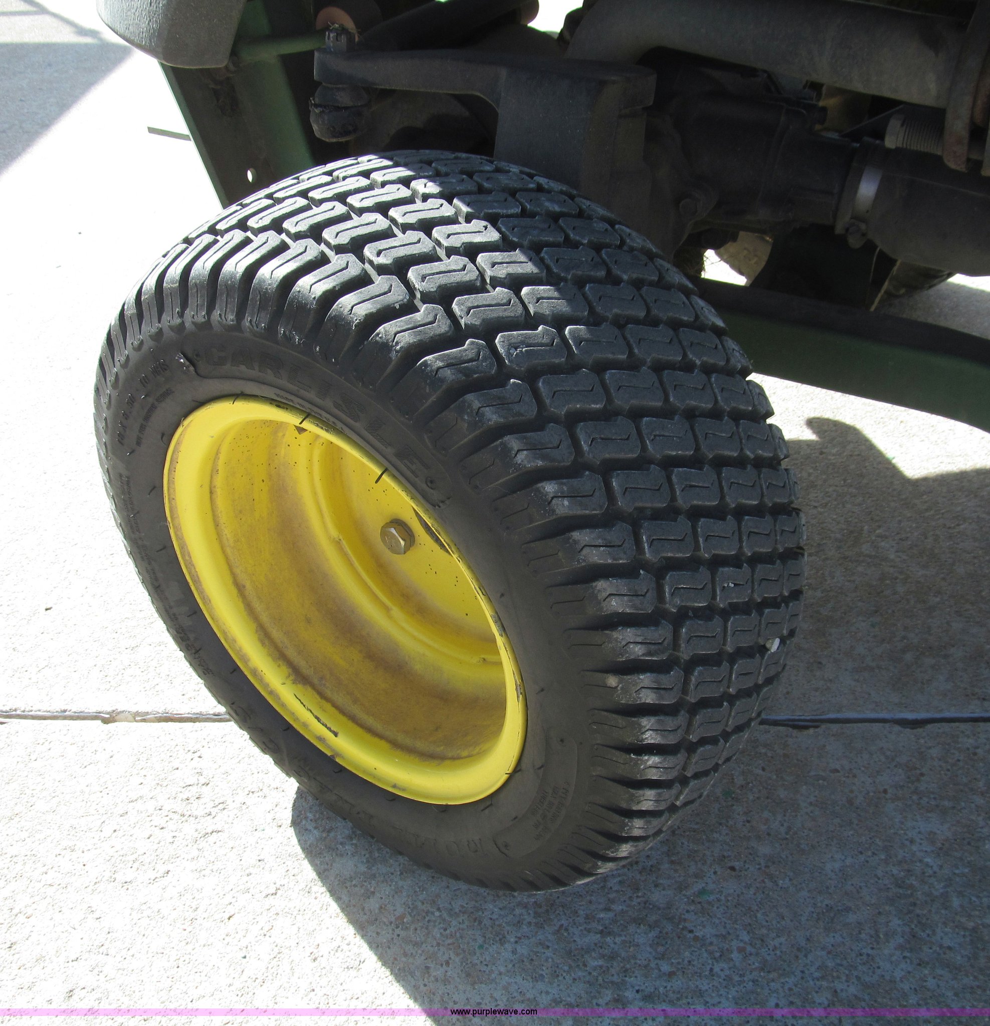 Purple Wave is selling a used Commercial Turf Mower in Kansas. This item is a John Deere 1445 lawn mower with the following: 809 hours on meter, 72" cutting capacity, Three cylinder diesel engine, Model 3012D008, Serial CH3512D030244, Hydrostatic transmission, Four wheel drive, Shop built canopy, Model 7 Iron Commercial 72 deck, Hydraulic deck raise and lower, 23 x 10.50-12 tires, Additional blades