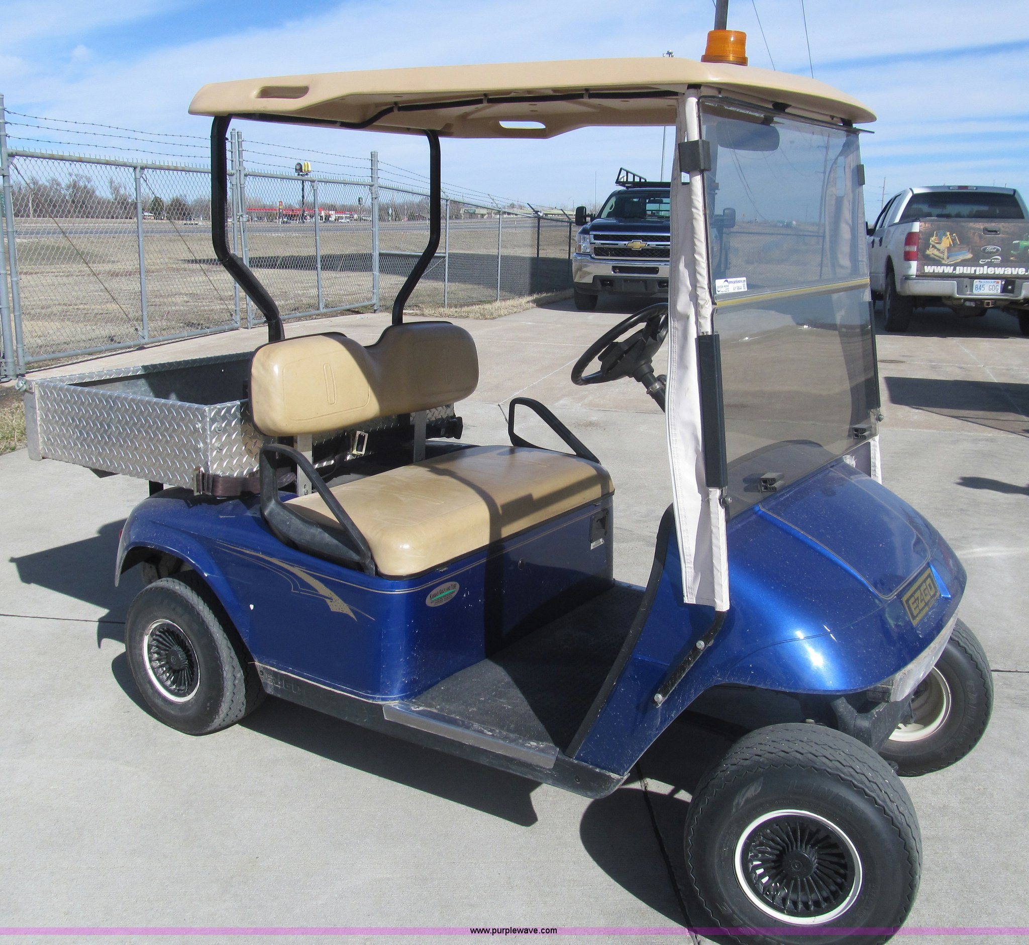 Purple Wave is selling a used Golf Cart in Kansas. This item is a Ez-go Textron electric golf cart with the following: 3' rigid bed, Draw bar, 18 x 8.5-8 tires, Recently replaced Trojan batteries, Charger, Serial 2409203