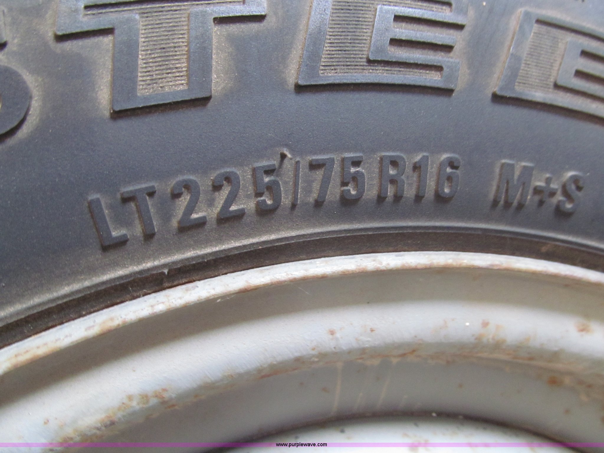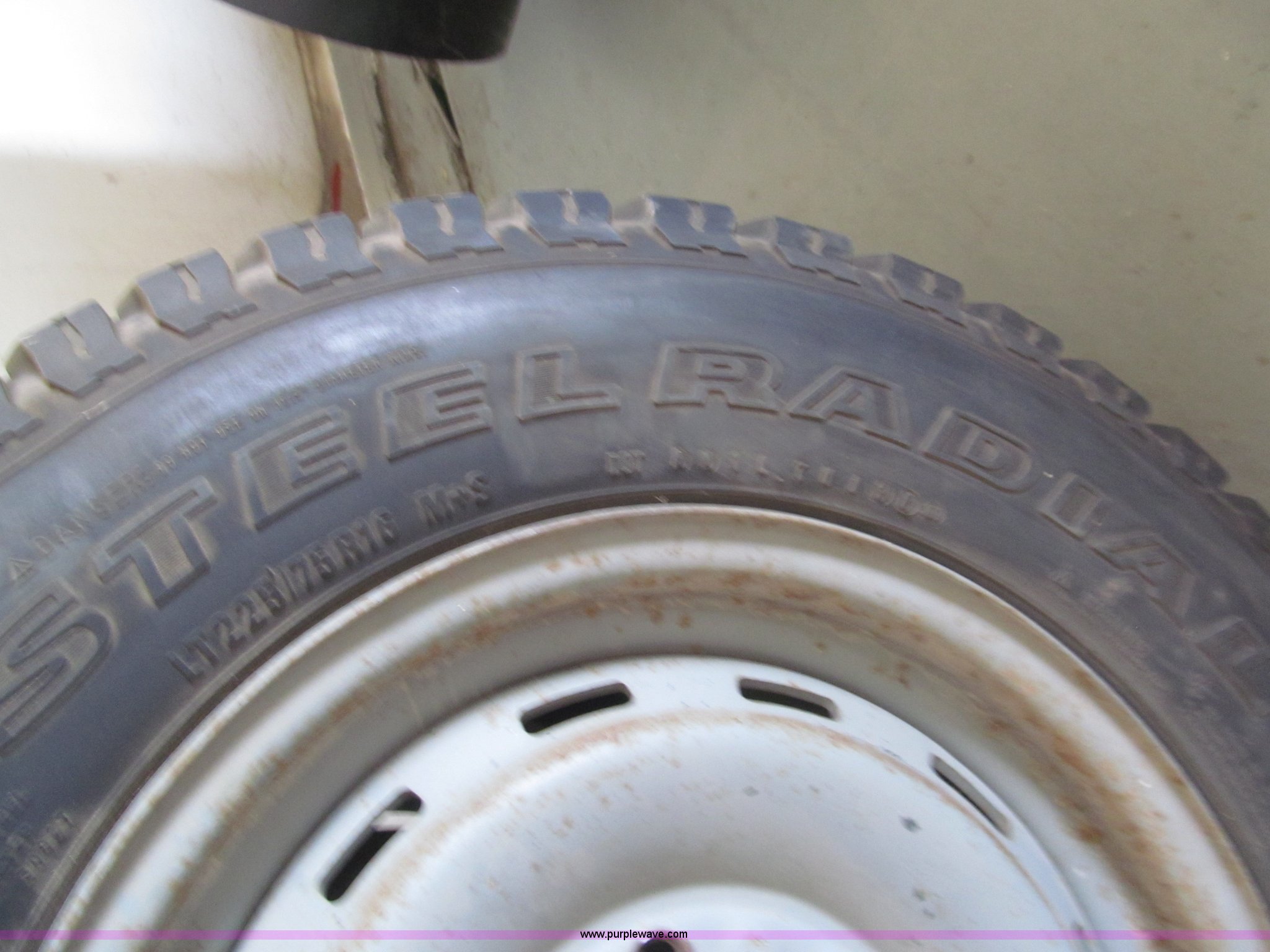 Purple Wave is selling a used Automotive Parts or Acces. in Kansas. This item is a Assorted tires and wheels with the following: (2) LT225/75R16 tires and wheels, Removed from 1/2 ton Chevrolet, Steel 16" wheel, Removed from a 1995 Ford F250