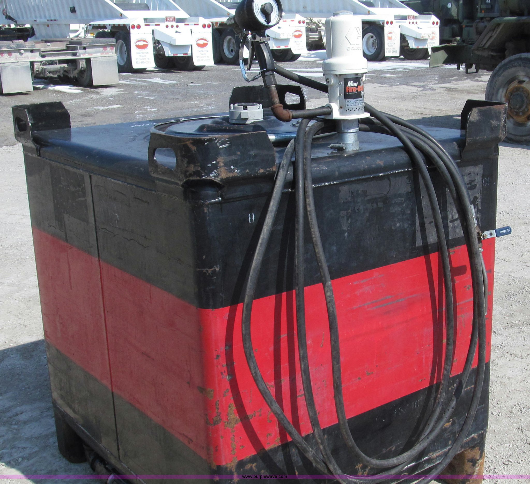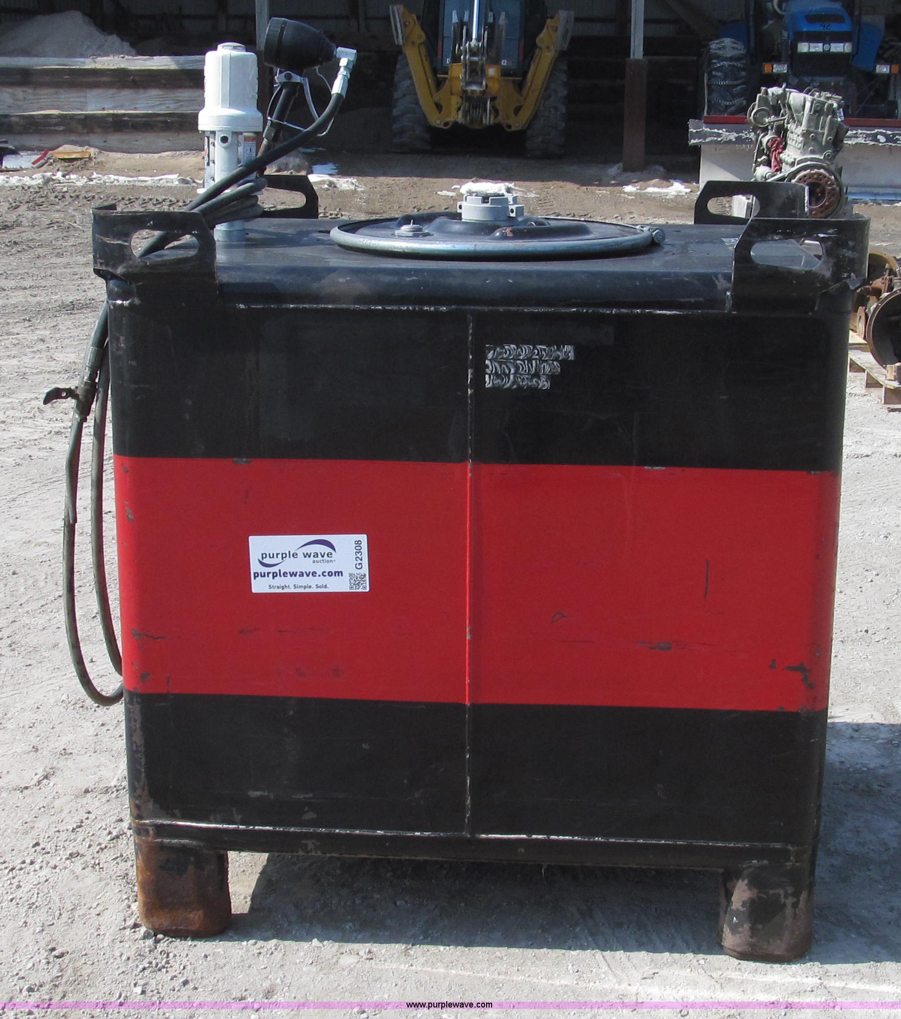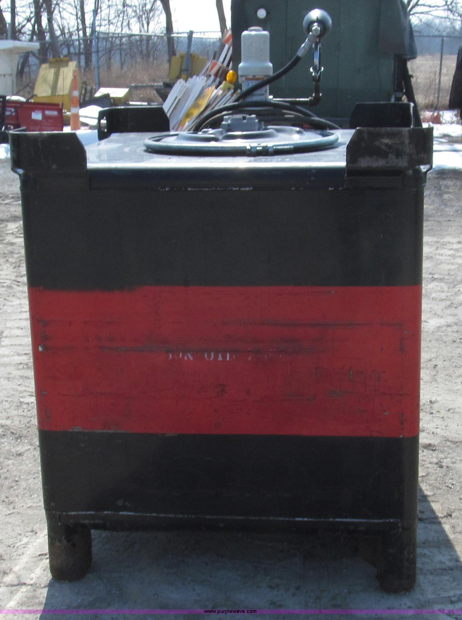 Purple Wave is selling a used Fuel and Lube in Missouri. This item is a Sun Oil bulk oil dispensing tank with the following: Approximately 250 gallon capacity, 43" x 48" square tank, 40"H, 6" legs, 2" bottom draw valve with cap, 22" diameter top mounted man hole, Graco Mini Fire-Ball air powered pump, Series J06A, Serial A07014, 180 psi, Hand dispenser meter, Pre-measured quarts, Dispense hole, Valve, Wand