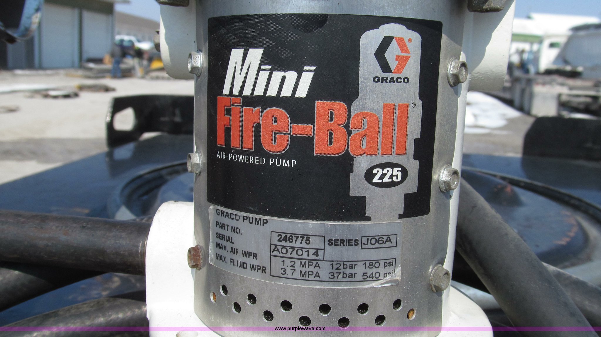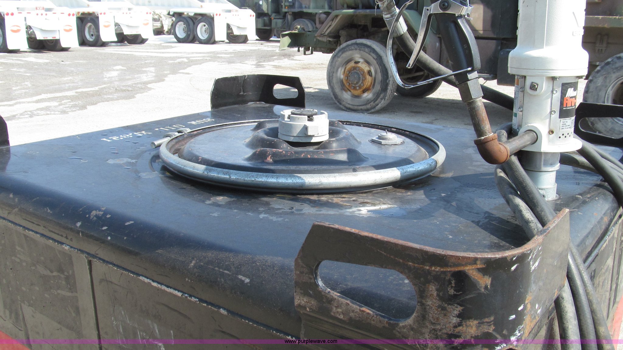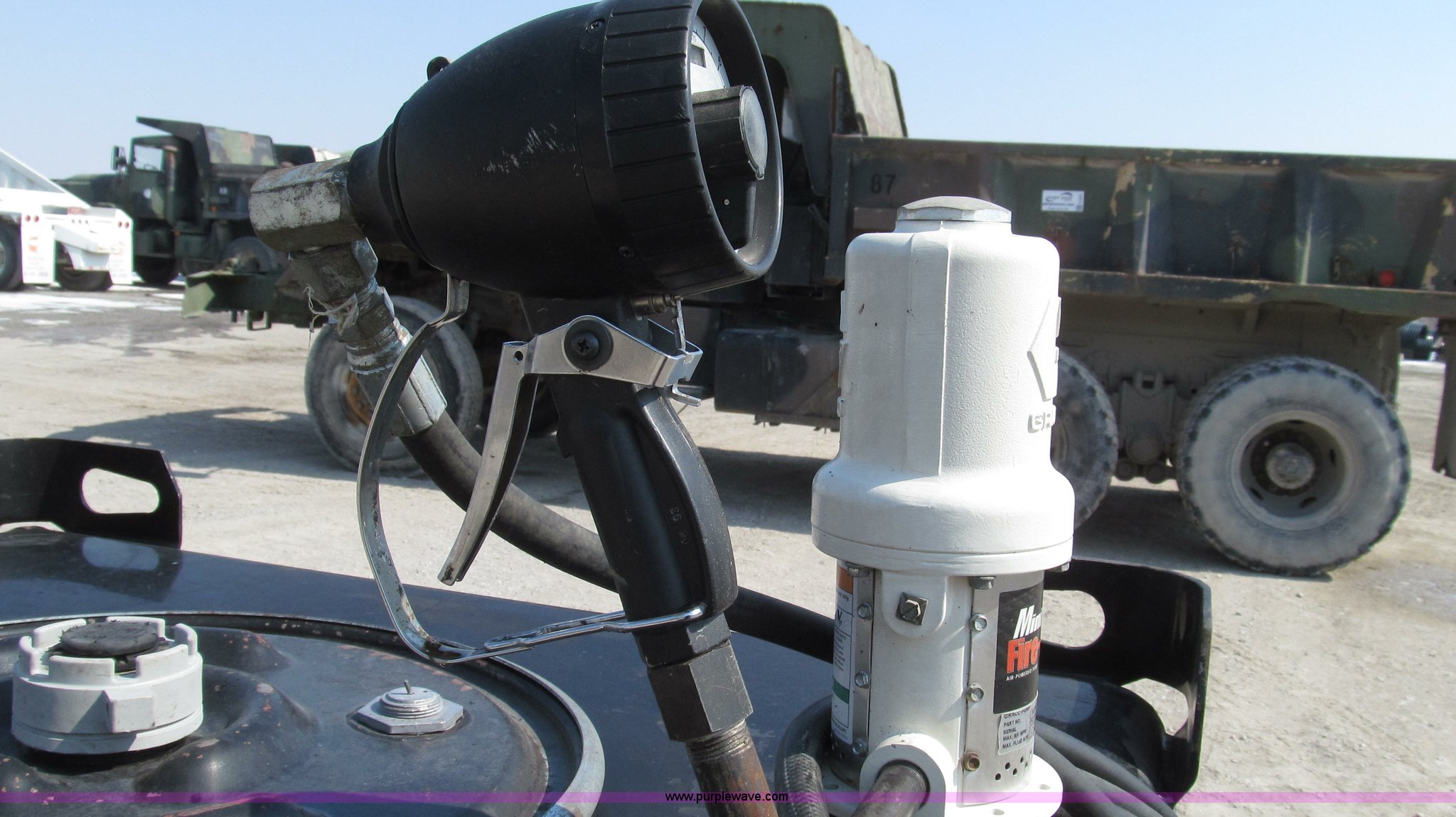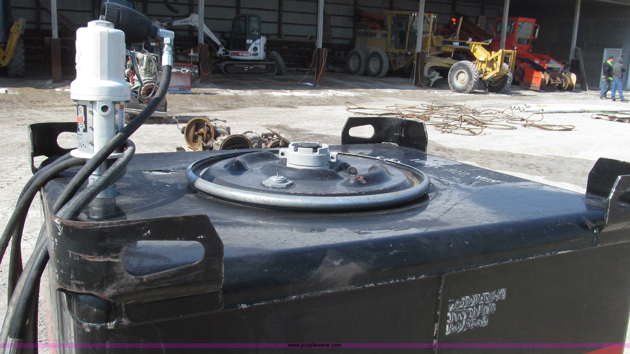 Purple Wave is selling a used Fuel and Lube in Missouri. This item is a Sun Oil bulk oil dispensing tank with the following: Approximately 250 gallon capacity, 43" x 48" square tank, 40"H, 6" legs, 2" bottom draw valve with cap, 22" diameter top mounted man hole, Graco Mini Fire-Ball air powered pump, Series J06A, Serial A07014, 180 psi, Hand dispenser meter, Pre-measured quarts, Dispense hole, Valve, Wand