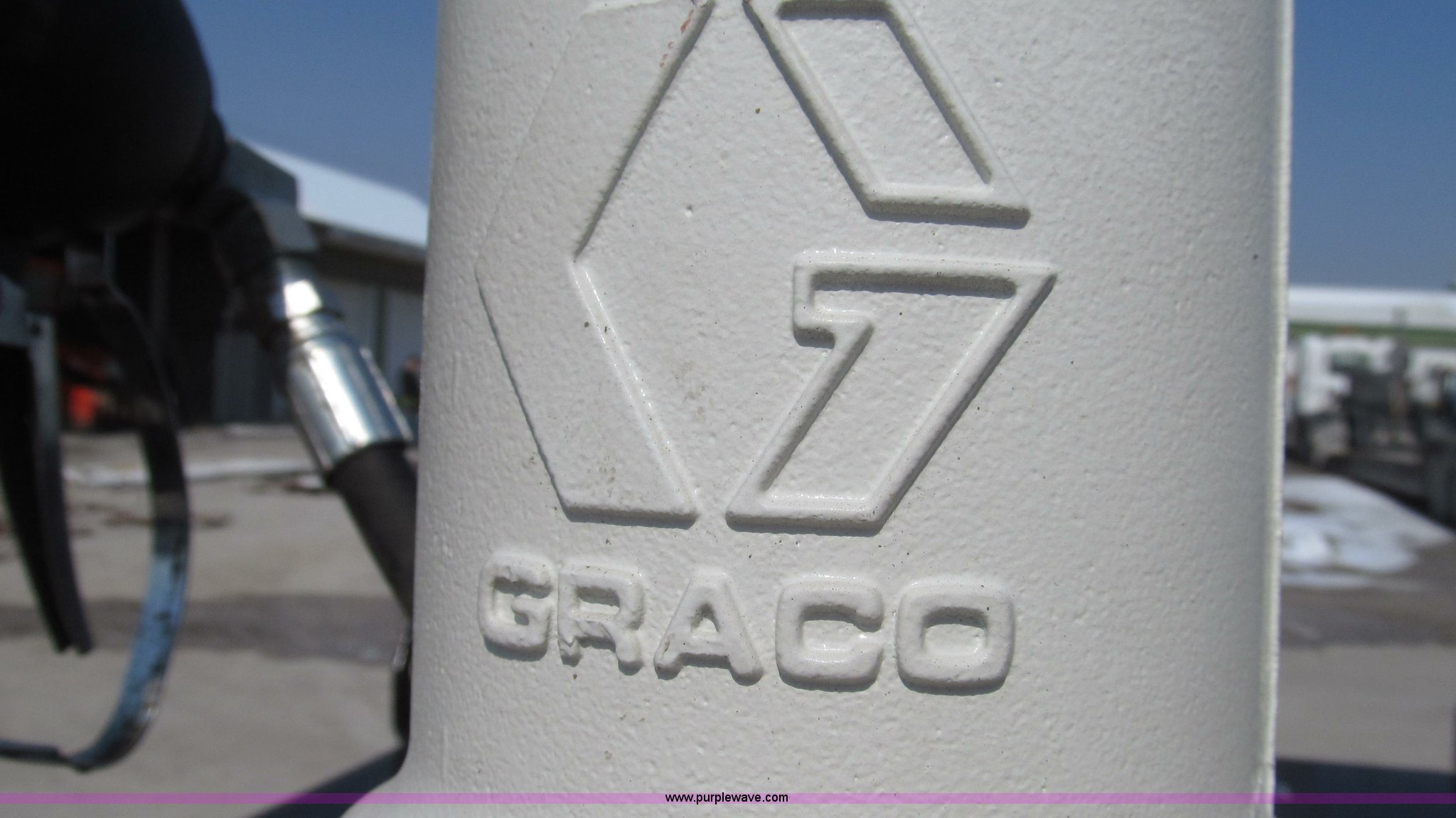 Sun Oil bulk oil dispensing tank. Approximately 250 gallon capacity, 43" x 48" square tank 40"H, 6" legs, 2" bottom draw valve with cap, 22" diameter top mounted man hole, Graco Mini Fire-Ball air powered pump Series J06A, Serial A07014, 180 psi, Hand dispenser meter Pre-measured quarts, Dispense hole, Valve, Wand. Clinton County Road and Bridge. 257 East HWY 116. Plattsburg, MO 64477