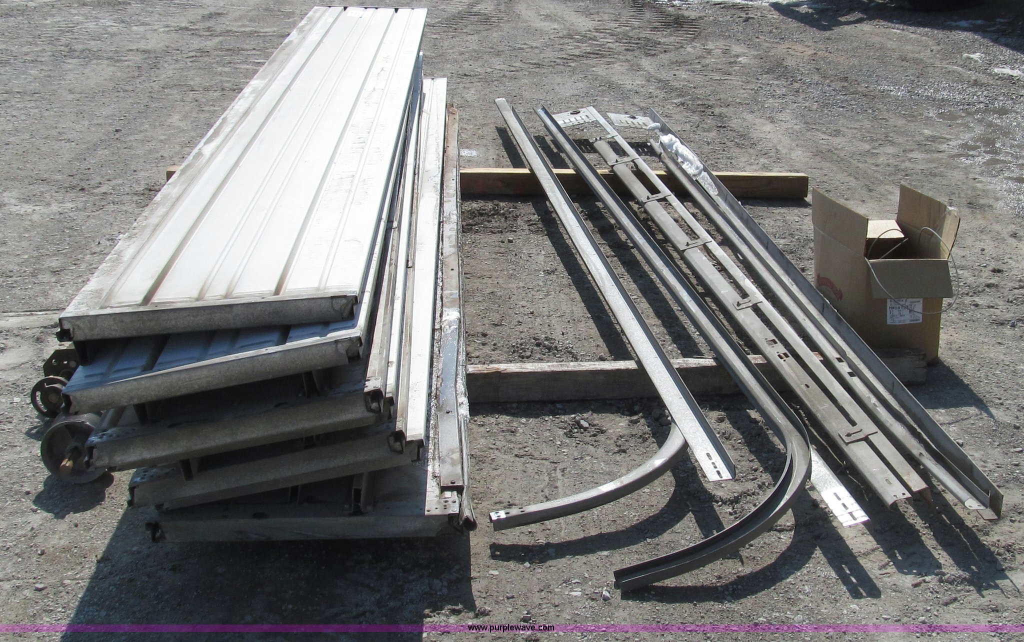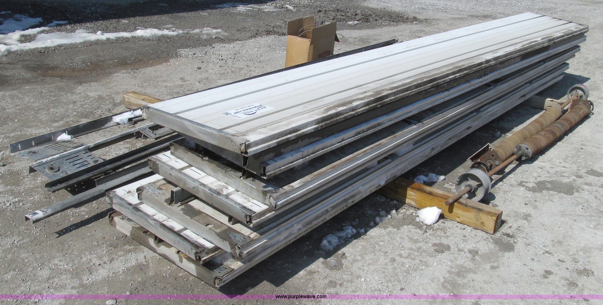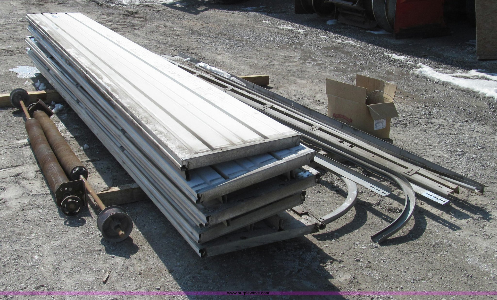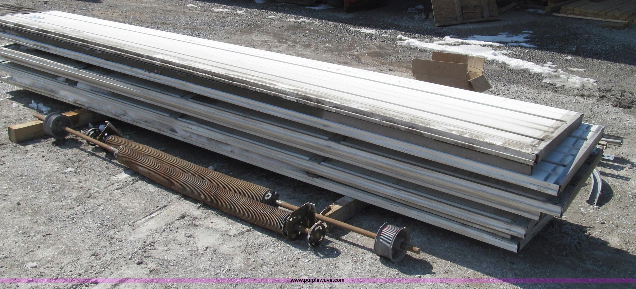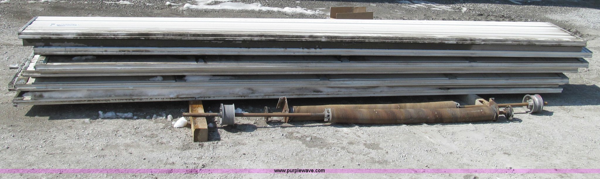 Purple Wave is selling a used Building Materials in Missouri. This item is a Insulated overhead shop door with the following: 14'2"W x 12'7"H, Spring assisted opener, Track, cable, and hardware included, (7) sections, (4) glass windows in one section