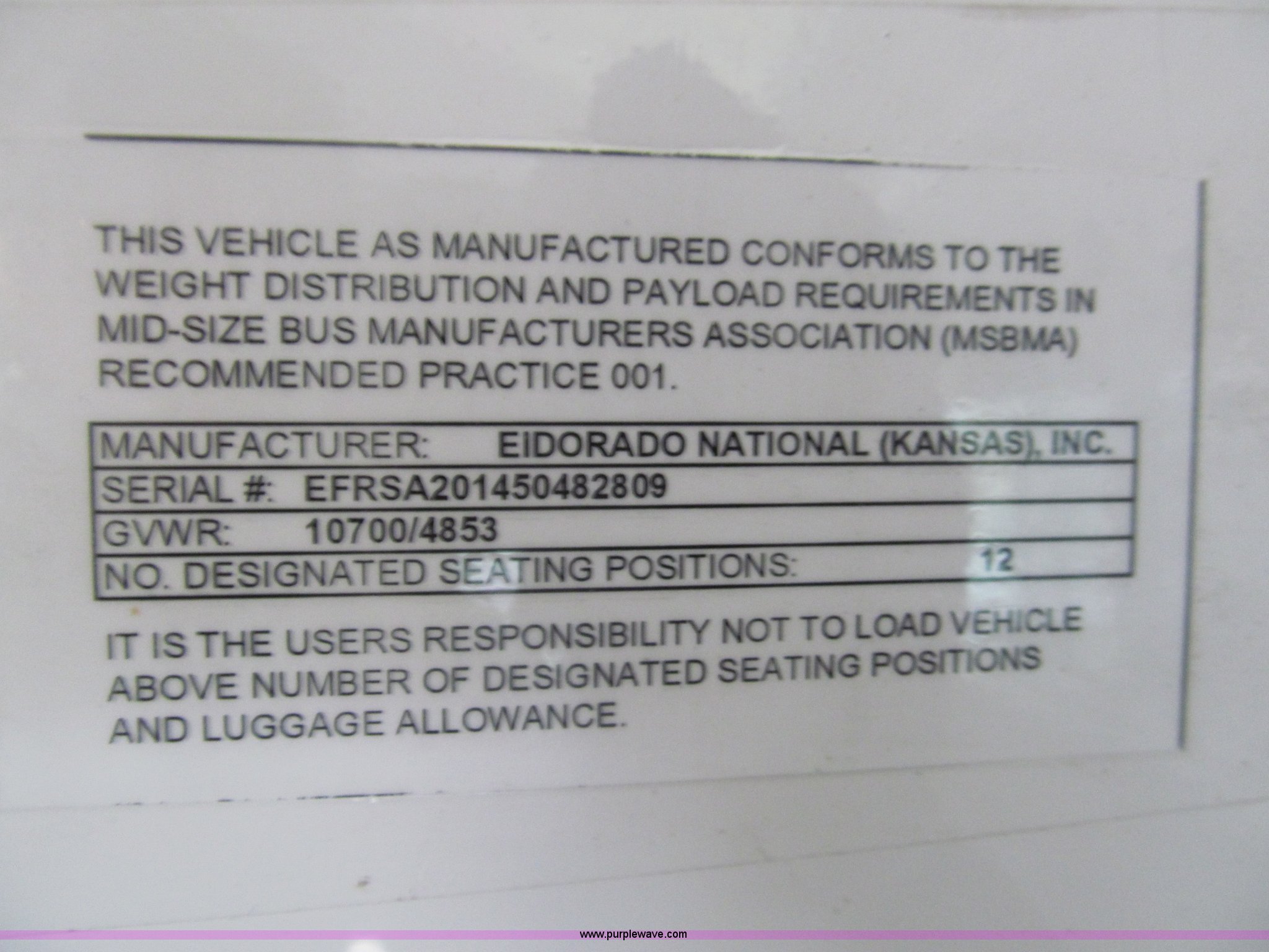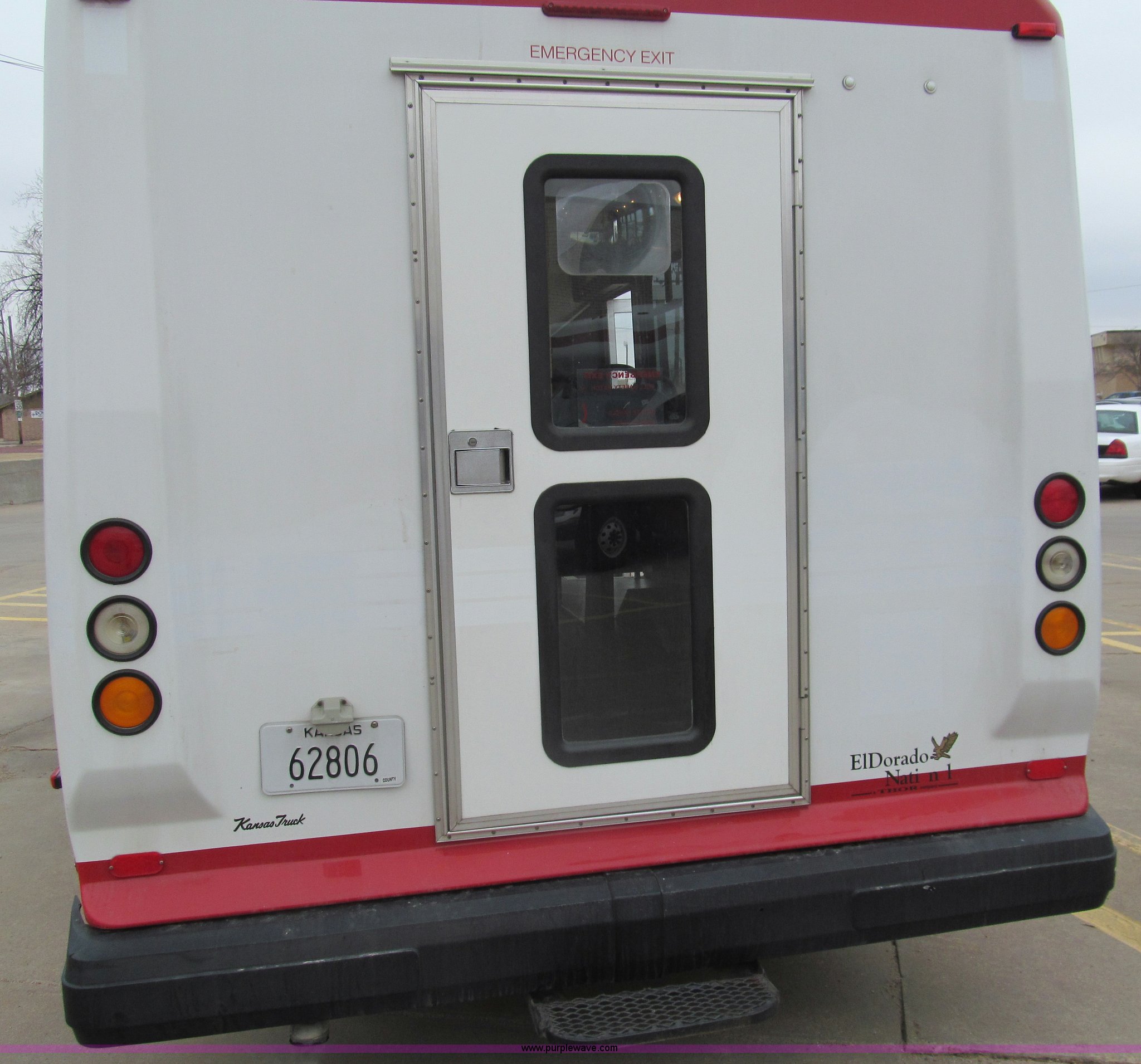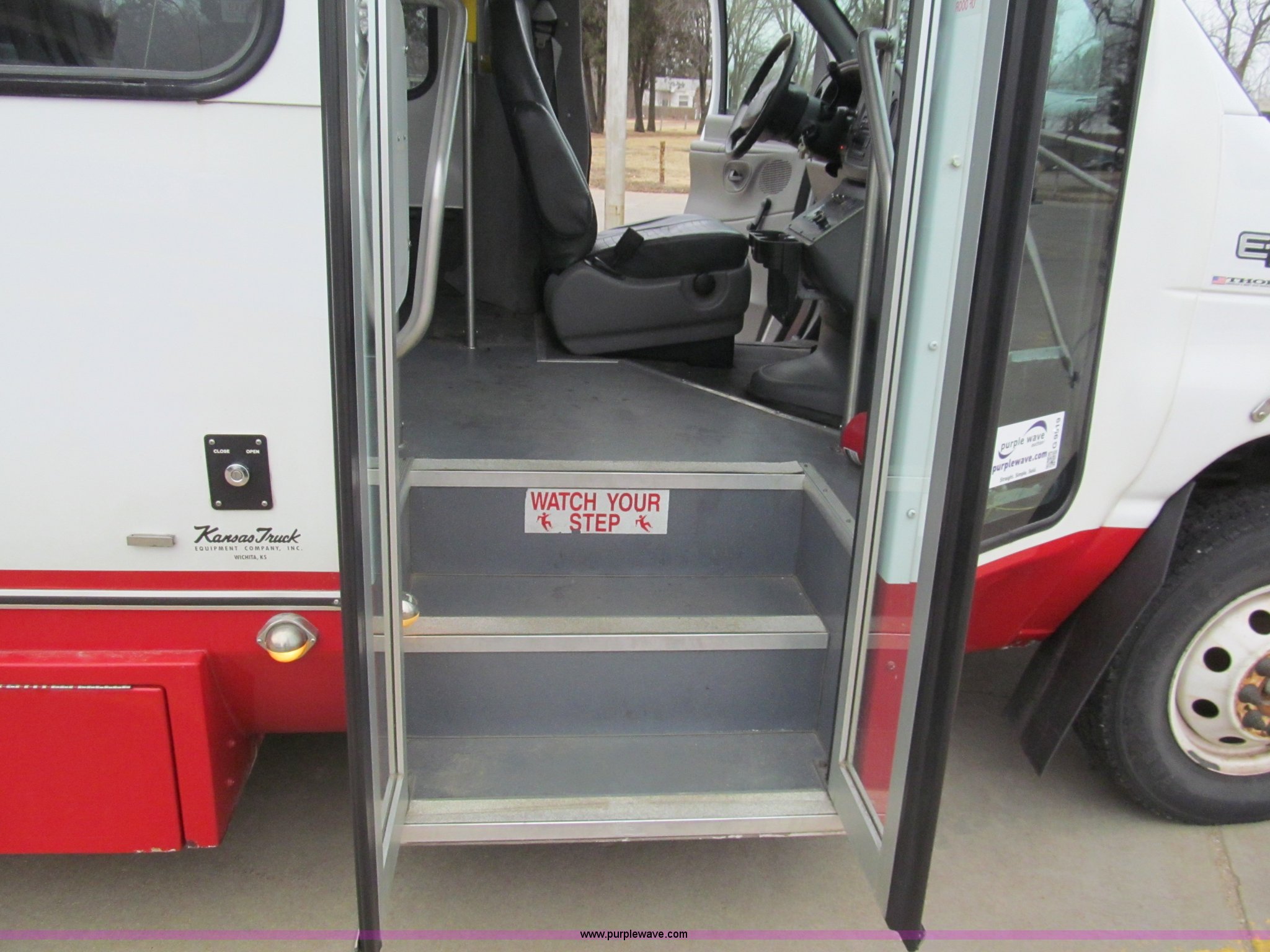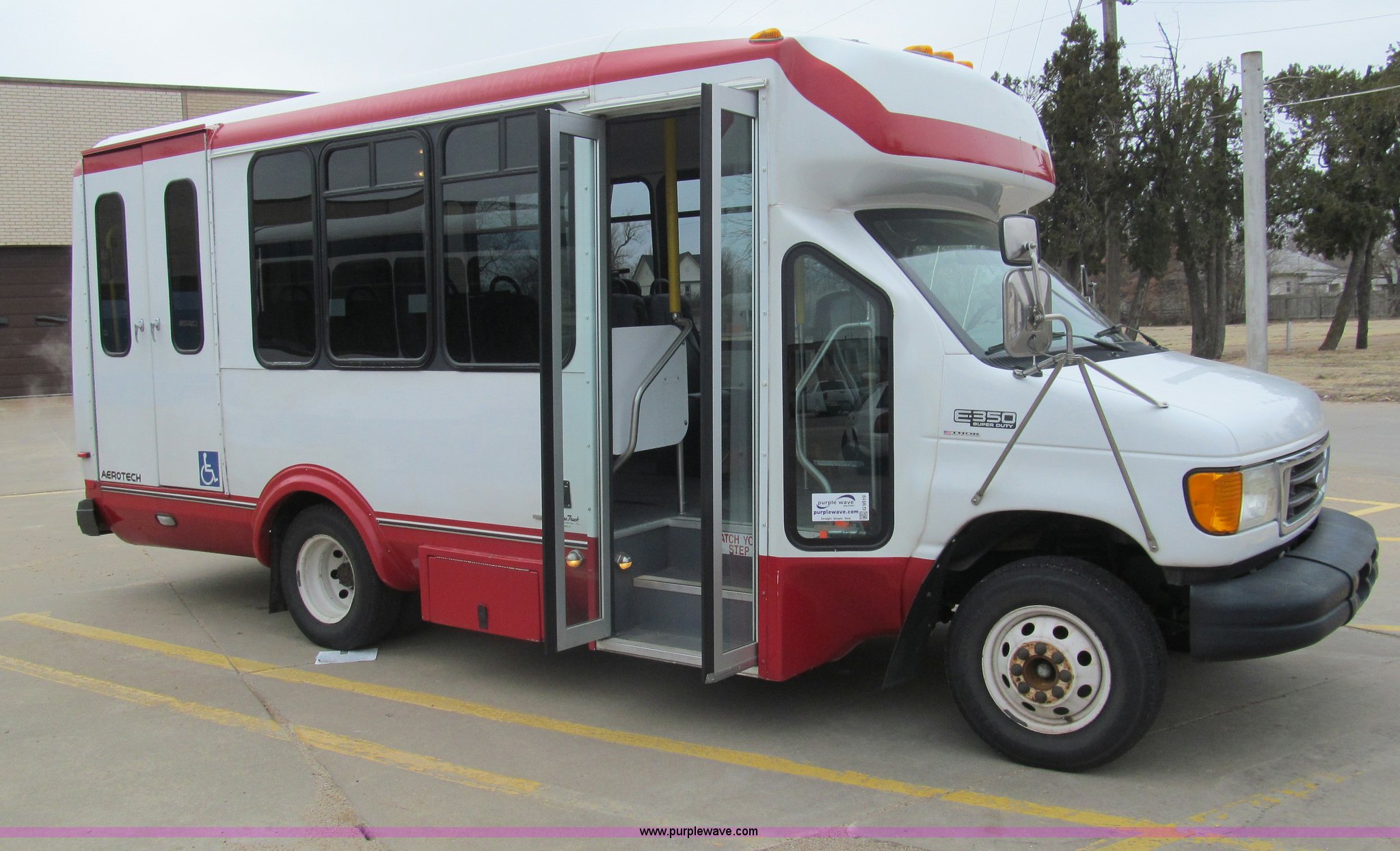 Purple Wave is selling a used Bus in Kansas. This item is a 2005 Ford E350 Super Duty Eldorado transit bus with the following: 123,063 actual miles, 6.8L V10 SOHC 20V gas engine, Automatic transmission, AC and heat, Tilt, Cruise, AM/FM/CD, Manual windows and locks, Power driver seat, Vinyl interior, Power passenger door, 12 passenger capacity, Ricon wheelchair lift, Model S5010-F1020000A, Tethered remote, Serial 00184267, Intermotive Fast Idle system, Intermotive Intelligent lift interlock system, Roof, rear, and window egress, 225/75R16 tires, GVWR 10,700 lbs, Maintenance records available