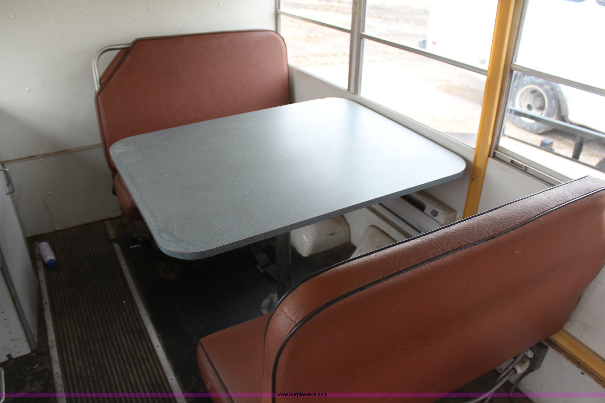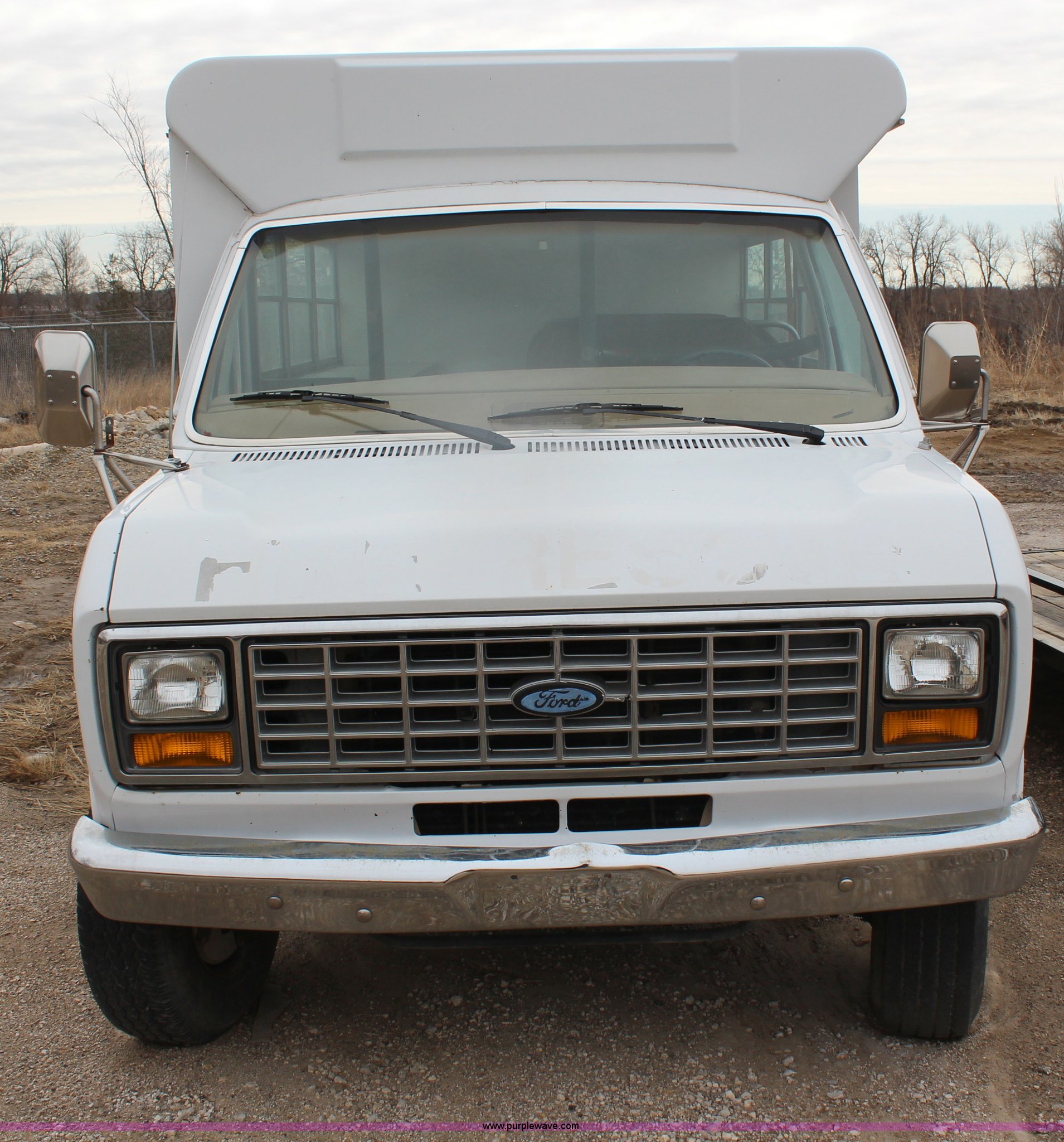 Purple Wave is selling a used Bus in Kansas. This item is a 1984 Ford Econoline E350 bus with the following: 30,208 miles on odometer, 5.8L V8 gas engine, Automatic transmission, AC and heat, AM, Manual windows and locks, Vinyl interior, Deck, Table, Toilet and sink in rear, Receiver hitch, 9.50-16.5 tires, GVWR 9,500 lbs, Cosmetic damage, Rust, Dents, Broken windows, Brakes are spongy, Unit# 599
