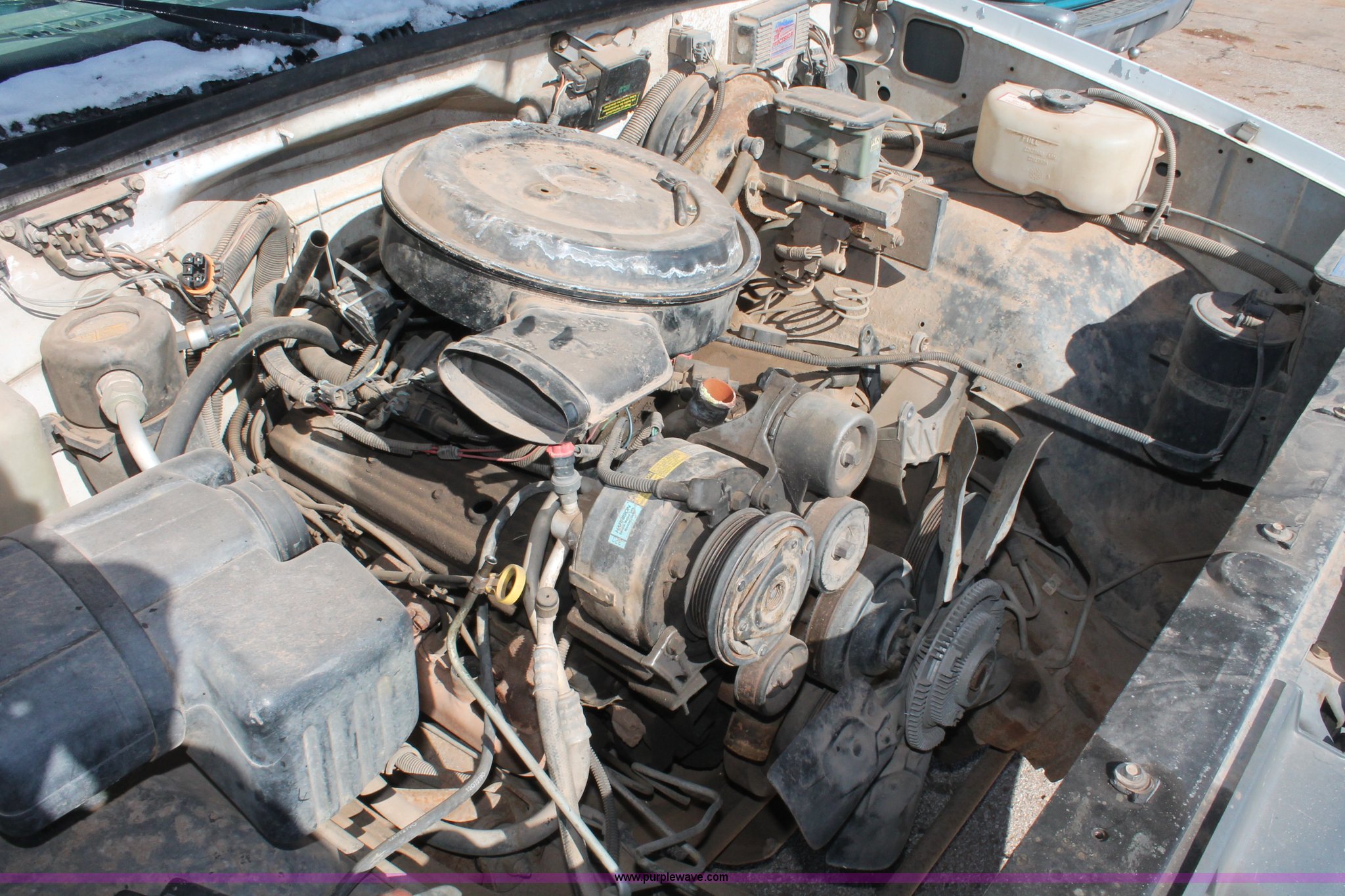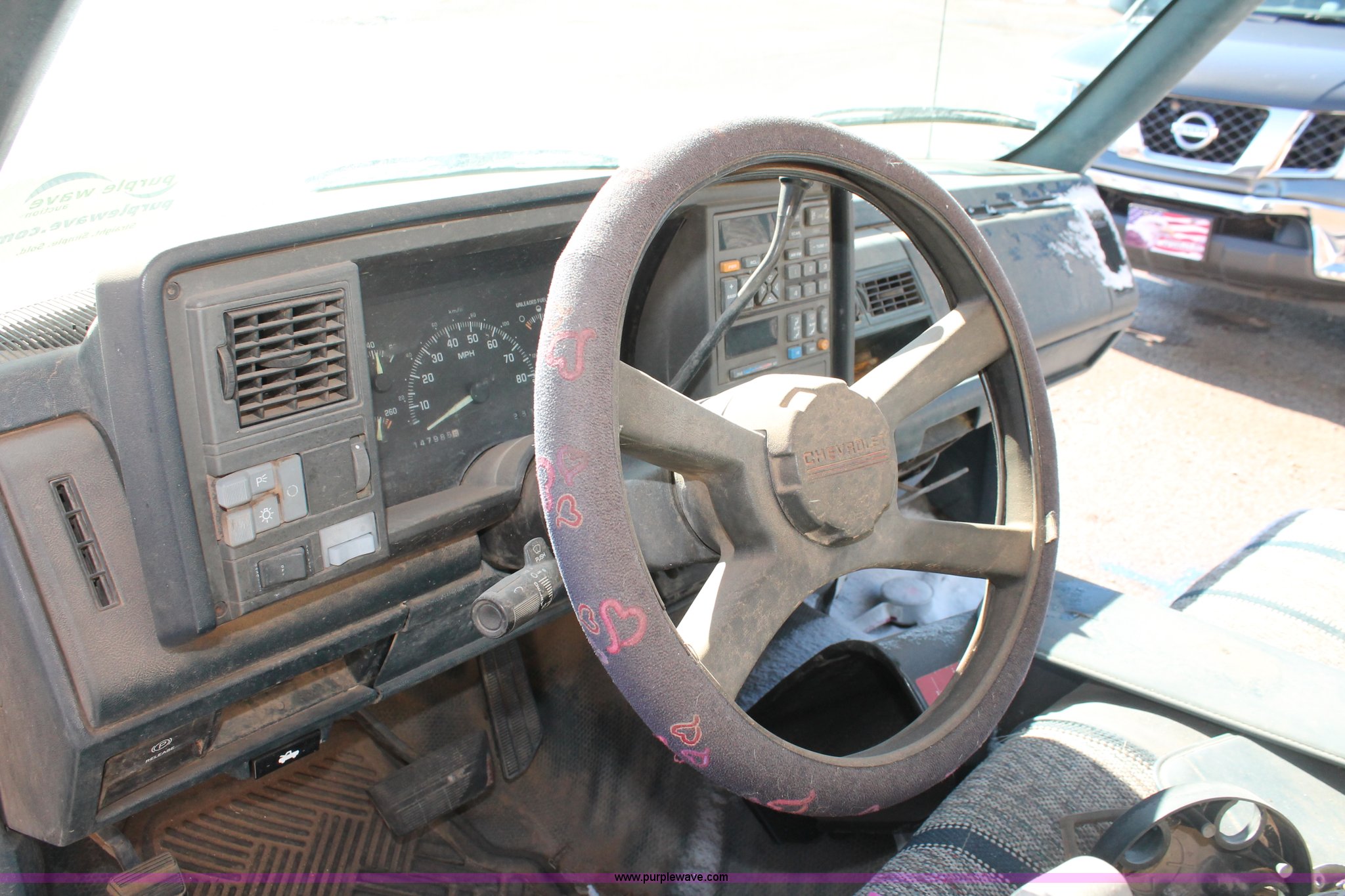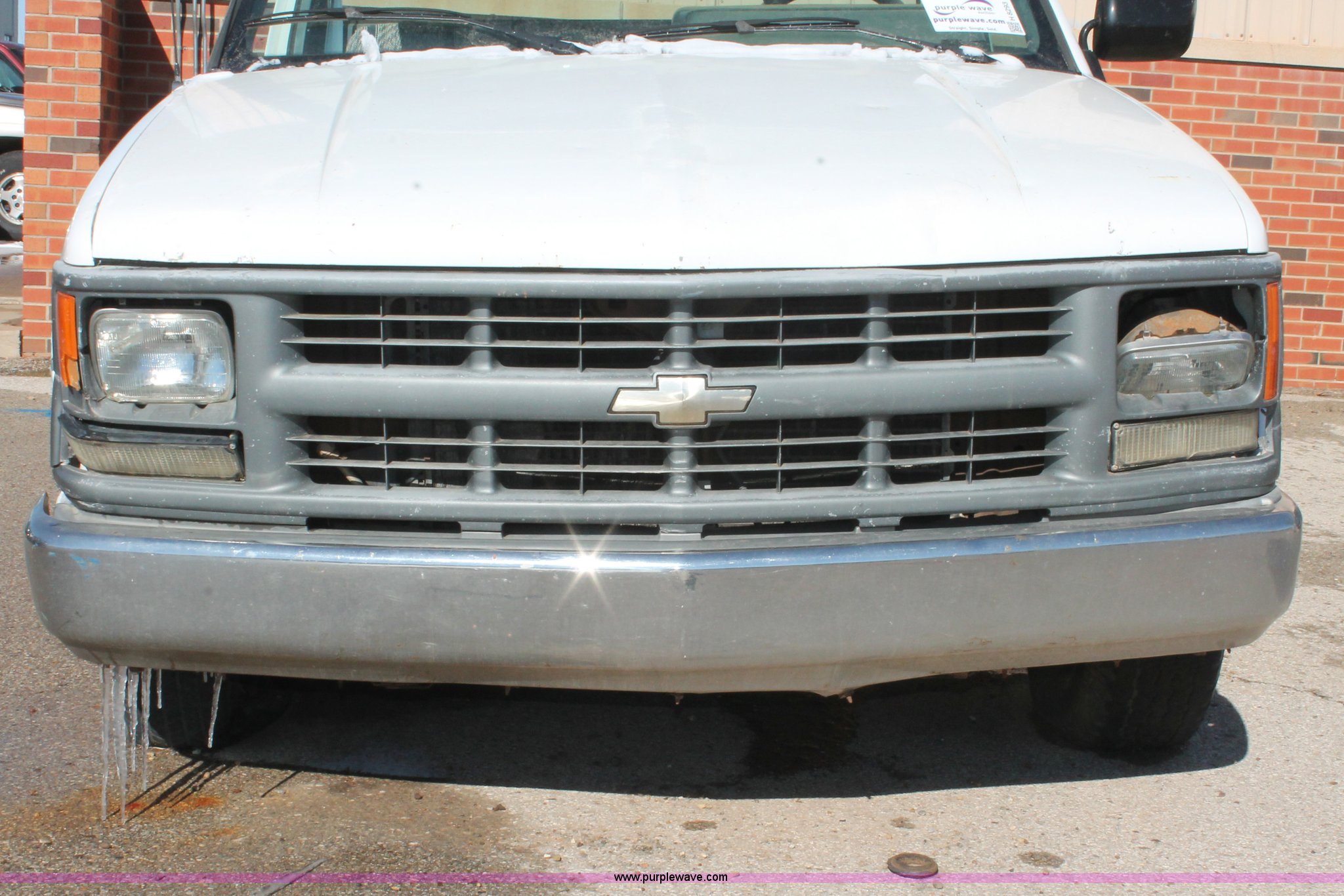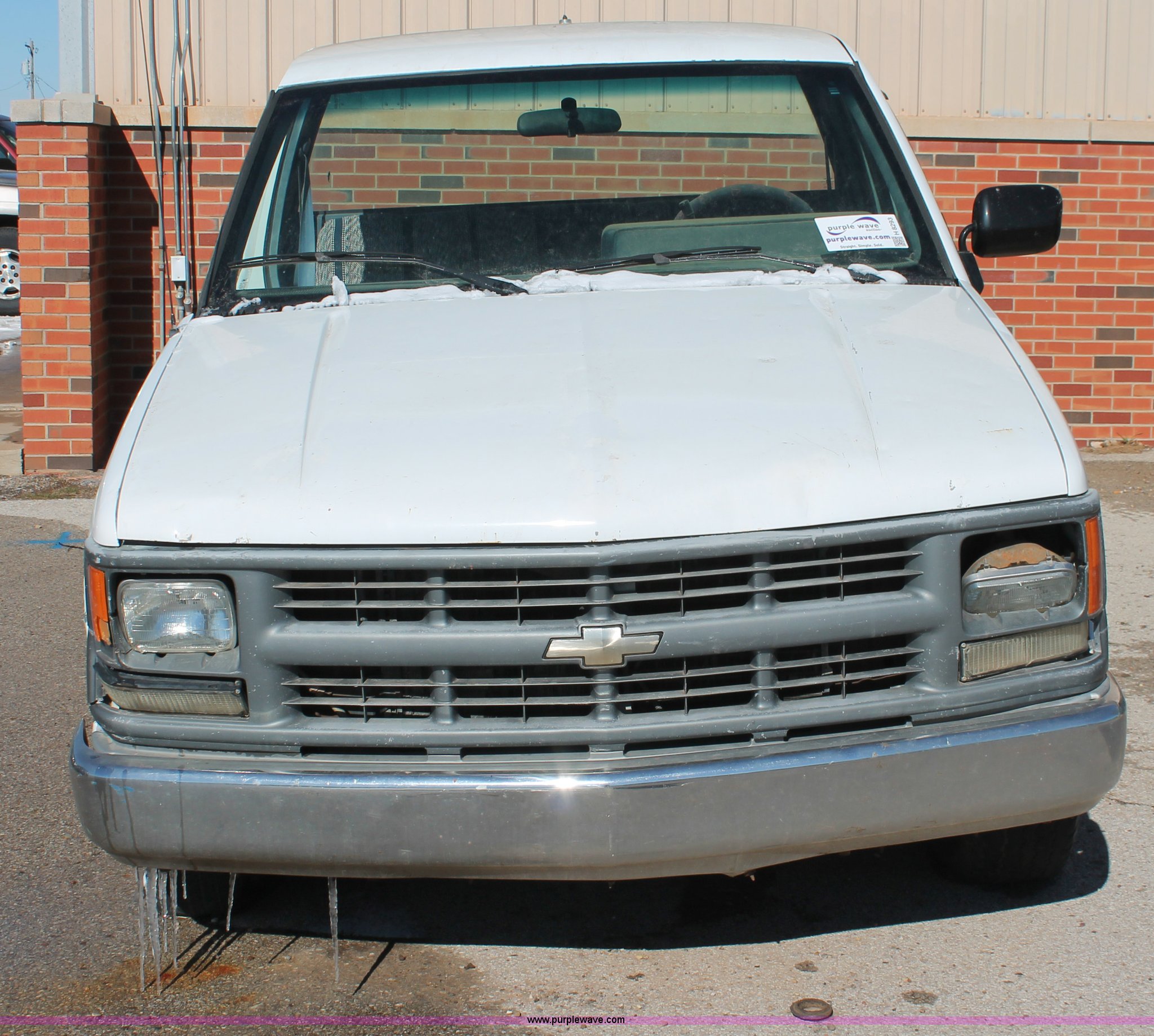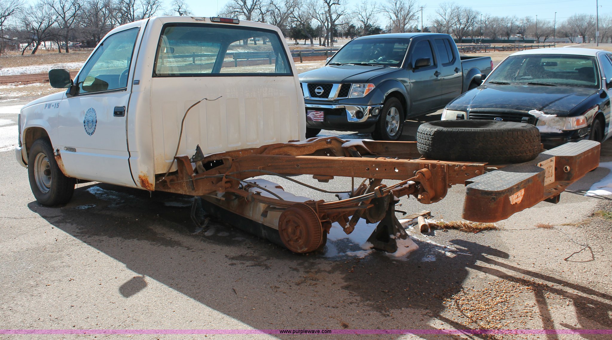 Purple Wave is selling a used Wrecked and Abandoned in Oklahoma. This item is a 1994 Chevrolet Cheyenne 1500 pickup truck cab and chassis with the following: 147,985 miles on odometer, 5.0L V8 VIH 16V gas engine, Automatic transmission, AC and heat, AM/FM, Manual windows and locks, 215/70R15 tires, Missing passenger door, rear wheels, taillights, and more, Unknown running condition, Unit# PW-15