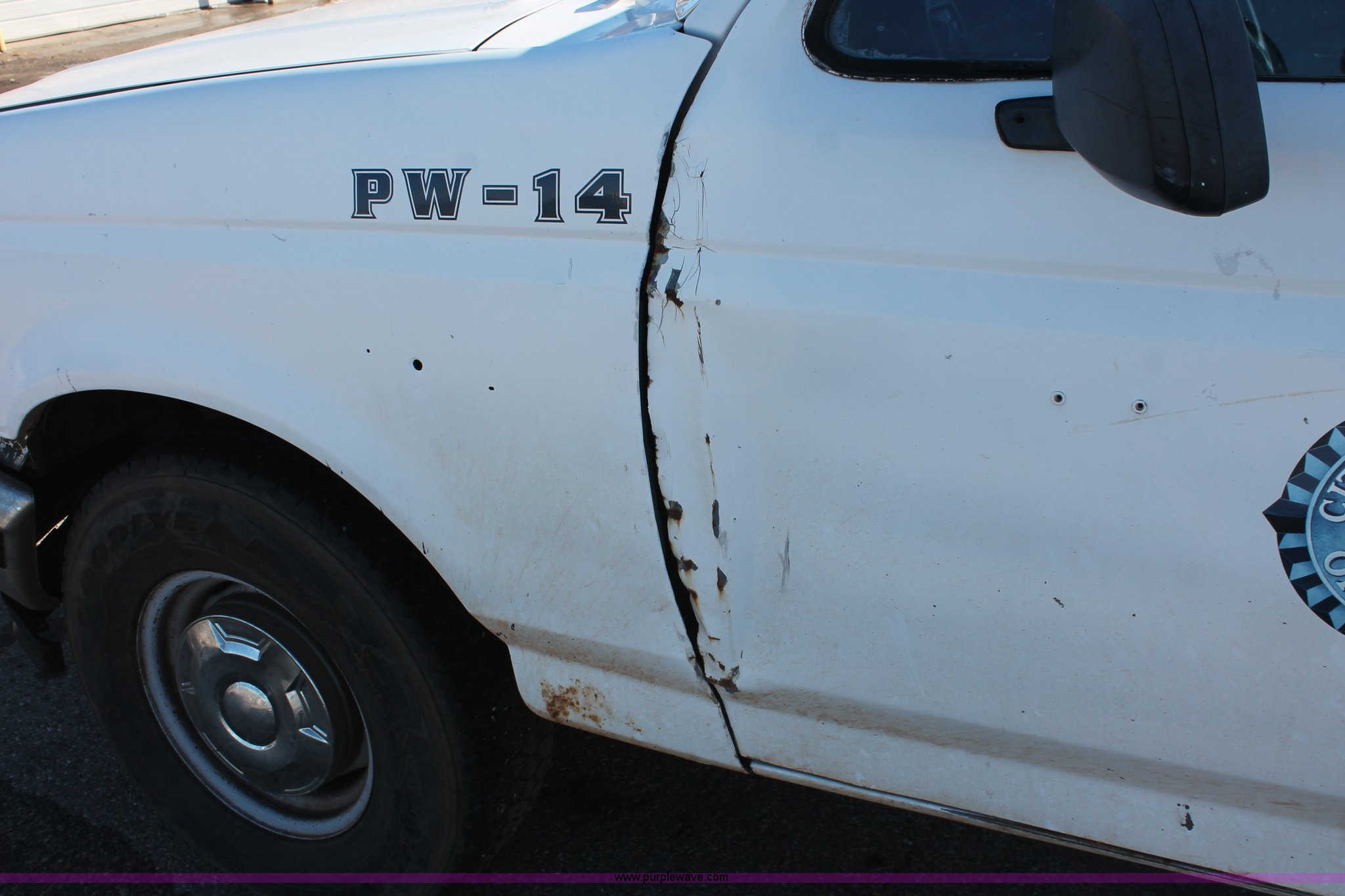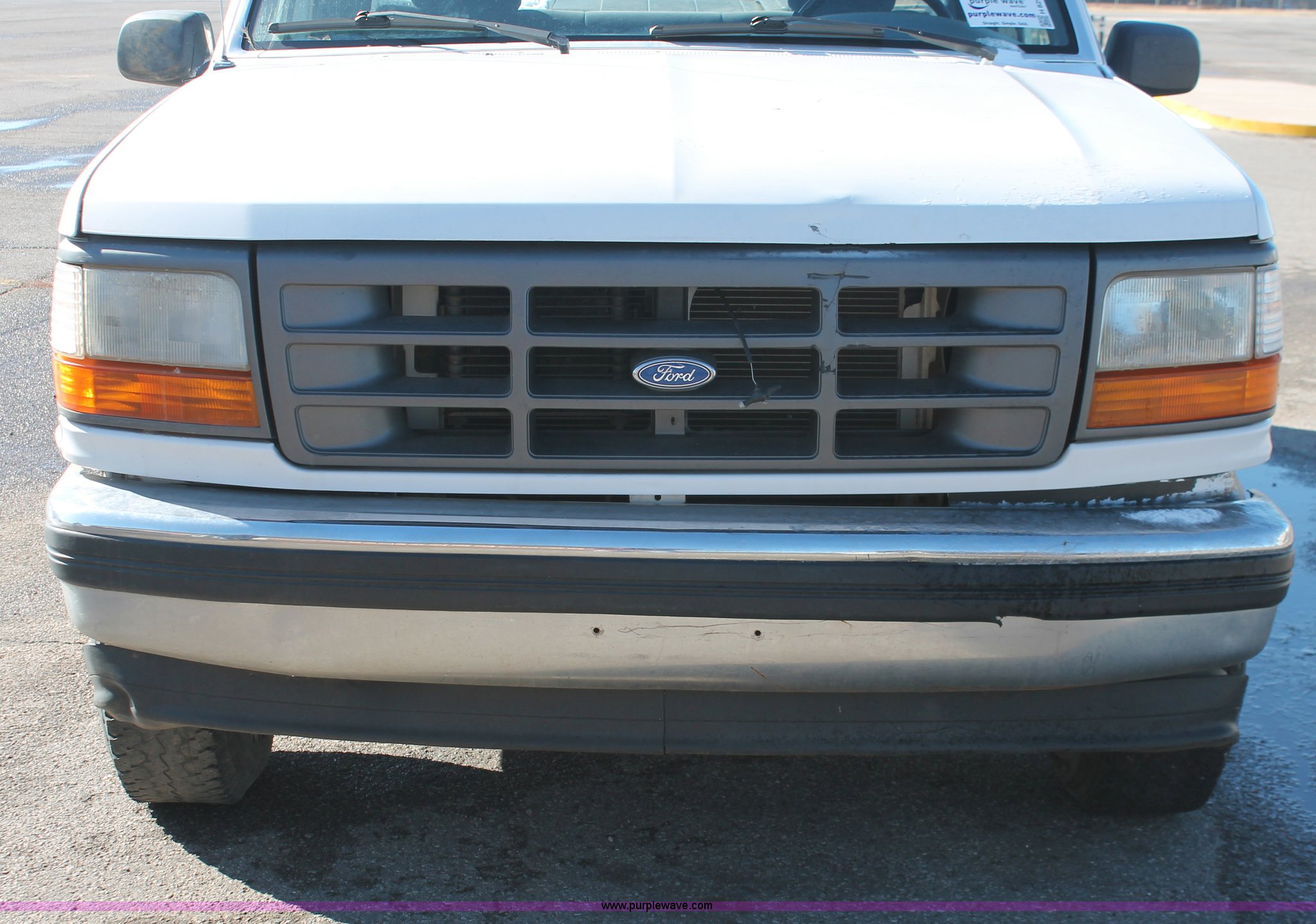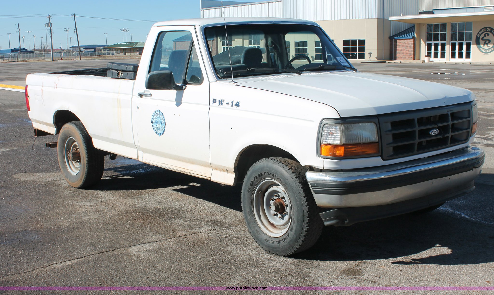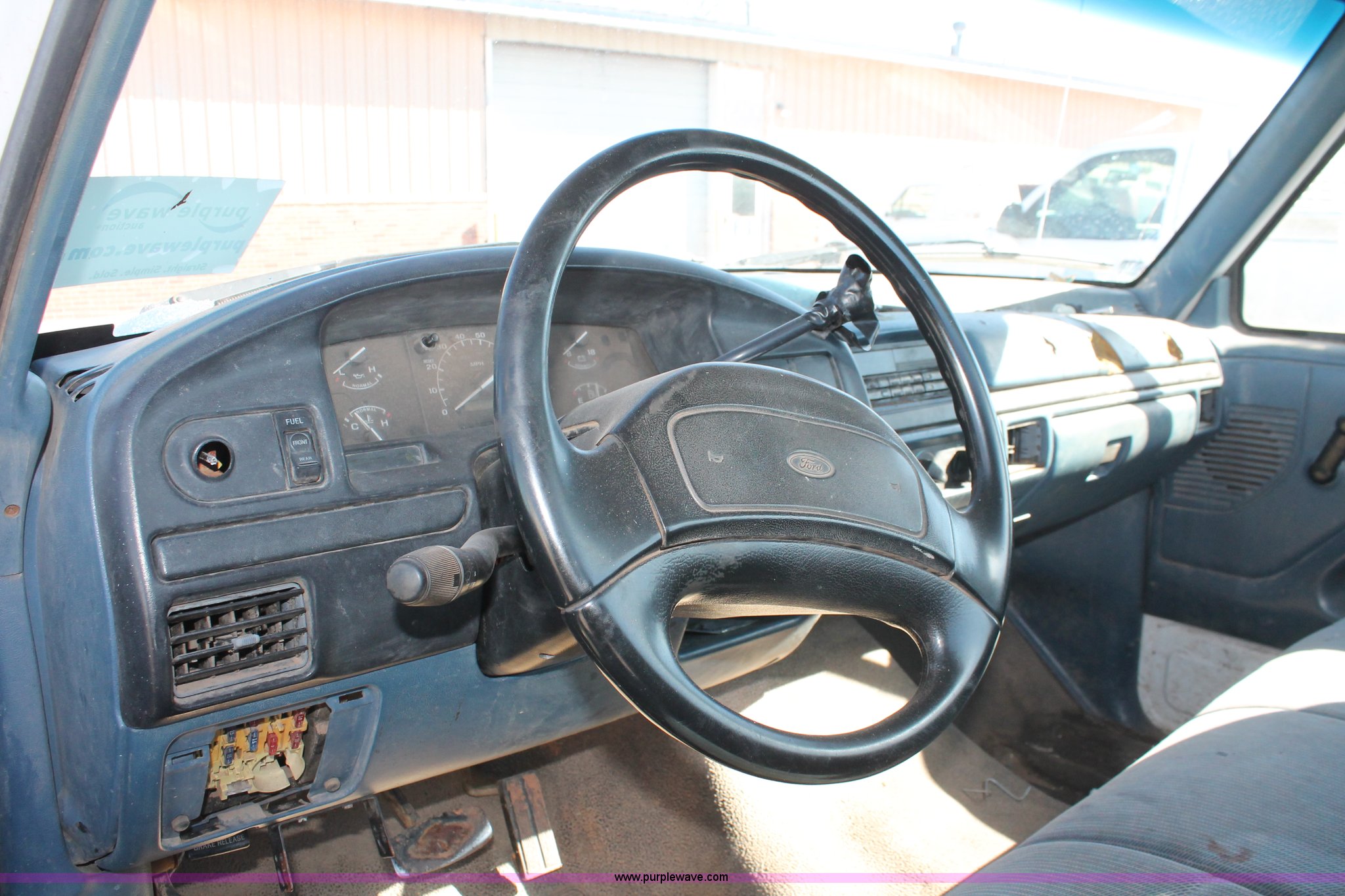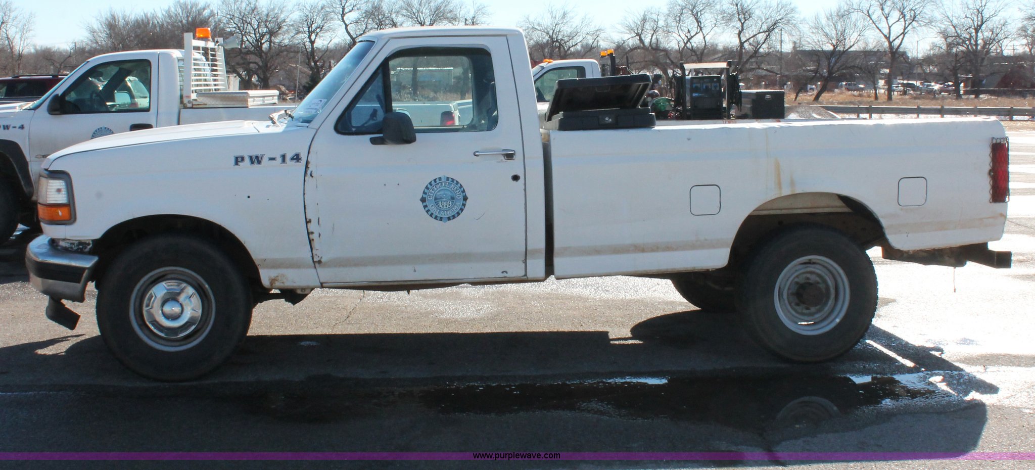 Purple Wave is selling a used 1/2 Ton Pickup or Van in Oklahoma. This item is a 1997 Ford F250 pickup truck with the following: Unknown miles on odometer, 5.8L V8 OHV 16V gas engine, Automatic transmission, Heat, AM/FM, Manual windows and locks, Cloth interior, Poly toolbox, Receiver hitch, Trailer wiring, LT215/85R16 tires, Undiagnosed transmission issues, Interior/exterior cosmetic damage, Tailgate damage, Driver's door lock missing, Cracked windshield, Weak battery, Unit# PW-14