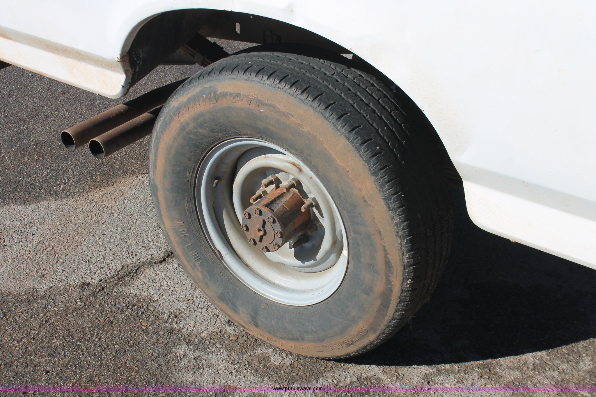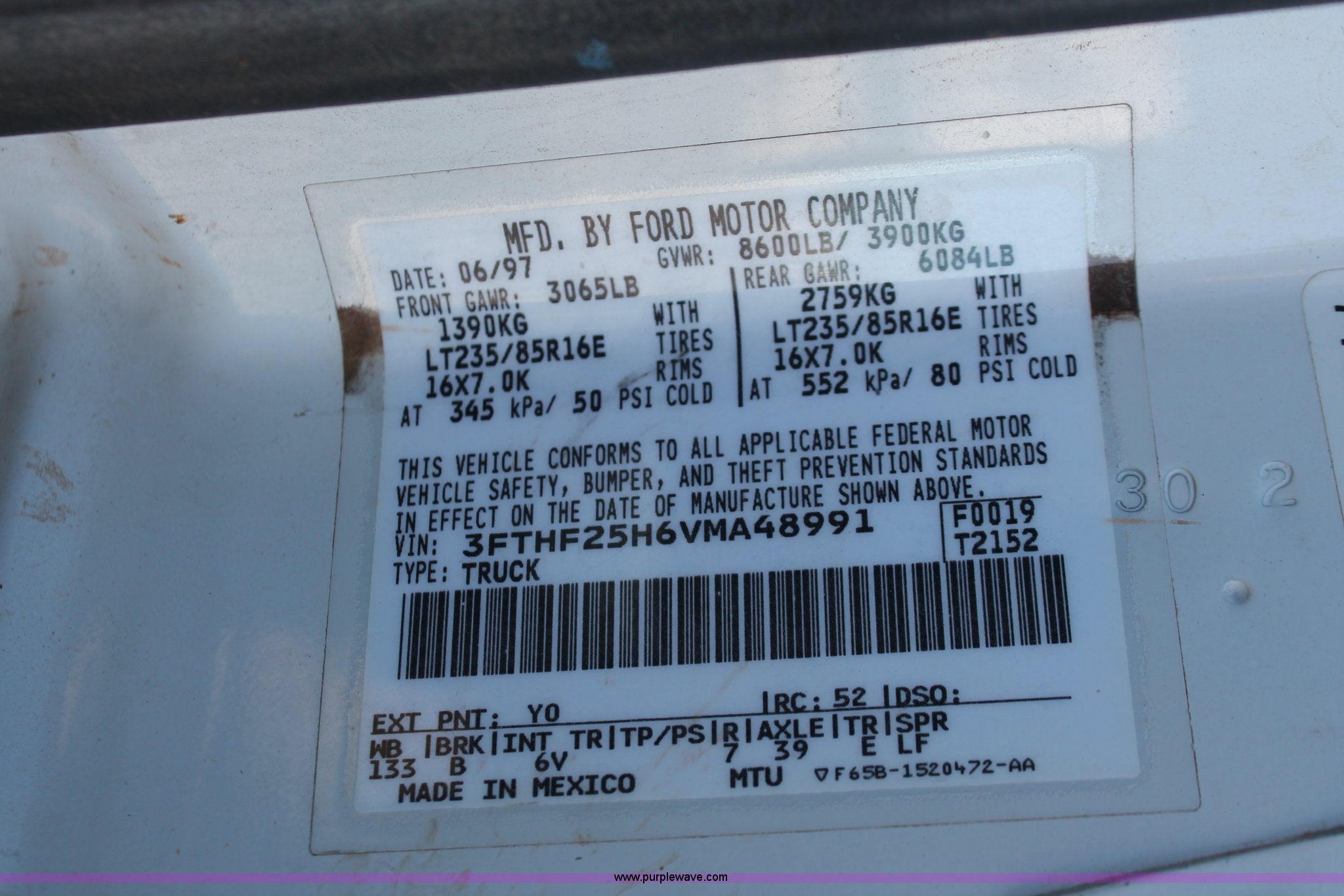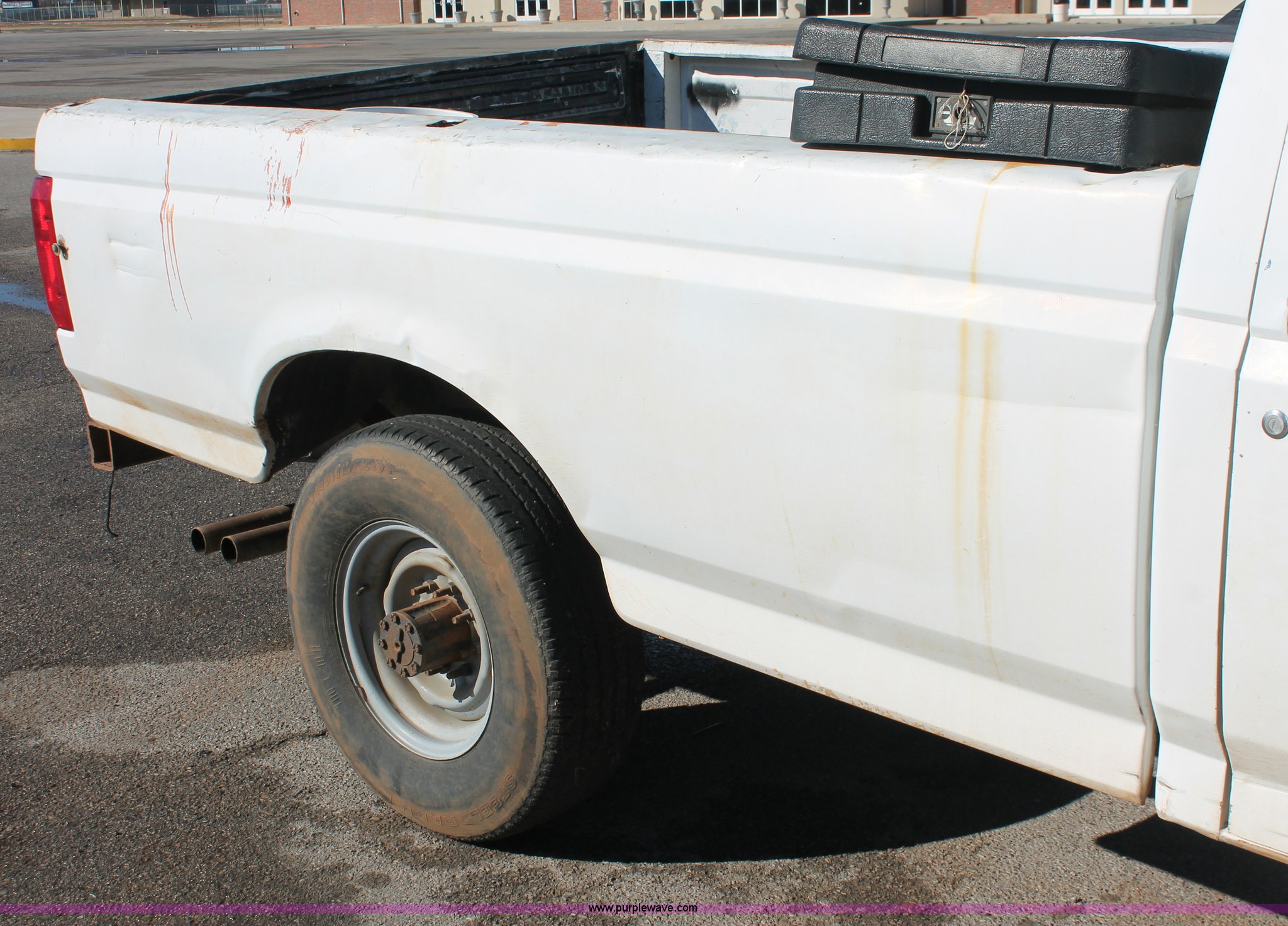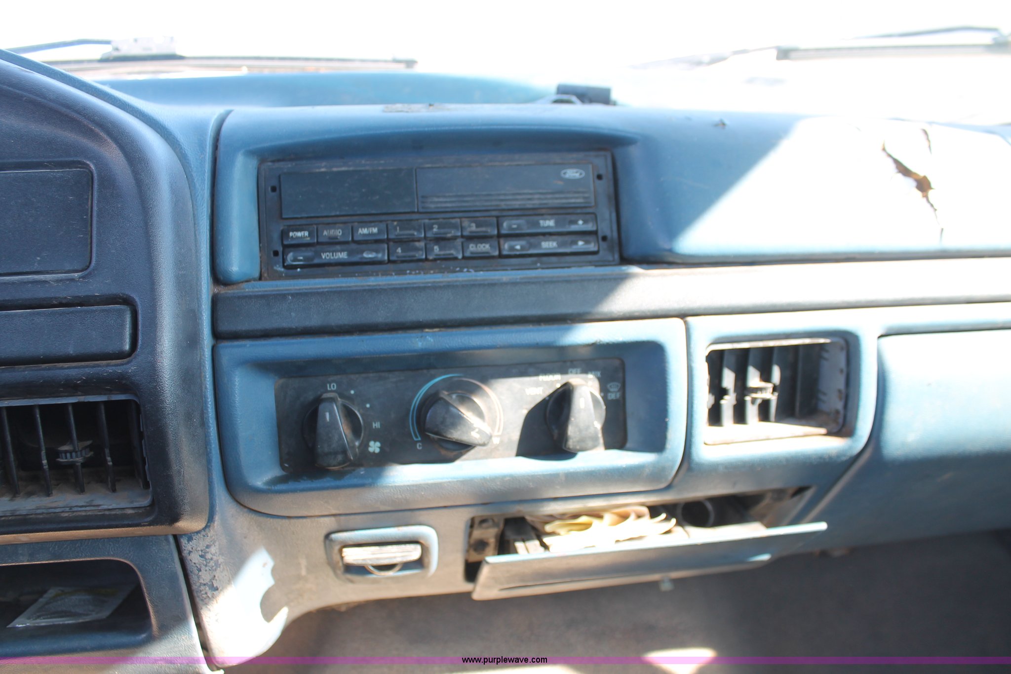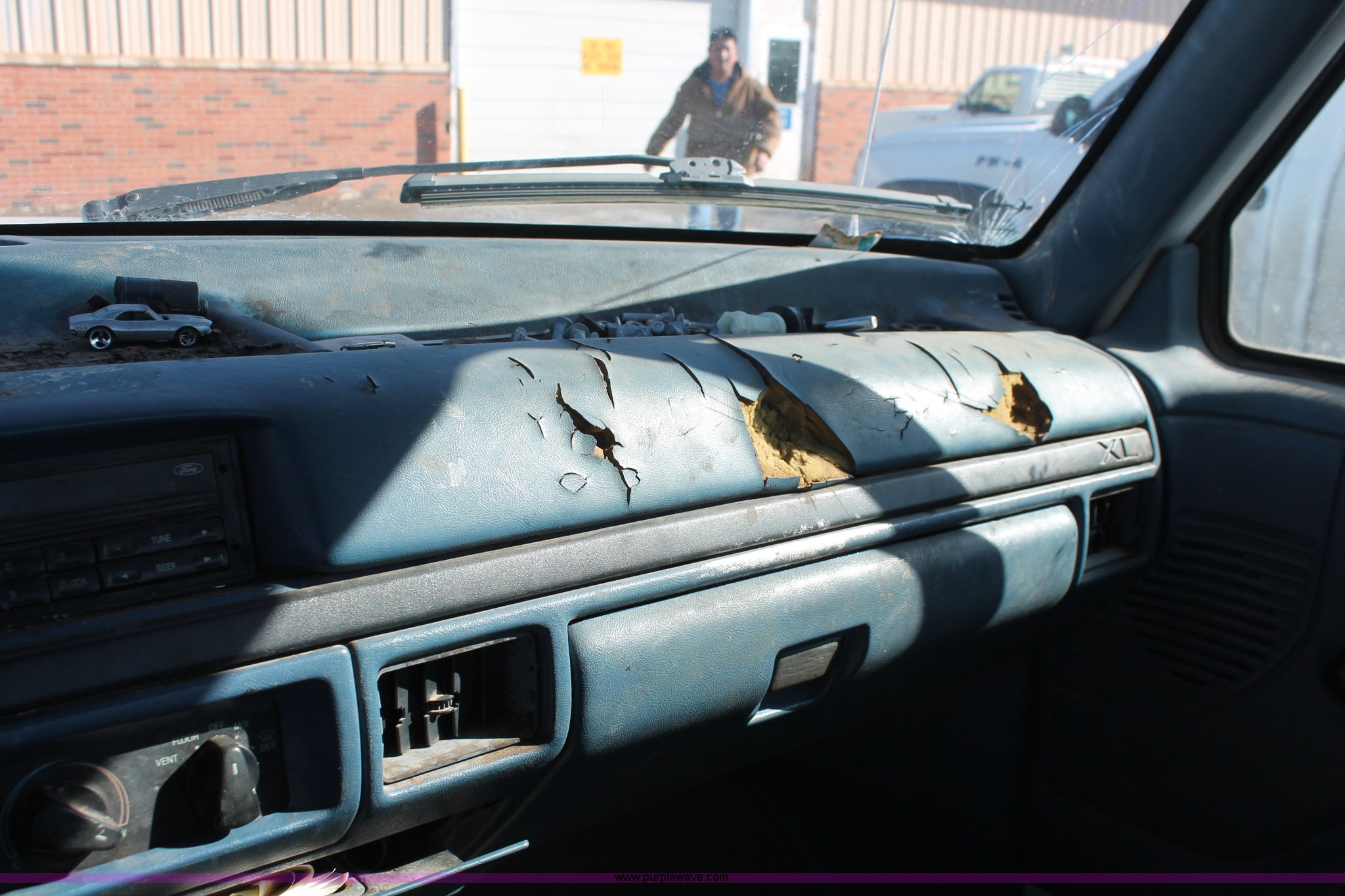 Purple Wave is selling a used 1/2 Ton Pickup or Van in Oklahoma. This item is a 1997 Ford F250 pickup truck with the following: Unknown miles on odometer, 5.8L V8 OHV 16V gas engine, Automatic transmission, Heat, AM/FM, Manual windows and locks, Cloth interior, Poly toolbox, Receiver hitch, Trailer wiring, LT215/85R16 tires, Undiagnosed transmission issues, Interior/exterior cosmetic damage, Tailgate damage, Driver's door lock missing, Cracked windshield, Weak battery, Unit# PW-14