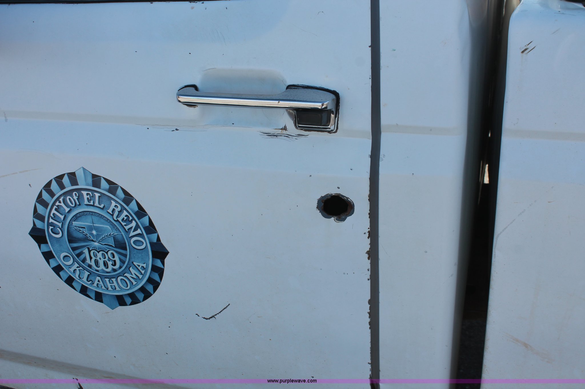 1997 Ford F250 pickup truck. Unknown miles on odometer, 5.8L V8 OHV 16V gas engine, Automatic transmission, Heat, AM/FM, Manual windows and locks, Cloth interior, Poly toolbox, Receiver hitch, Trailer wiring, LT215/85R16 tires, Undiagnosed transmission issues, Interior/exterior cosmetic damage, Tailgate damage, Driver's door lock missing, Cracked windshield, Weak battery, Unit# PW-14. Title distribution may be delayed up to 14 days from verification of funds. 3FTHF25H6VMA48991. City of El Reno. 100 S Country Club Rd. El Reno, OK 73036