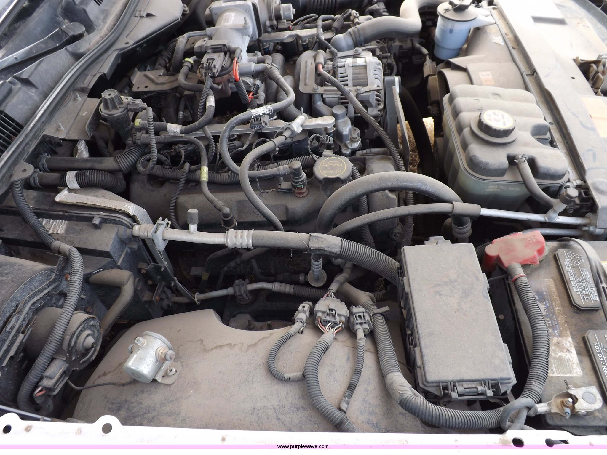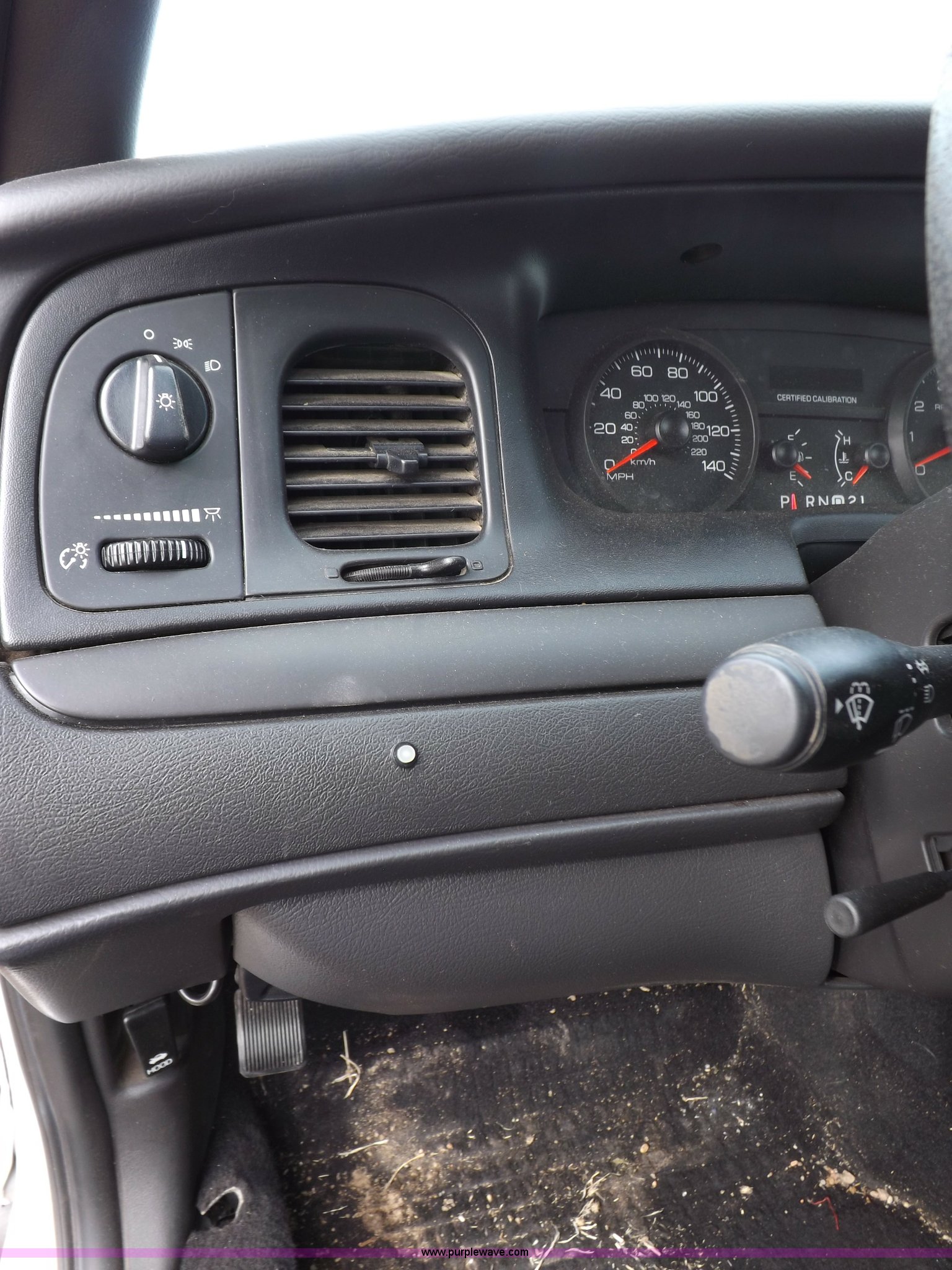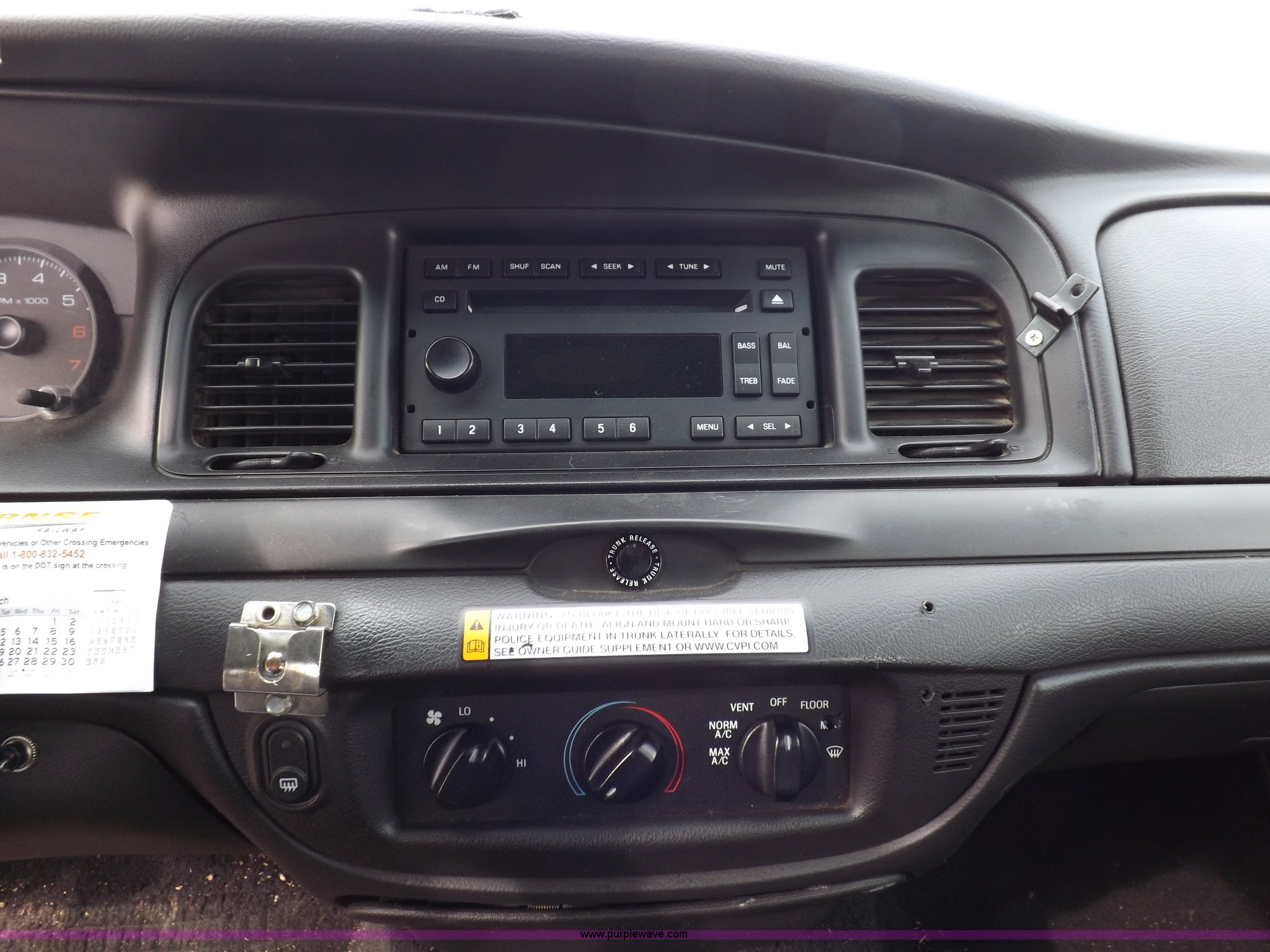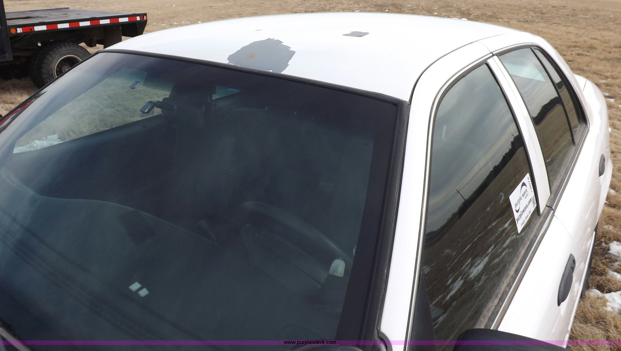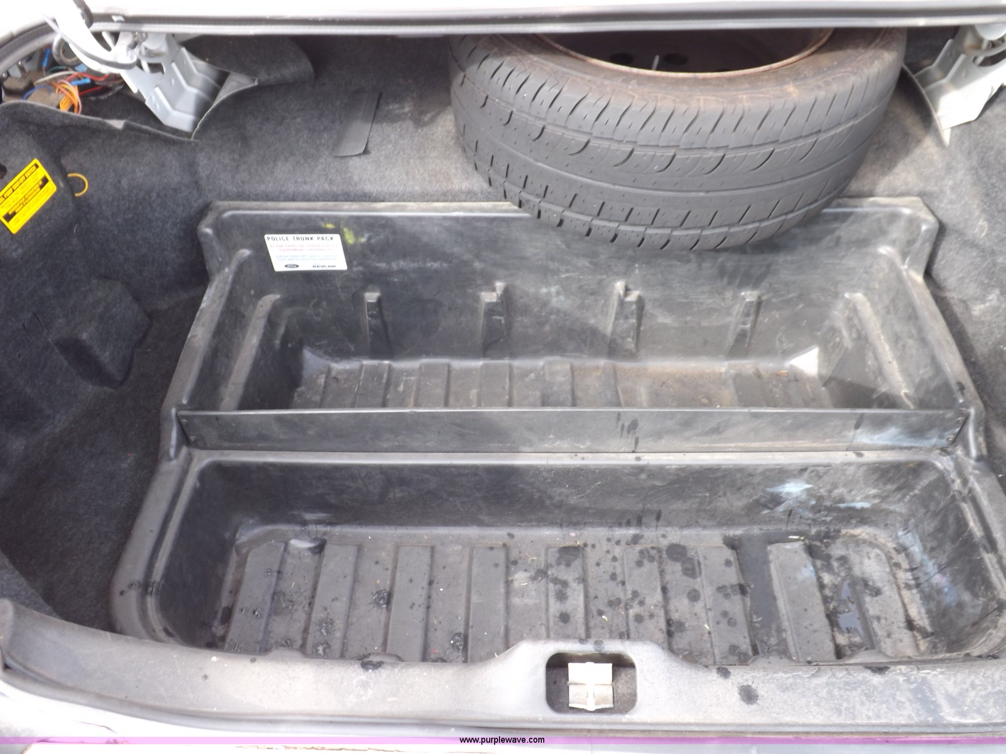 Purple Wave is selling a used Passenger Vehicle in Kansas. This item is a 2008 Ford Crown Victoria Police Interceptor with the following: 128,784 actual miles, 4.6L V8 SOHC 16V FFV gas engine, Automatic transmission, Transmission in April 2012, AC and heat, Tilt, Cruise, AM/FM/CD, Power windows, locks, mirrors, and seats, Cloth interior, Law Enforcement package, Spotlight, 235/55R17 tires, Dead battery, Needs repairs, Velcro on dash, Rear trunk and bumper damage, Right rear tire flat, Point damage, Roof drilled