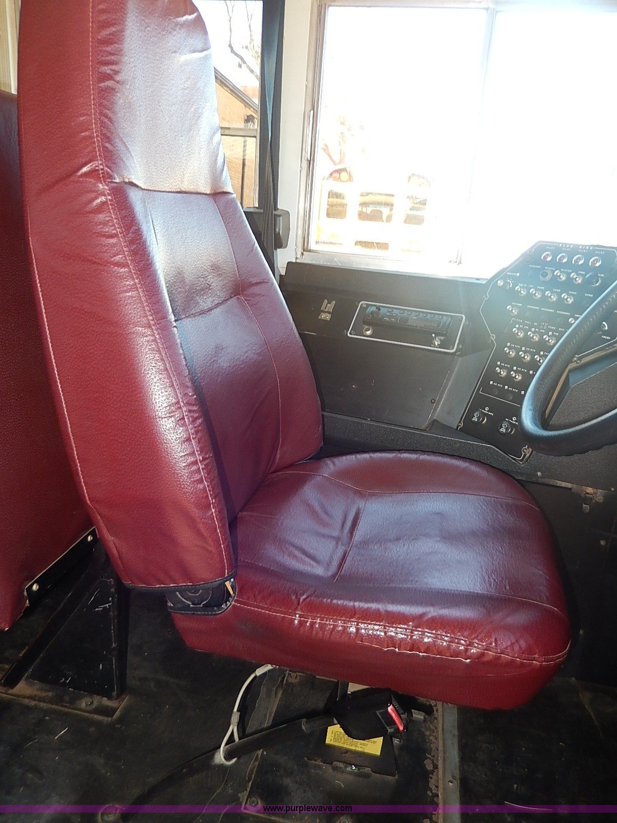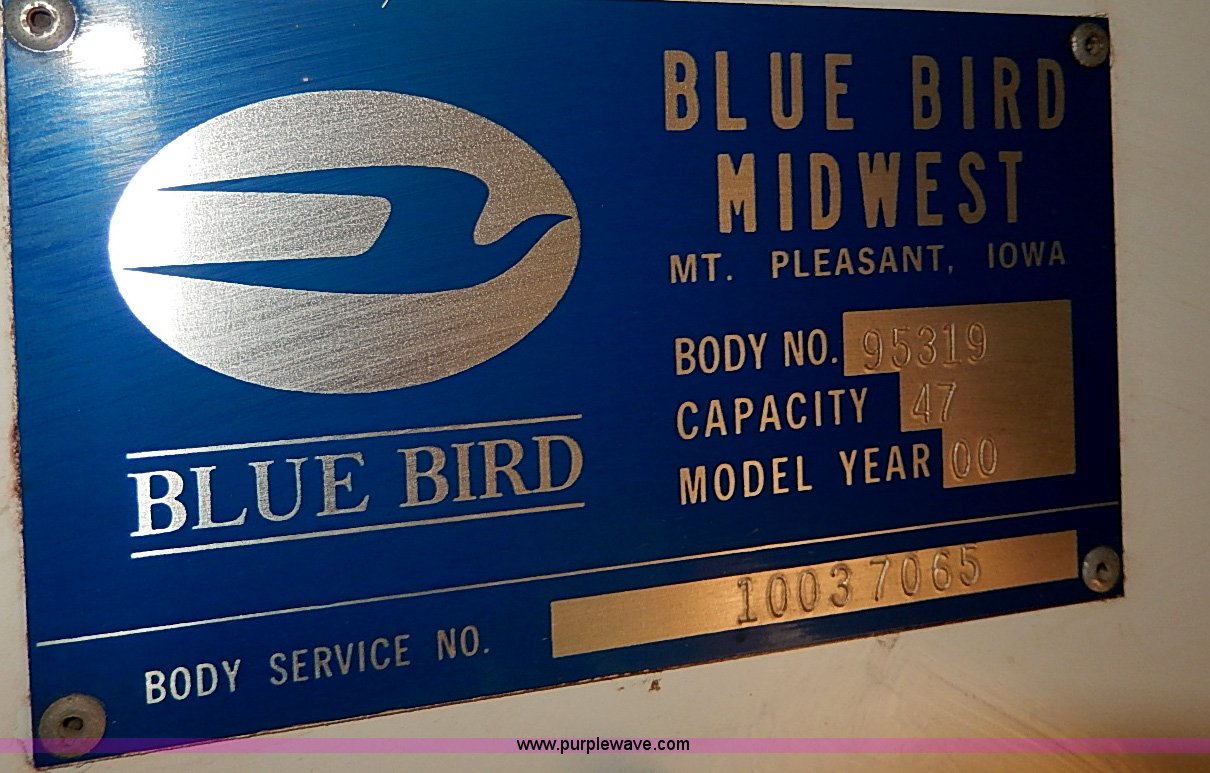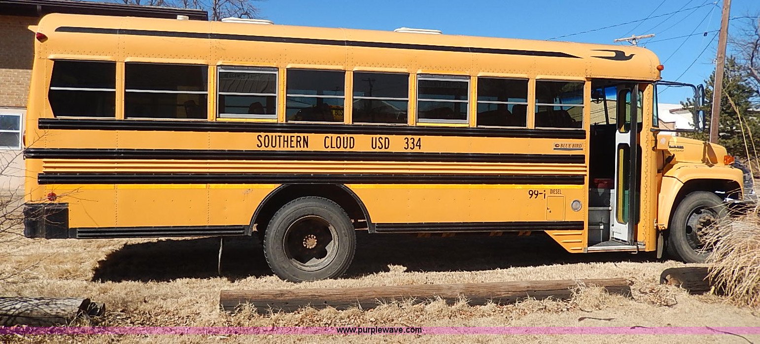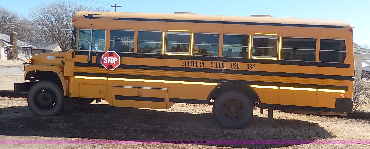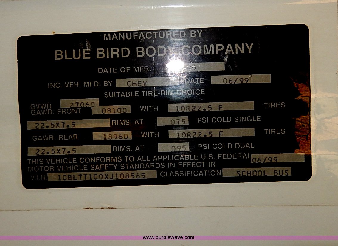 Purple Wave is selling a used Bus in Kansas. This item is a 1999 Chevrolet B7 Bluebird bus with the following: Caterpillar 3126 7.2L L6 diesel engine, 142 HP, Serial 7AS77337, Automatic transmission, Heat, Manual windows and locks, Vinyl interior, Heated mirrors, PA system, 47 passenger capacity, Underside storage, Block heater, 10R22.5 tires, GVWR 27,060 lbs, Interior/exterior cosmetic damage, Paint peeling, Body rust, Unit# 99-1