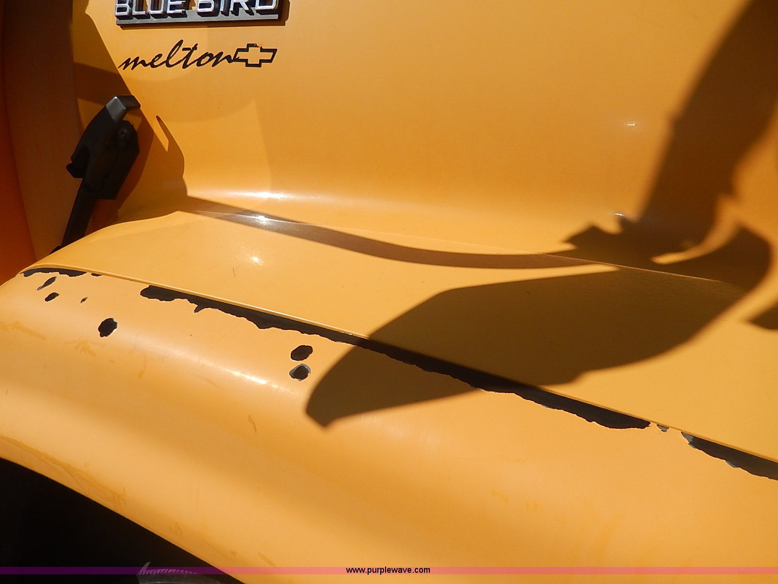 1999 Chevrolet B7 Bluebird bus. Caterpillar 3126 7.2L L6 diesel engine 142 HP, Serial 7AS77337, Automatic transmission, Heat, Manual windows and locks, Vinyl interior, Heated mirrors, PA system, 47 passenger capacity, Underside storage , Block heater, 10R22.5 tires, GVWR 27,060 lbs, Interior/exterior cosmetic damage, Paint peeling, Body rust, Unit# 99-1. Title distribution may be delayed up to 14 days from verification of funds. 1GBL7T1C0XJ108565. USD 334. 619 Tottle Ave. Miltonvale, KS 67466