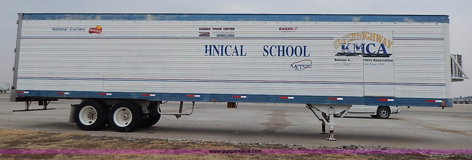 Purple Wave is selling a used Dry Van Trailer in Kansas. This item is a 1989 American 48' dry van trailer with the following: York AC and heat unit, Wood flooring, Dual rear doors, Single side entry door, Portable staircase, Power hookup and breaker box, Sliding tandem axles, Spring suspension, Air brakes, 275/80R24.5 tires, Previously used as a portable classroom