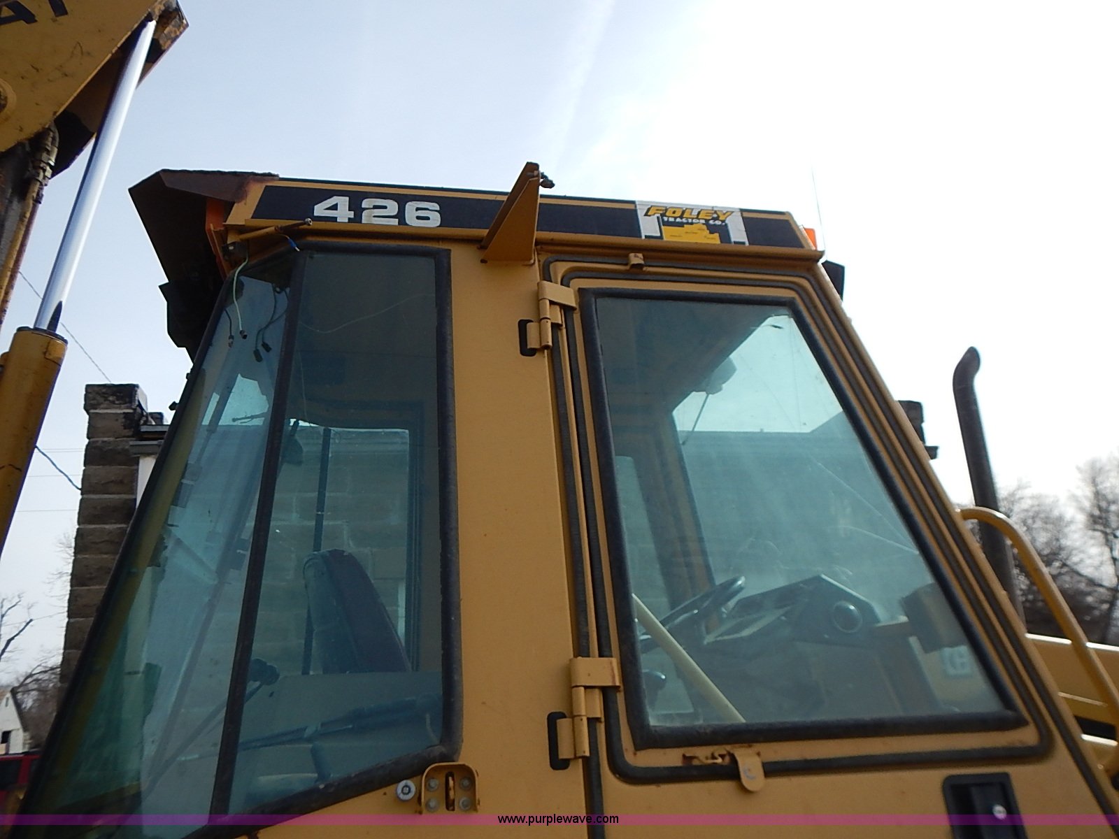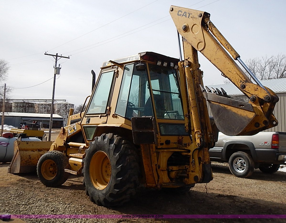 Purple Wave is selling a used Tractor Loader Backhoe in Kansas. This item is a 1987 Caterpillar 426 backhoe with the following: 10,842 hours on meter, Caterpillar four cylinder diesel engine, Type: 7C6075, Serial U154276P, Shuttleshift transmission, 4F-1R gears, Type 9W7920, Serial C71542, Heat, Front and rear work lights, Joystick loader controls, Four lever backhoe controls, 86.5" x 30" x 30" loader bucket, Bolt-on cutting edge, (4) top mounted hooks, 15' maximum backhoe reach, 39" x 24" backhoe bucket, Five bolt-on teeth, Rear outrigger pads, 11L-16 front tires, 19.5-24 rear tires, 14,254 lbs. base operating weight, Operator's manual, Windshield cracked, Has been shedded the last two years, Brakes need replaced, Minor oil leaks, Serial 7BC00891