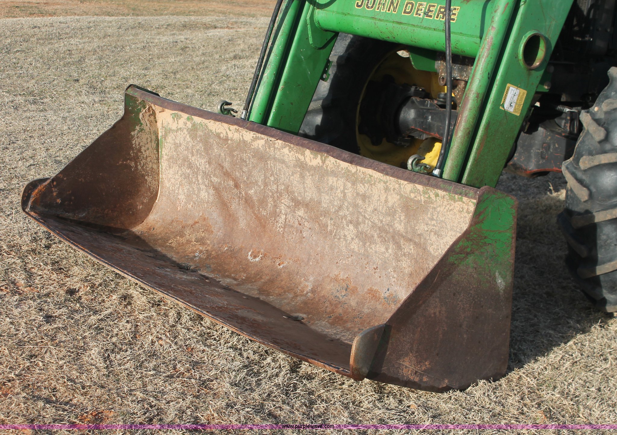 Purple Wave is selling a used Tractor in Oklahoma. This item is a 1992 John Deere 5200 MFWD tractor with the following: 3,708 hours on meter, John Deere 3029 ALV-01 2.9L three cylinder diesel engine, 45 HP, Serial CD3029D118897, Manual transmission, 9F-3R gears, ROPS bar, John Deere 540 loader, 72"W bucket, Serial W00540, 002410, Joystick controls, Three point, Draw bar, 540 PTO, (2) rear hydraulic remotes, 72"W blade, Angle adjust, 18 gallon fuel tank, 81" wheelbase, 11.2-24 front tires, 16.9-28 rear tires, 4,650 lbs. base operating weight, Four wheel drive disengaged, Missing front drive line, Rear oil leak between transmission and rear end, Serial LV5200C111791
