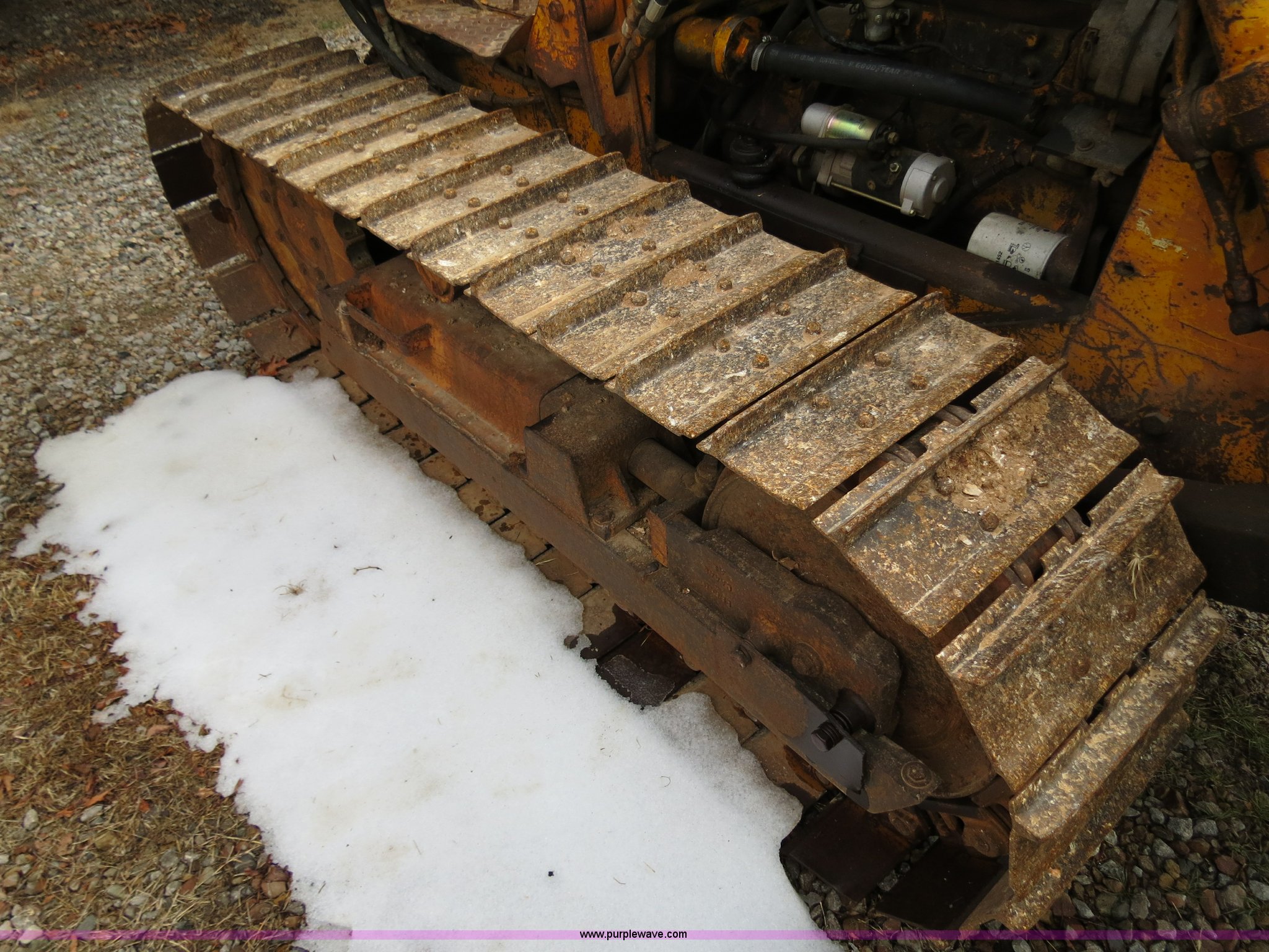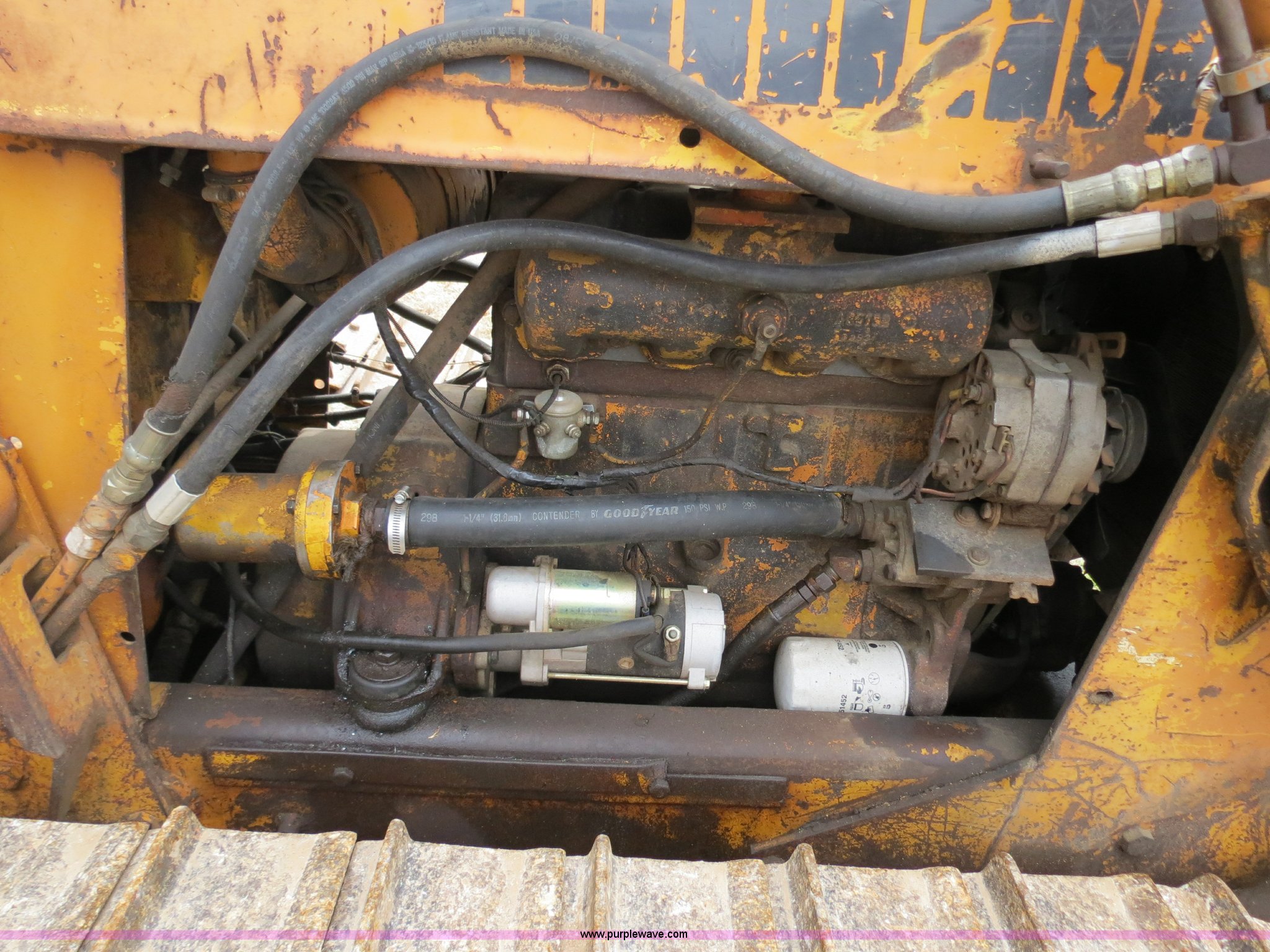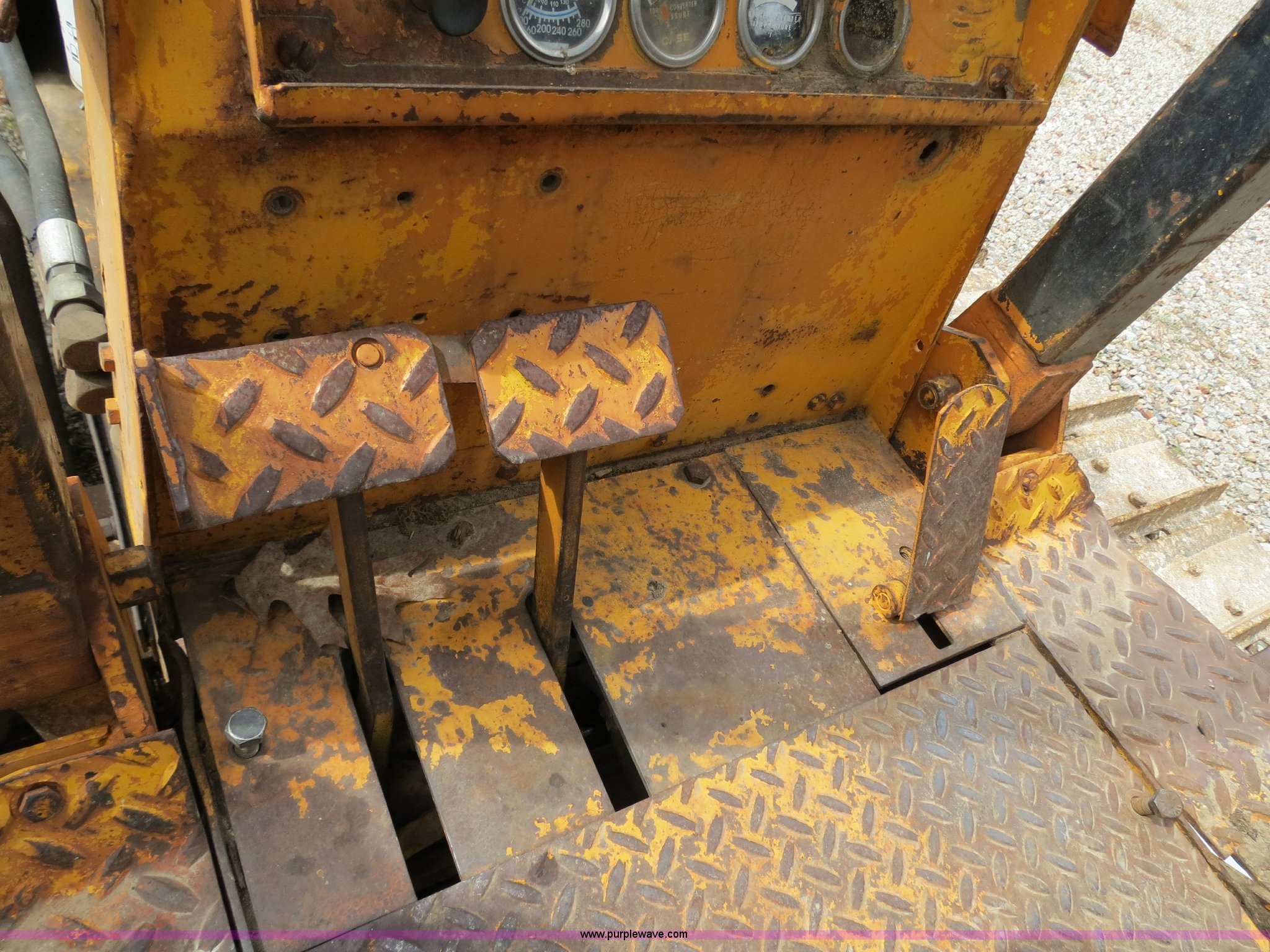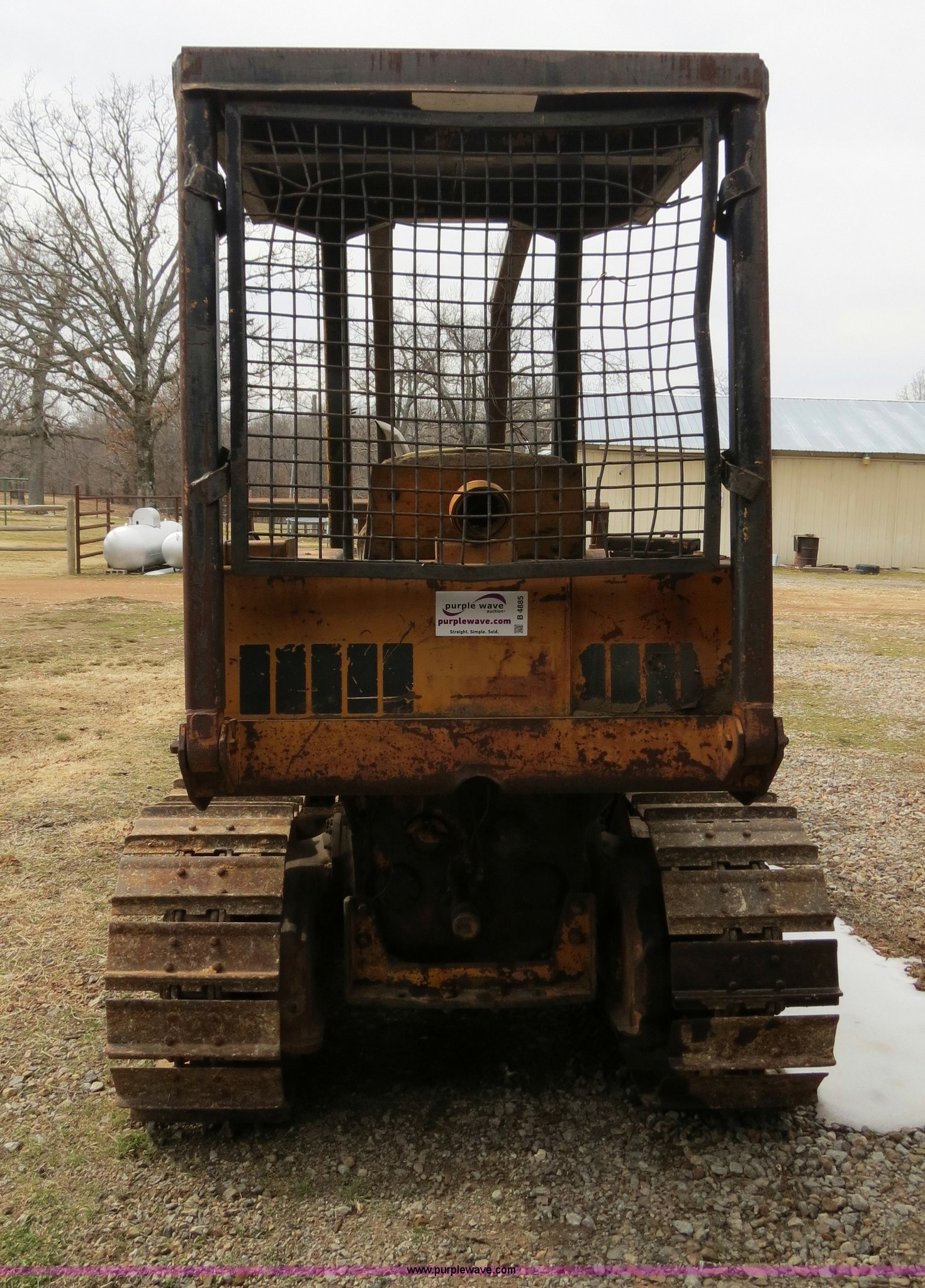 Purple Wave is selling a used Crawler Dozer in Oklahoma. This item is a Case 450 dozer with the following: Unknown hours on meter, Case four cylinder diesel engine, Engine work done one year ago, Hydrostatic transmission, Canopy, Sweeps, Rear screen guard, 88"W S-dozer six-way blade, Angle, Tilt, (5) bottom rollers, 16"W single grouser tracks, Needs battery
