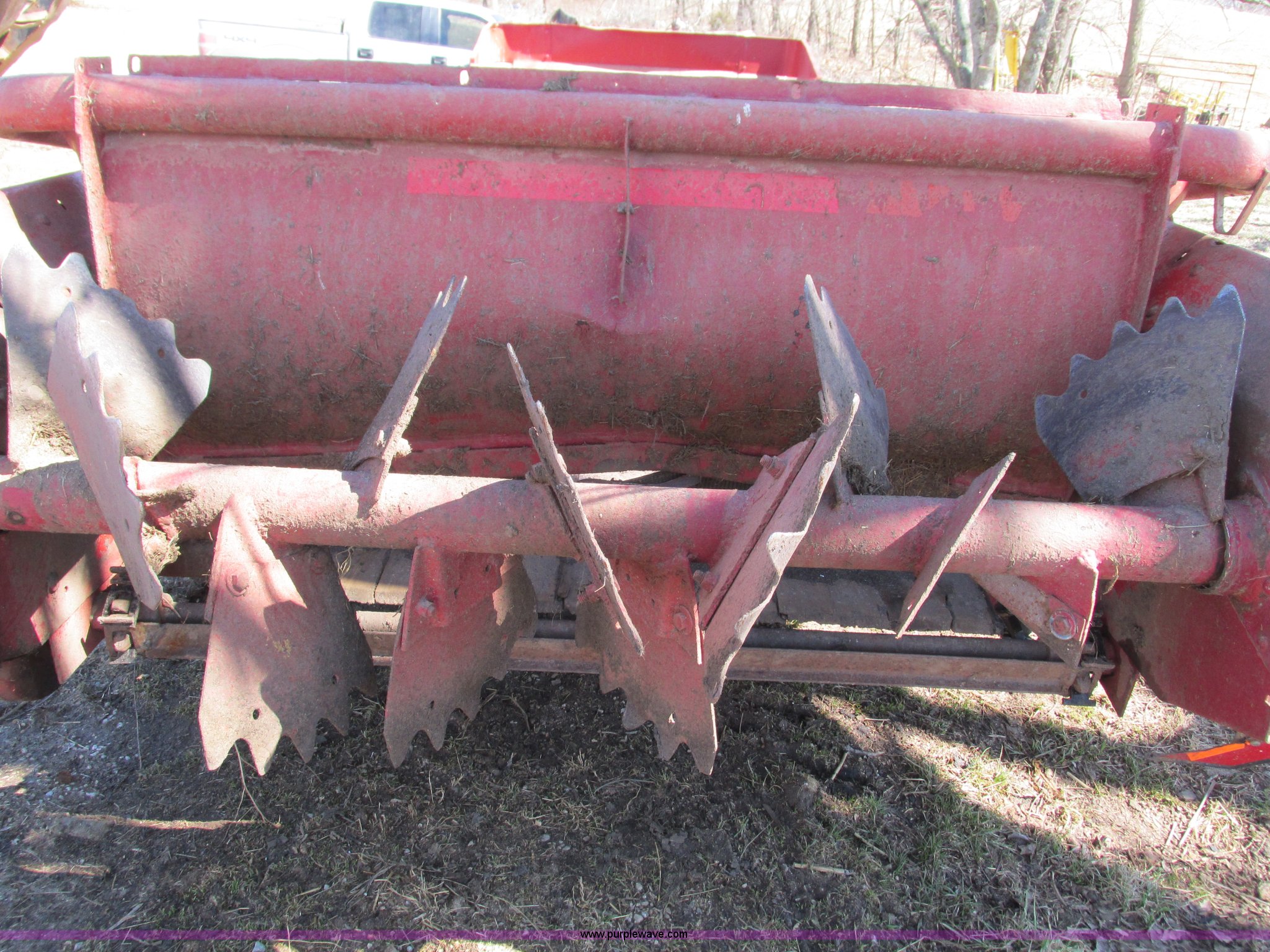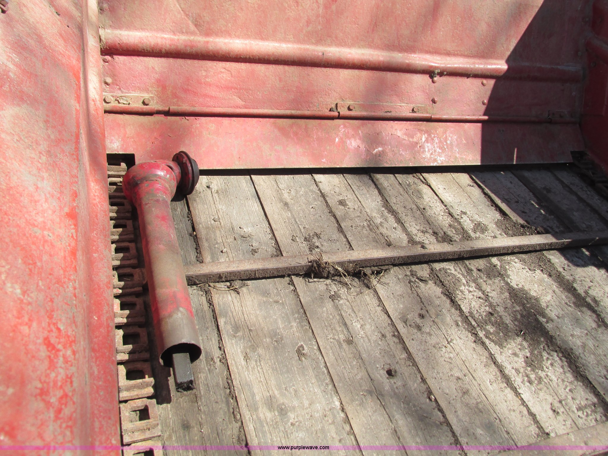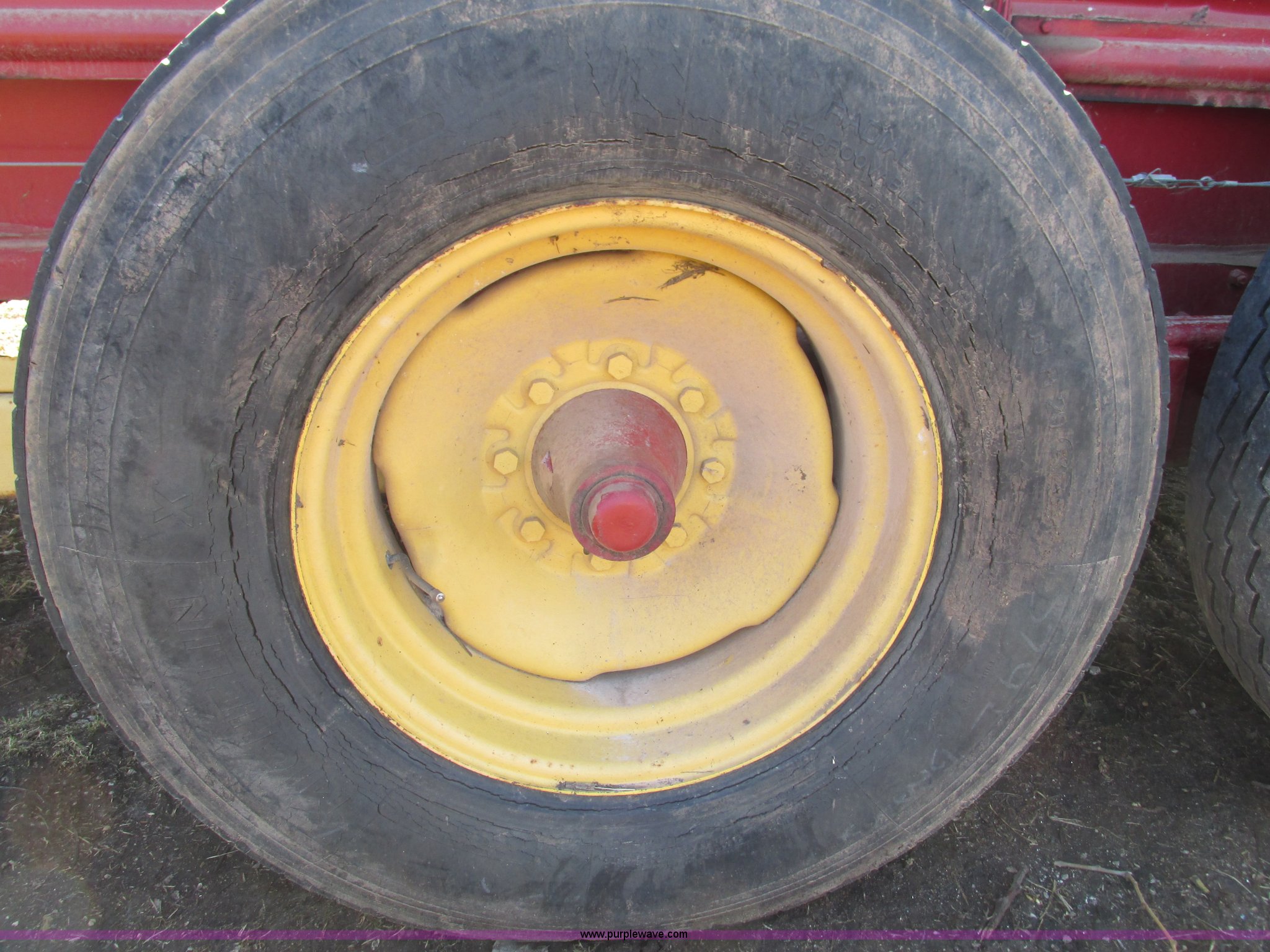 Purple Wave is selling a used Manure Spreader in Missouri. This item is a New Holland 680 manure spreader with the following: Approx. 170"L x 60"W, Wood floor, 540 PTO, Pin hitch, Jack stand, 9R20 tires, Weather cracks on tires