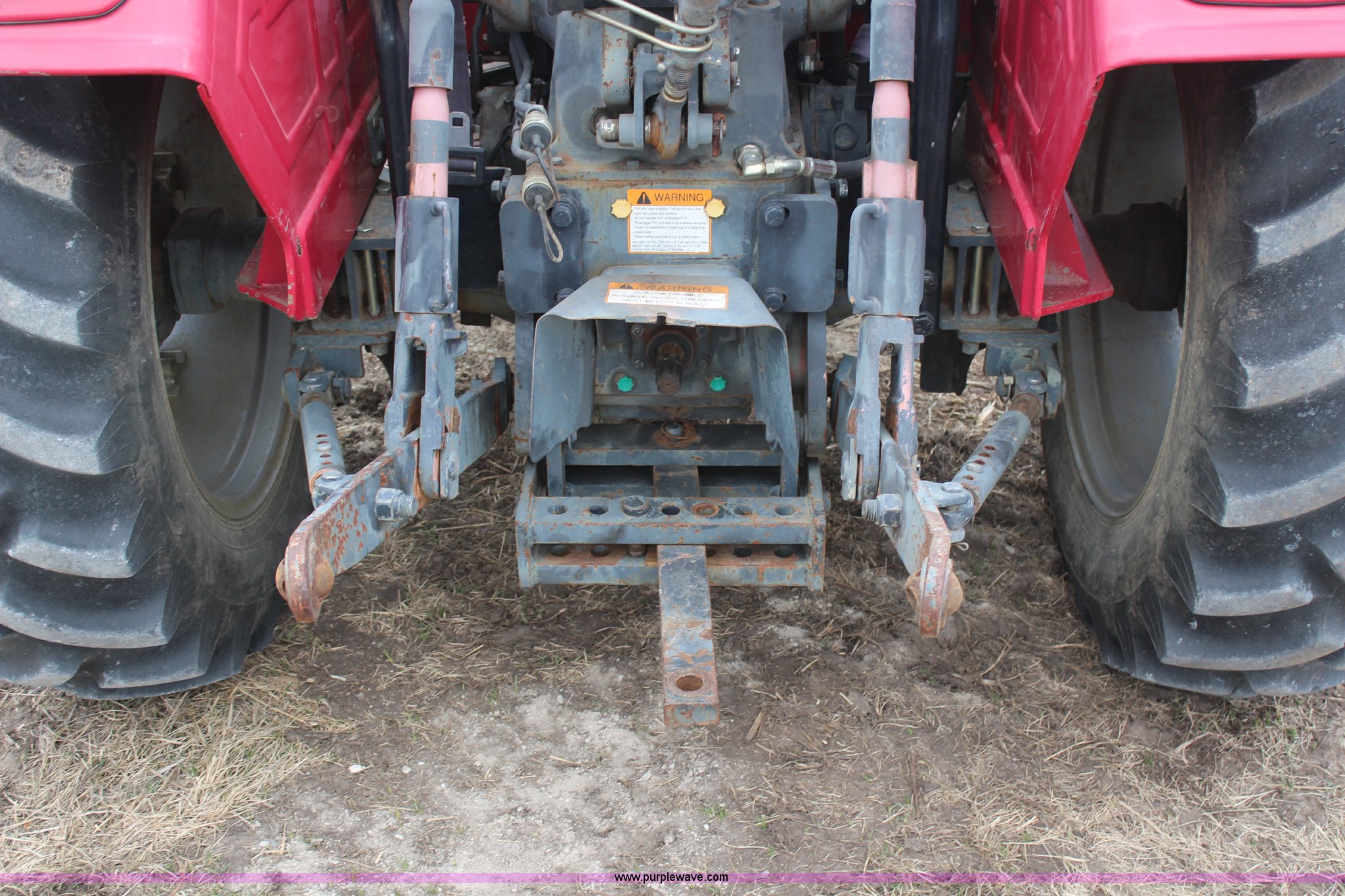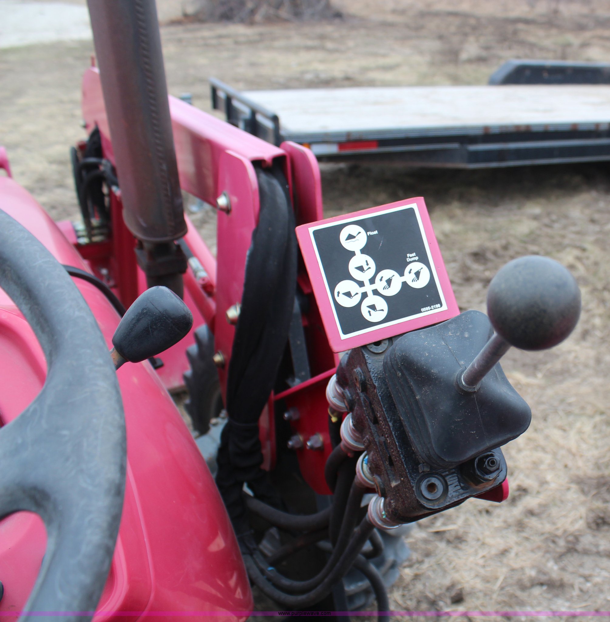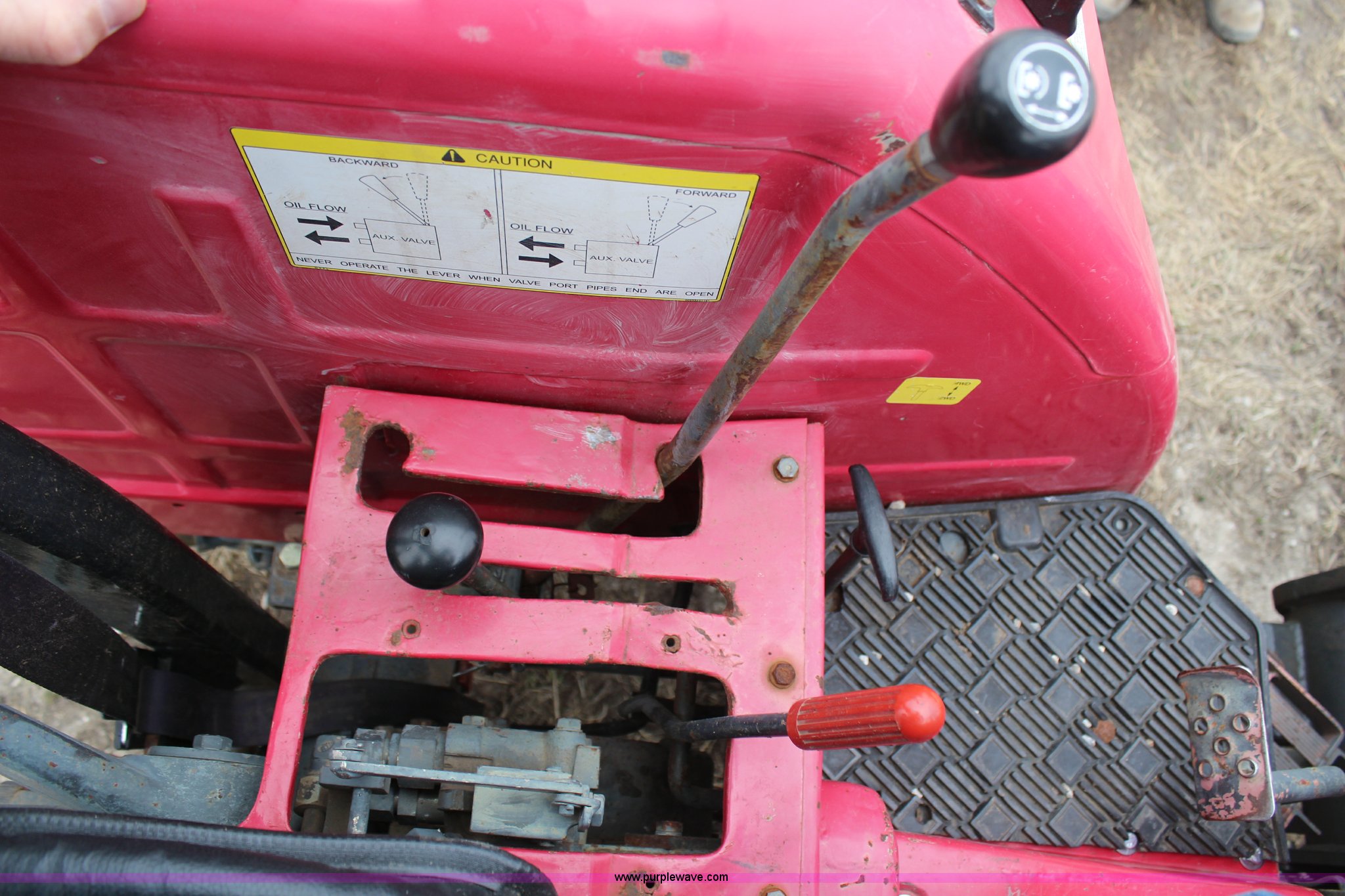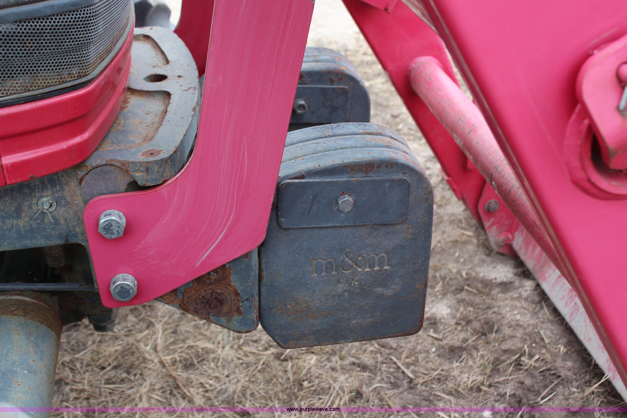 Purple Wave is selling a used Tractor in Kansas. This item is a 2001 Mahindra 4530 MFWD tractor with the following: 440 hours on meter, Mahindra 2.4L three cylinder diesel engine, 42 HP, Synchro shuttle shift transmission, 8F-8R gears, ML245 loader, 6'W bucket, Joystick controls, Three point, Draw bar, 540 PTO, One rear hydraulic remote, (6) suitcase weights, 17.1 gallon fuel tank, 9.5-20 front tires, 13.6-20 rear tires, 5,720 lbs. base operating weight, Serial USM1006