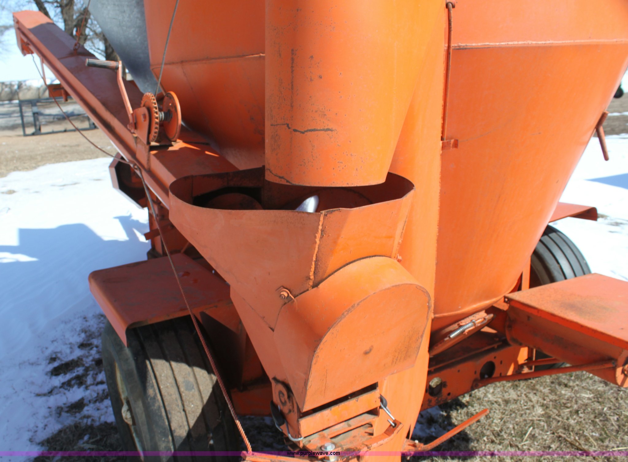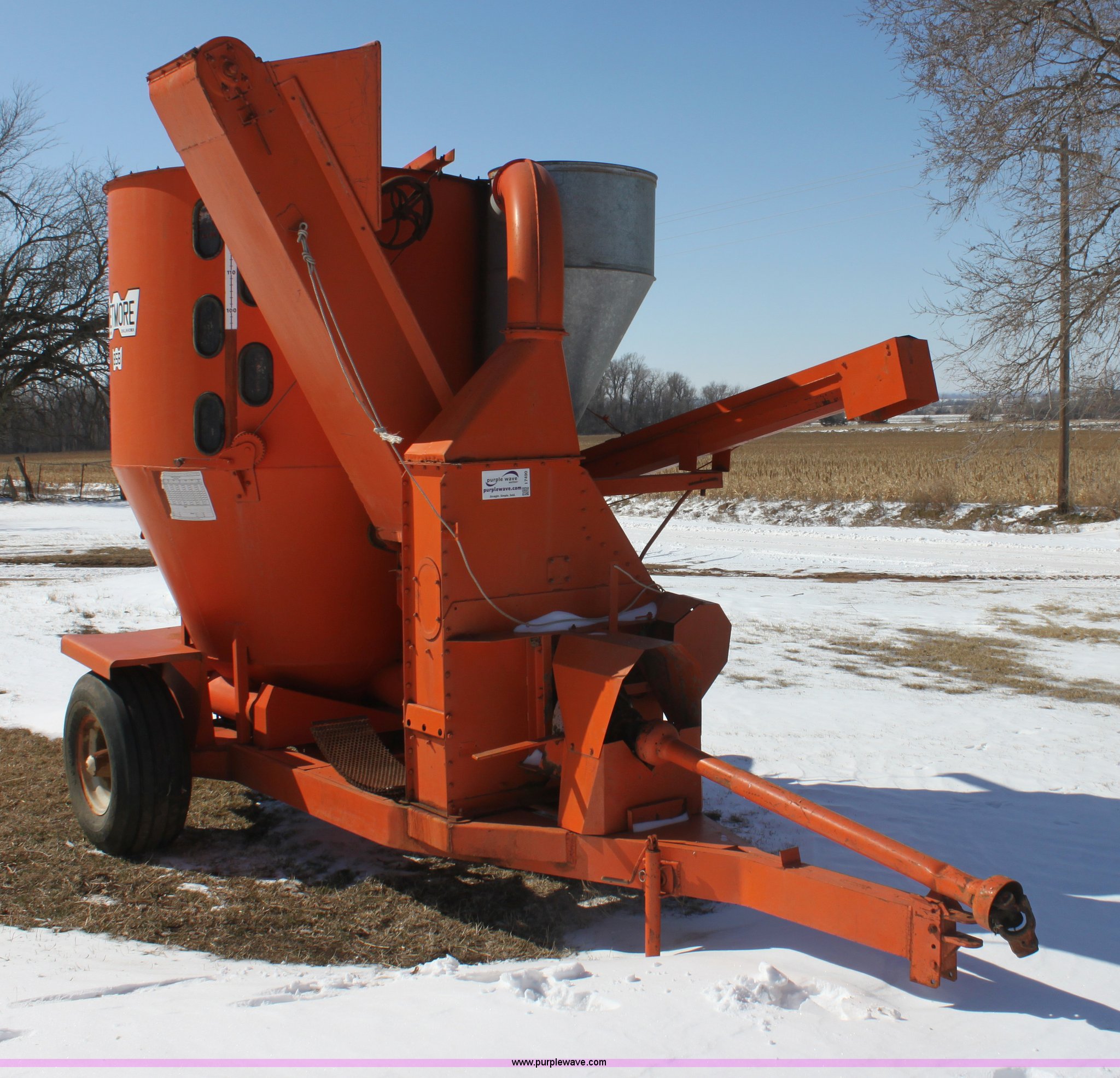 Purple Wave is selling a used Feed Mixer or Bale Processor in Kansas. This item is a Wetmore 858 grinder/mixer with the following: 540 PTO, 12.5L-15 tires, Stored inside
