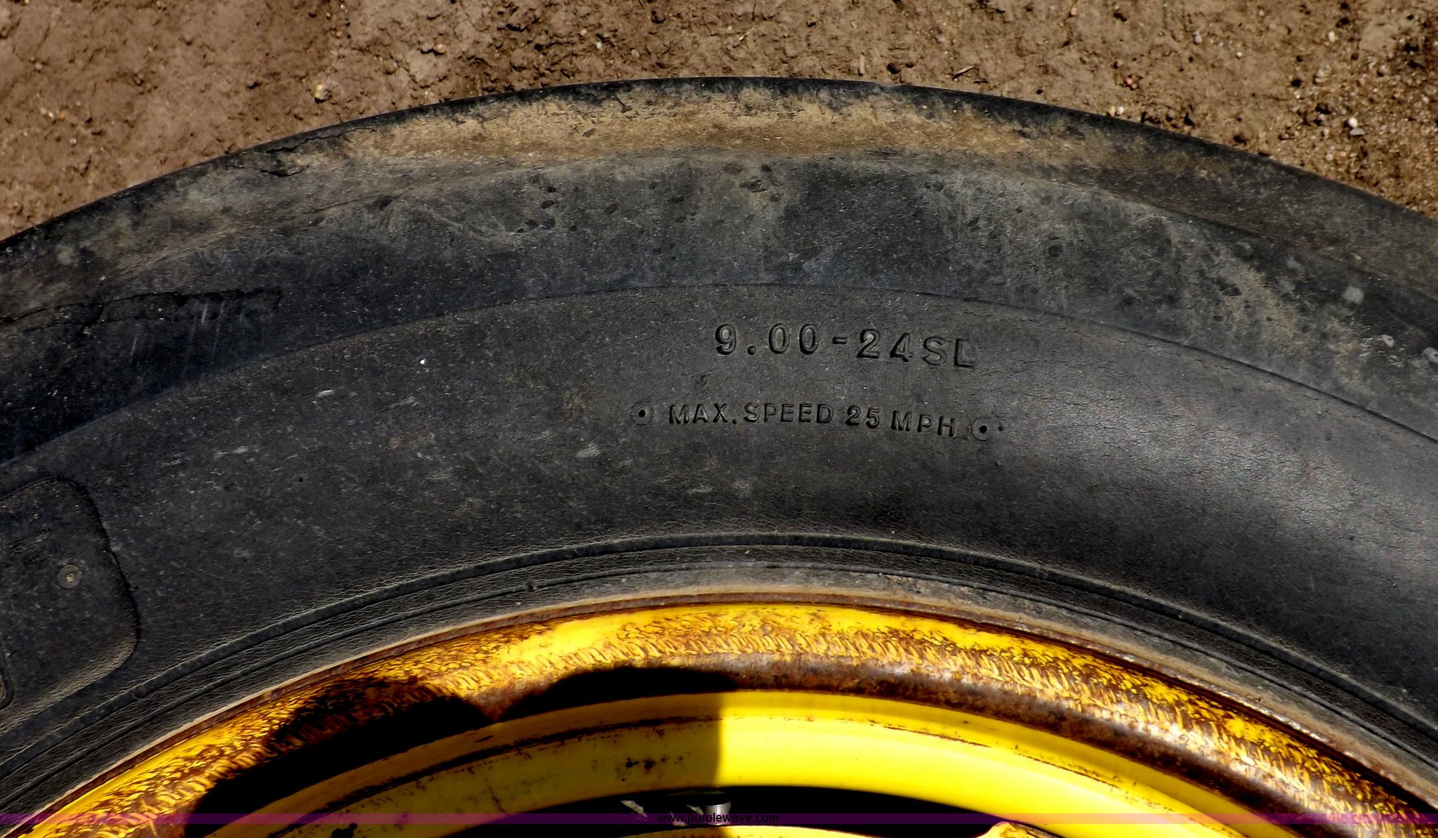 Purple Wave is selling a used Industrial Tires or Tracks in Kansas. This item is a (2) tires and wheels with the following: Titan 9.00-24SL, Duralife I-1, Eight ply rating, Tubeless, Wheels fit John Deere 7700 combine