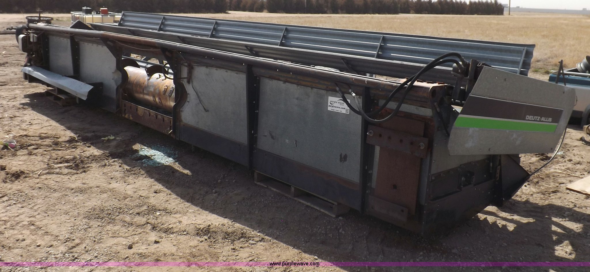 Purple Wave is selling a used Platform or Stripper Head in Kansas. This item is a Deutz Allis 24' head with the following: Bat reel, Hydraulic reel lift, Serial LM2466085G8686