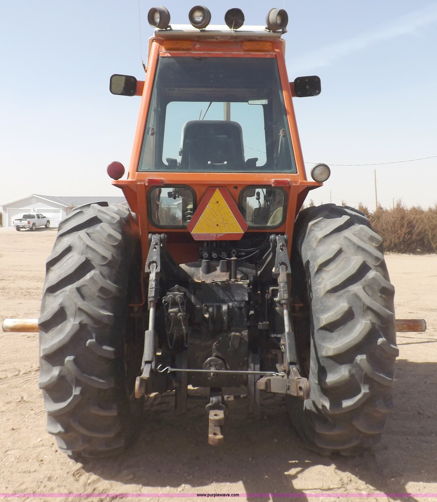 Purple Wave is selling a used Tractor in Kansas. This item is a 1980 Allis Chalmers 7060 tractor with the following: 8,892 hours on meter, Allis Chalmers 670T six cylinder diesel engine, Serial 70-11440, Powershift transmission, 12F-2R gears, Differential lock, AC and heat, AC needs charged, AM/FM, Tilt steering wheel, Front and rear work lights, Some broken, (10) suitcase weights, 106" wheelbase, 11.00-16 front tires, 18.4-38 rear tires, Shifts hard from low to high, Cracked exhaust manifold, Interior trim missing/damaged, Missing battery box cover, Rear view mirrors missing or broken, Serial 706097996