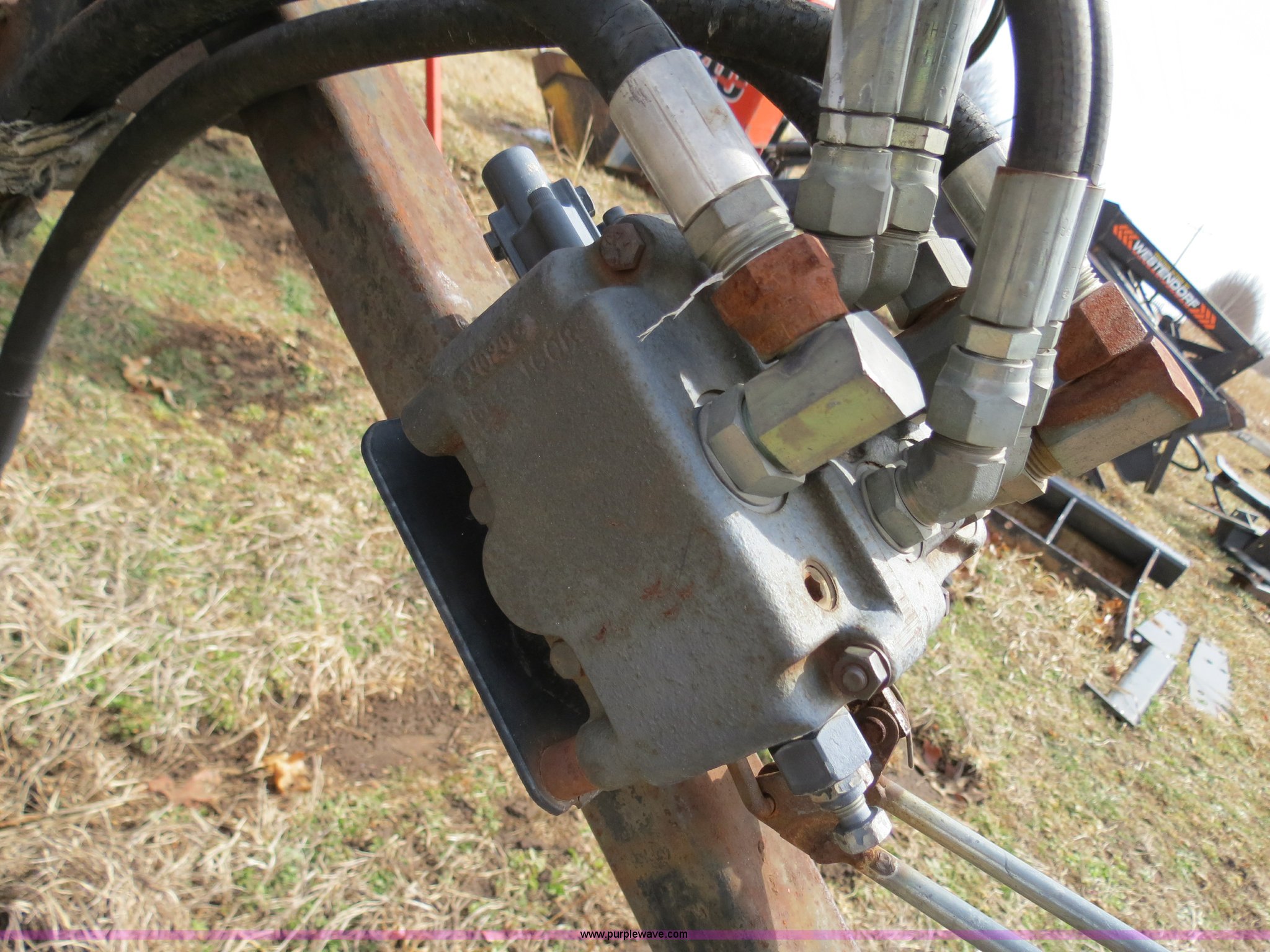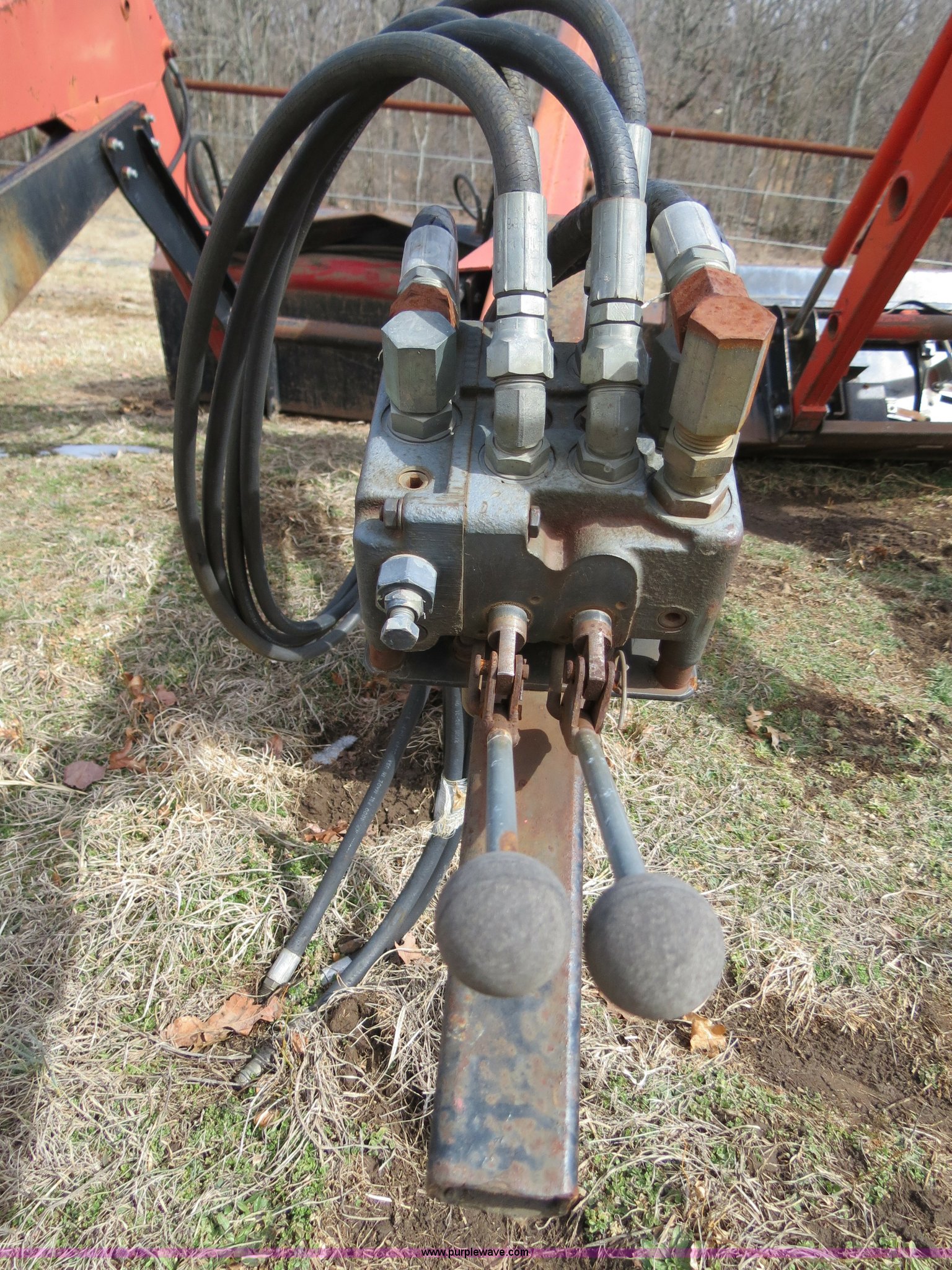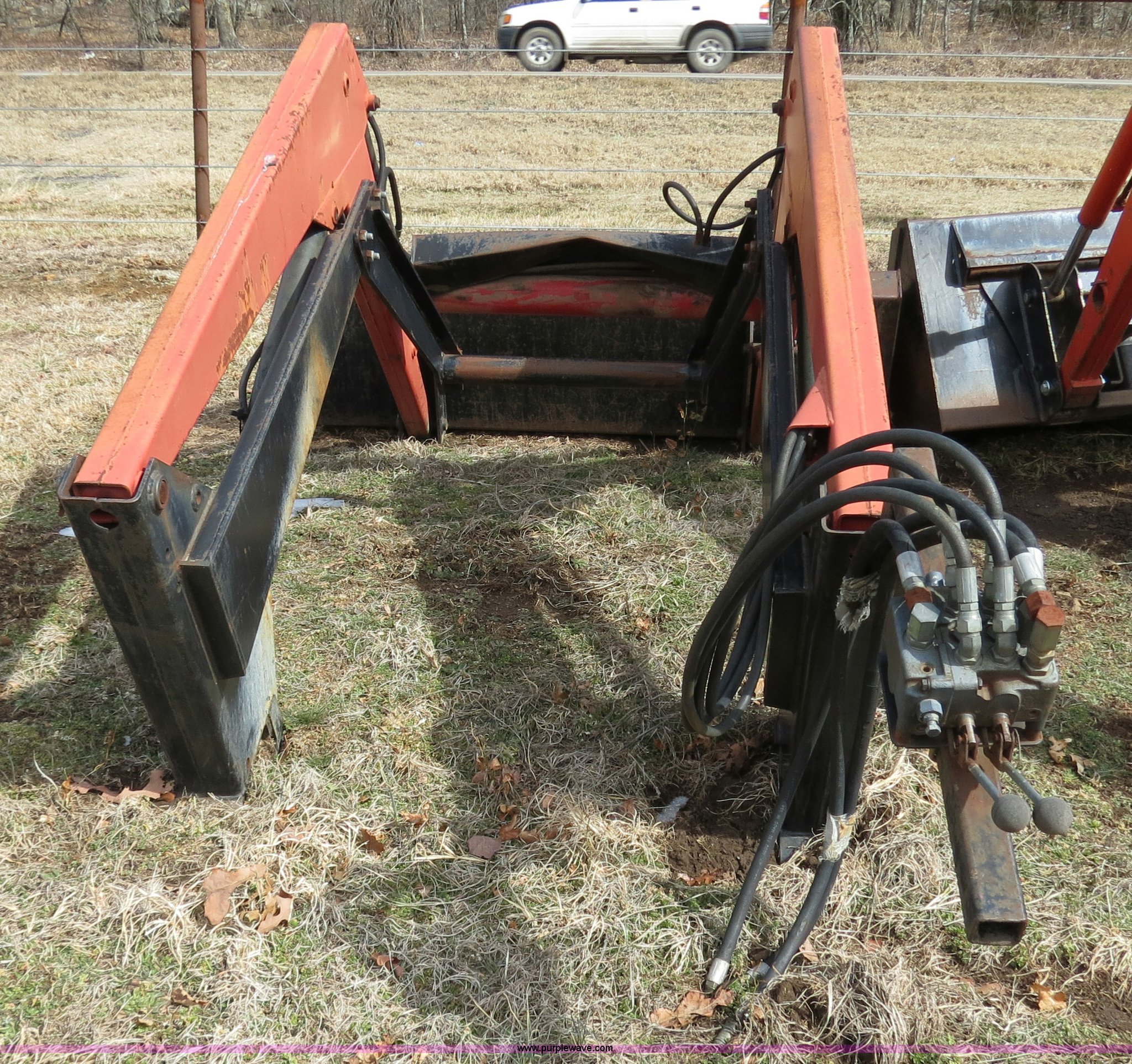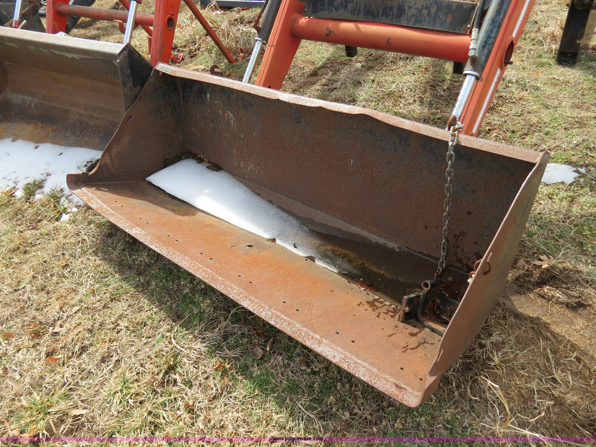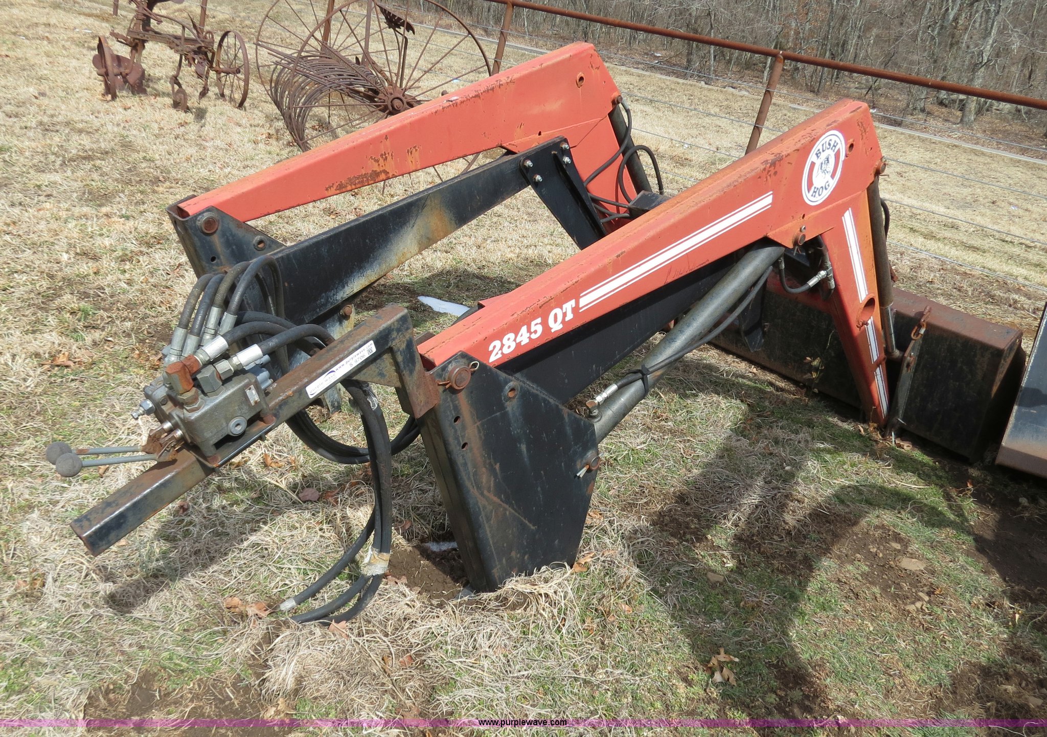 Purple Wave is selling a used Ag Tractor Loader or Attach. in Oklahoma. This item is a Bush Hog 2845QT quick attach loader with the following: 72" bucket, Mounting brackets for straight frame, Hydraulic control valve, Two lever controls