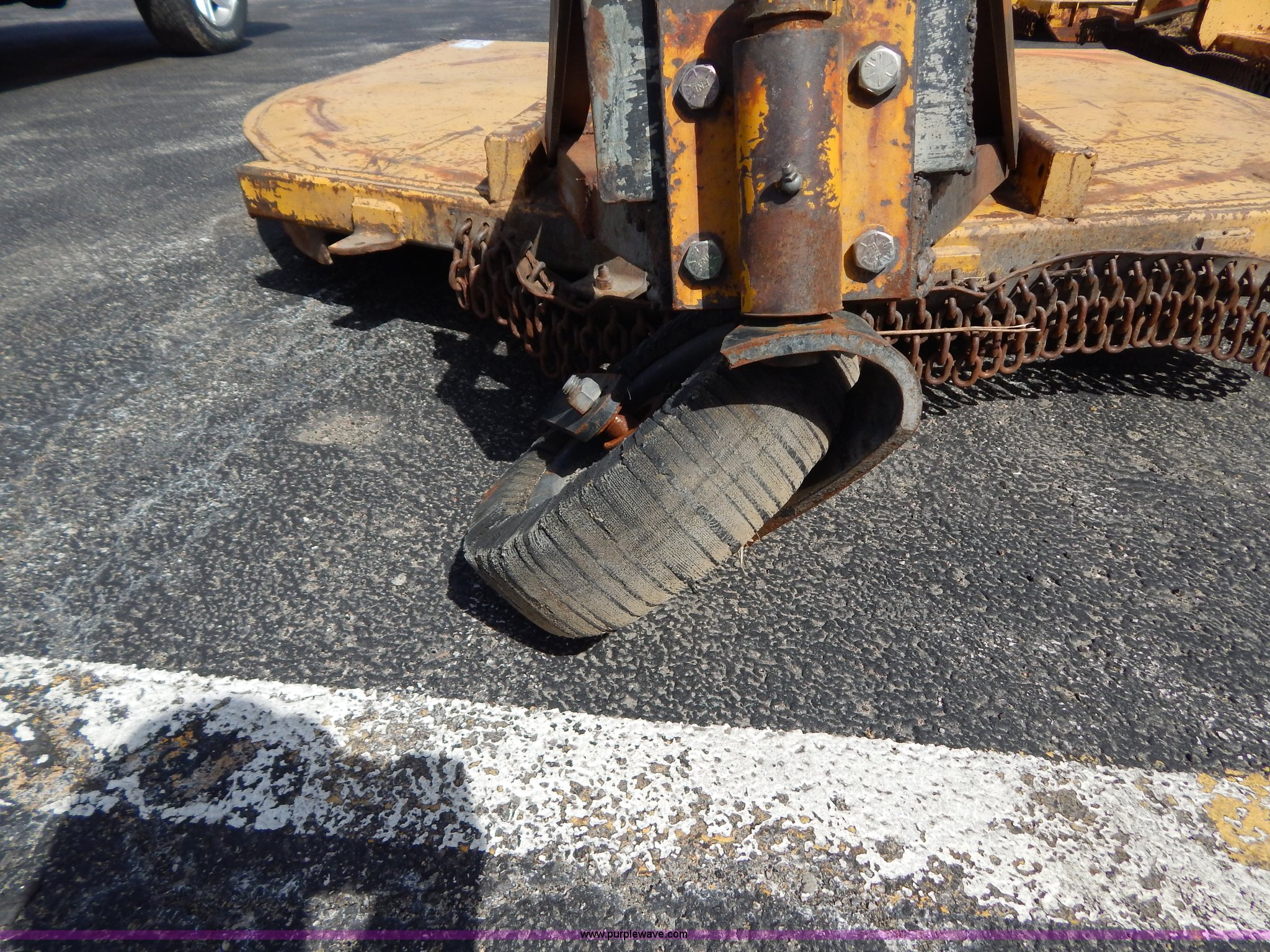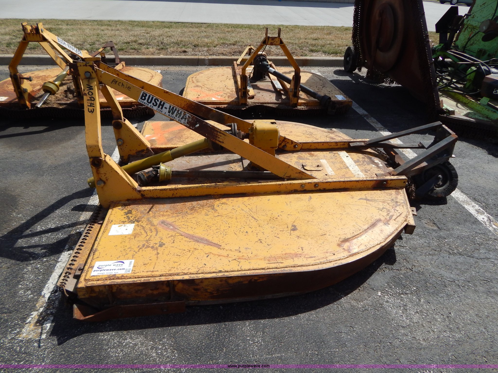 Purple Wave is selling a used Mower, Cutter, Shredder in Missouri. This item is a Bush Wacker 7' rotary mower with the following: 540 PTO, Three point, Rear tire mount bent, Unit# M0943
