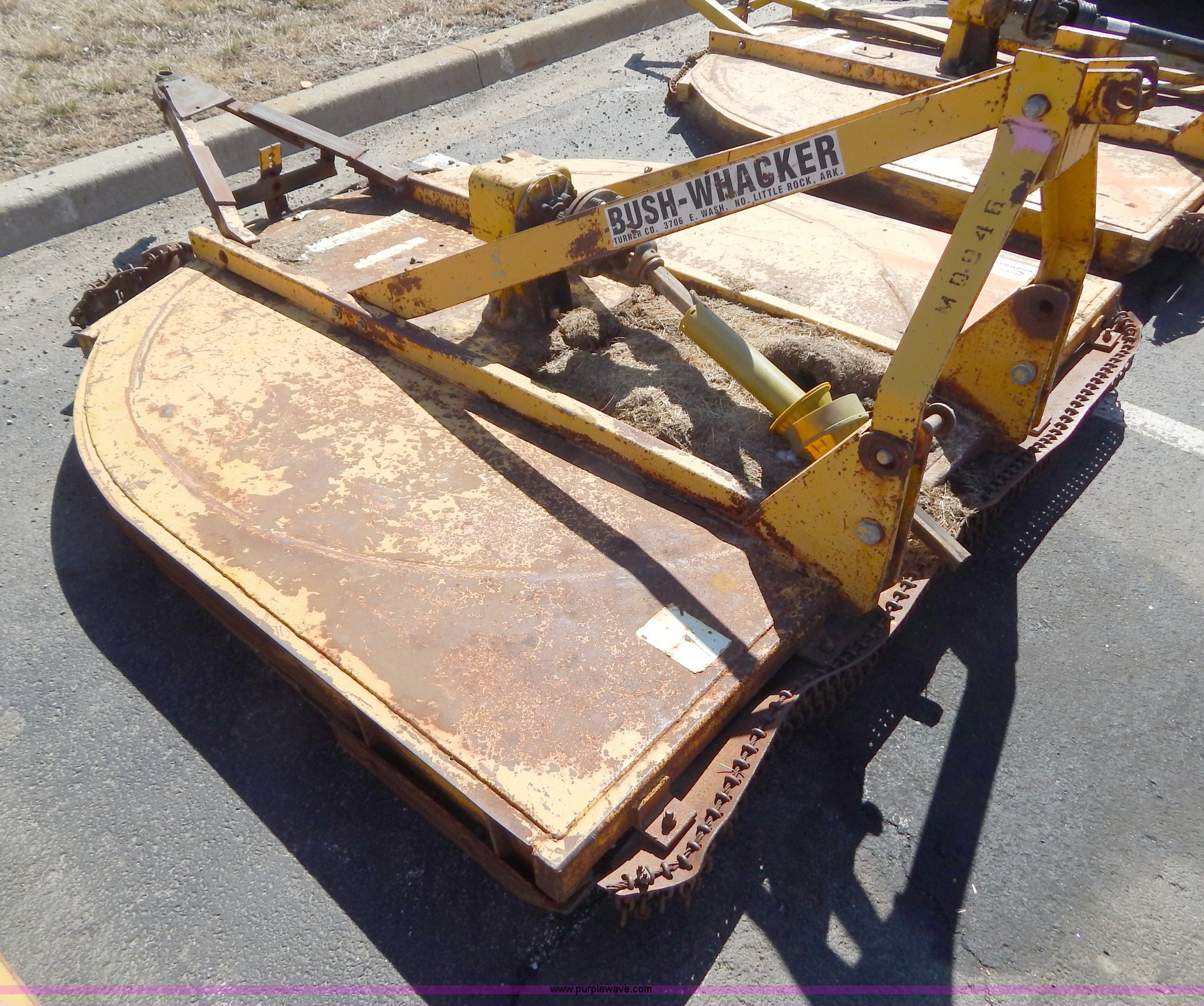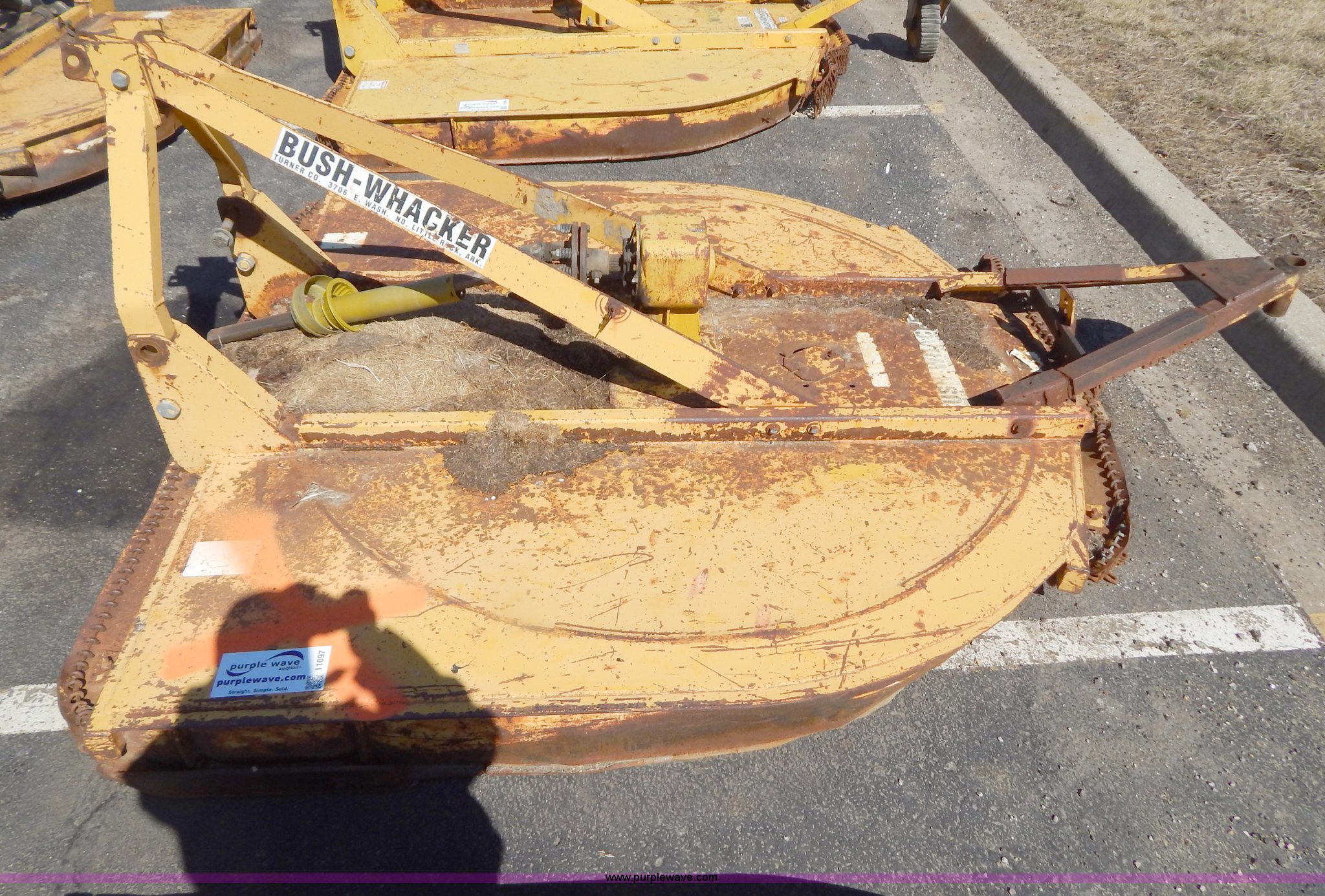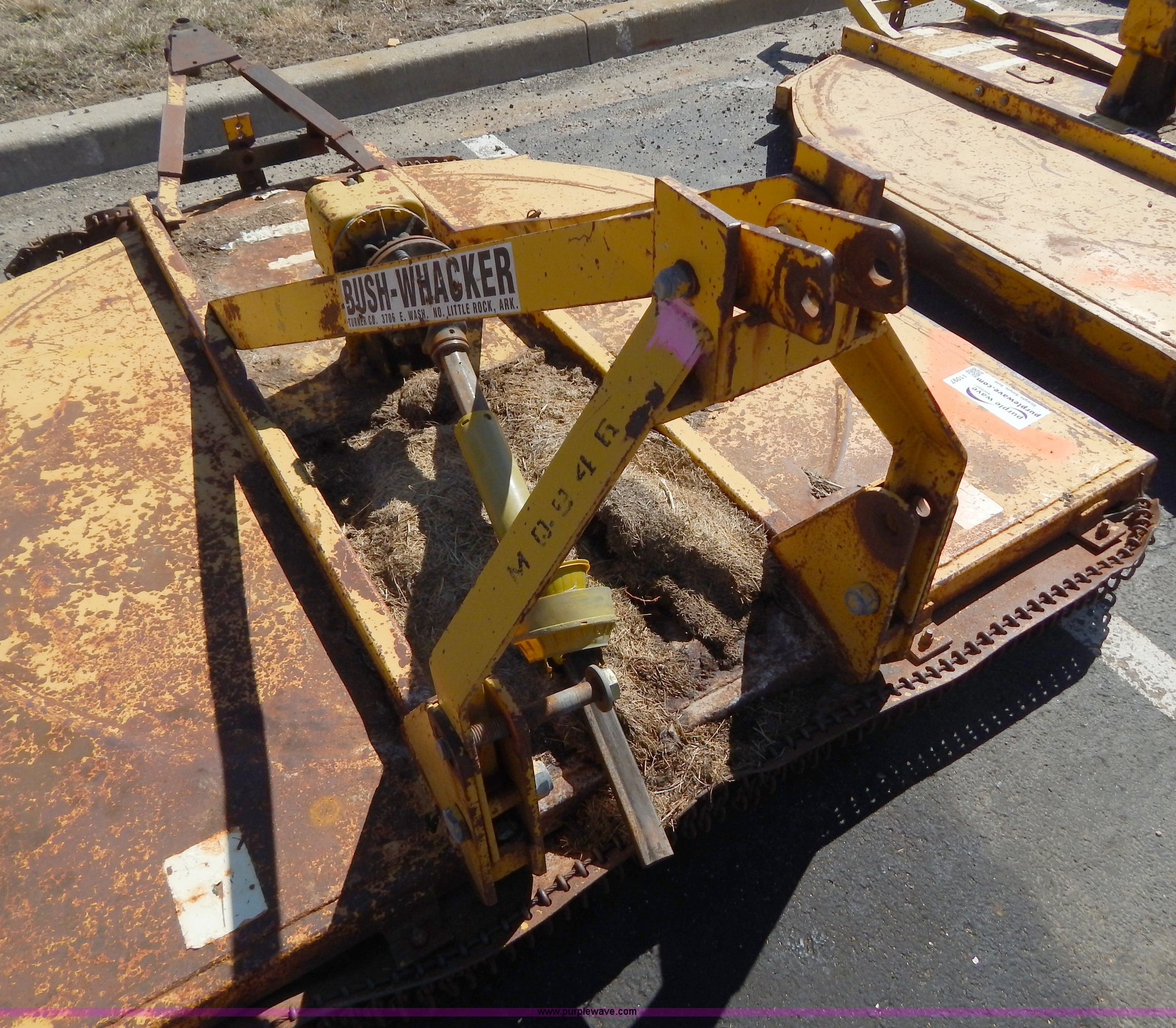 Purple Wave is selling a used Mower, Cutter, Shredder in Missouri. This item is a Bush Wacker 7' rotary mower with the following: 540 PTO, Three point, Missing PTO shaft, Unit# M0946