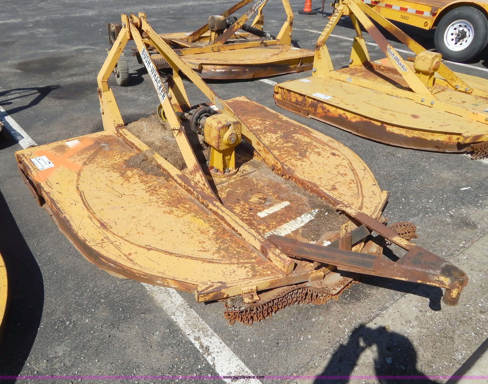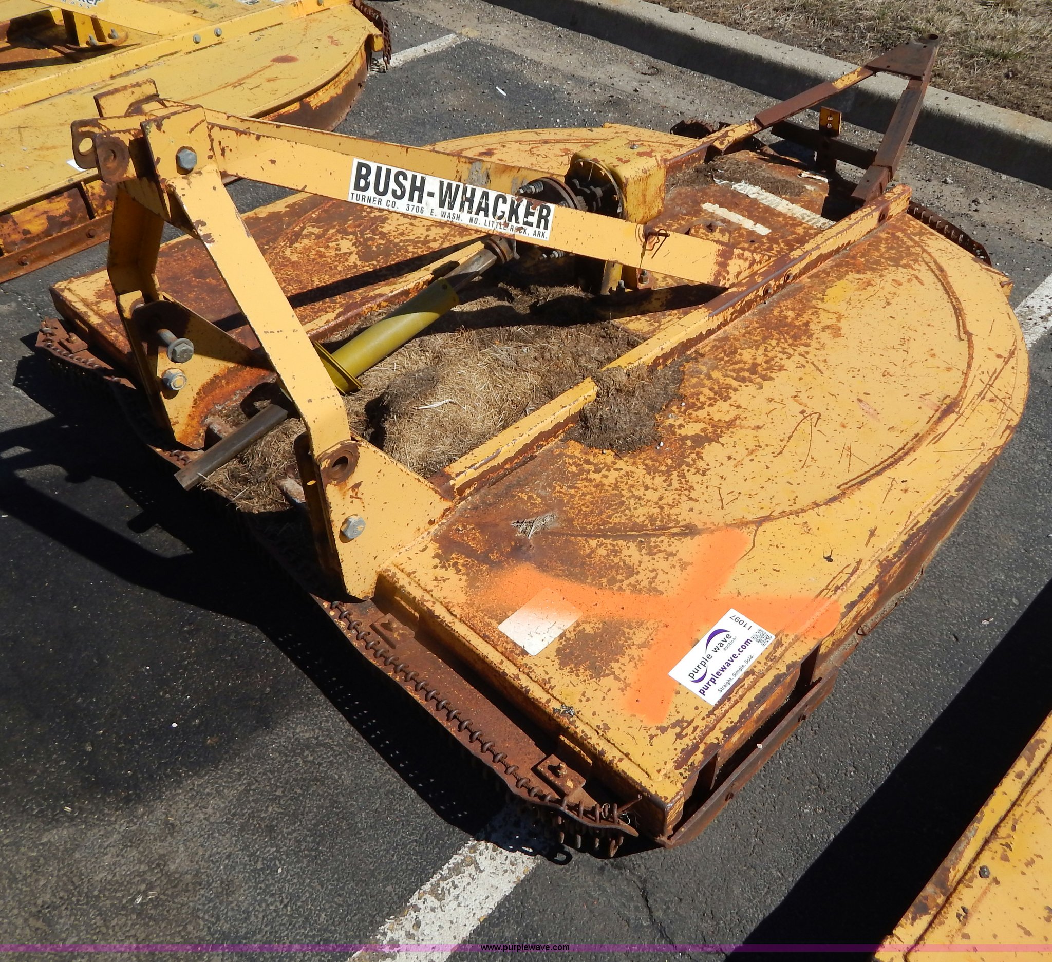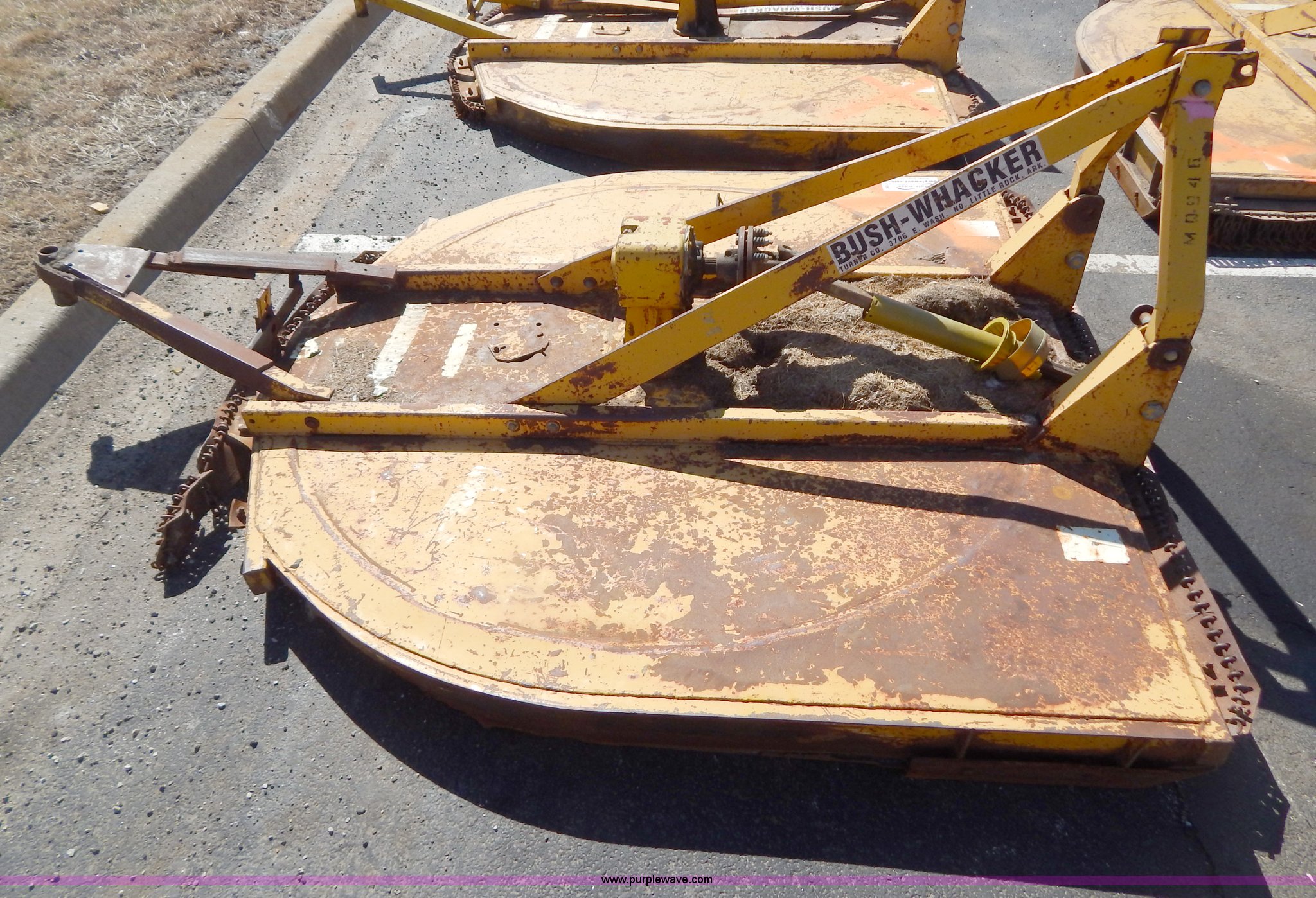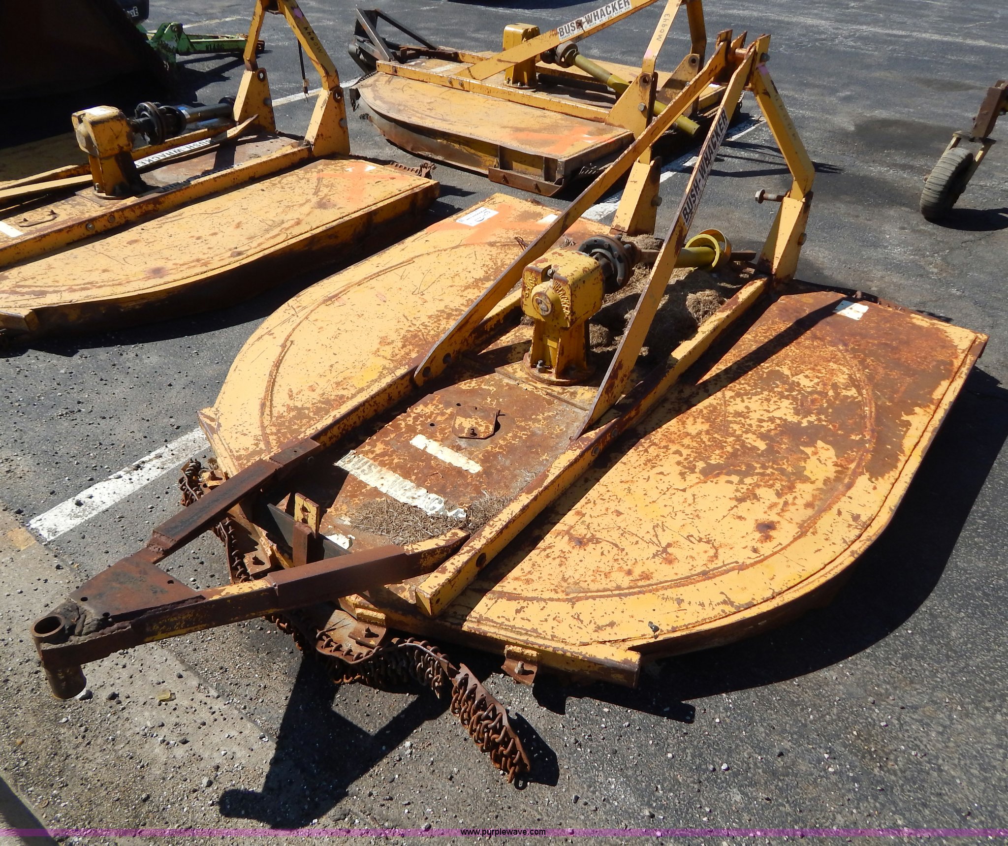 Purple Wave is selling a used Mower, Cutter, Shredder in Missouri. This item is a Bush Wacker 7' rotary mower with the following: 540 PTO, Three point, Missing PTO shaft, Unit# M0946