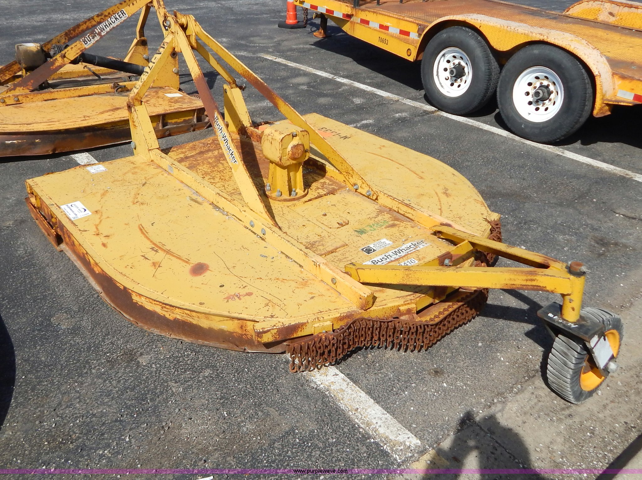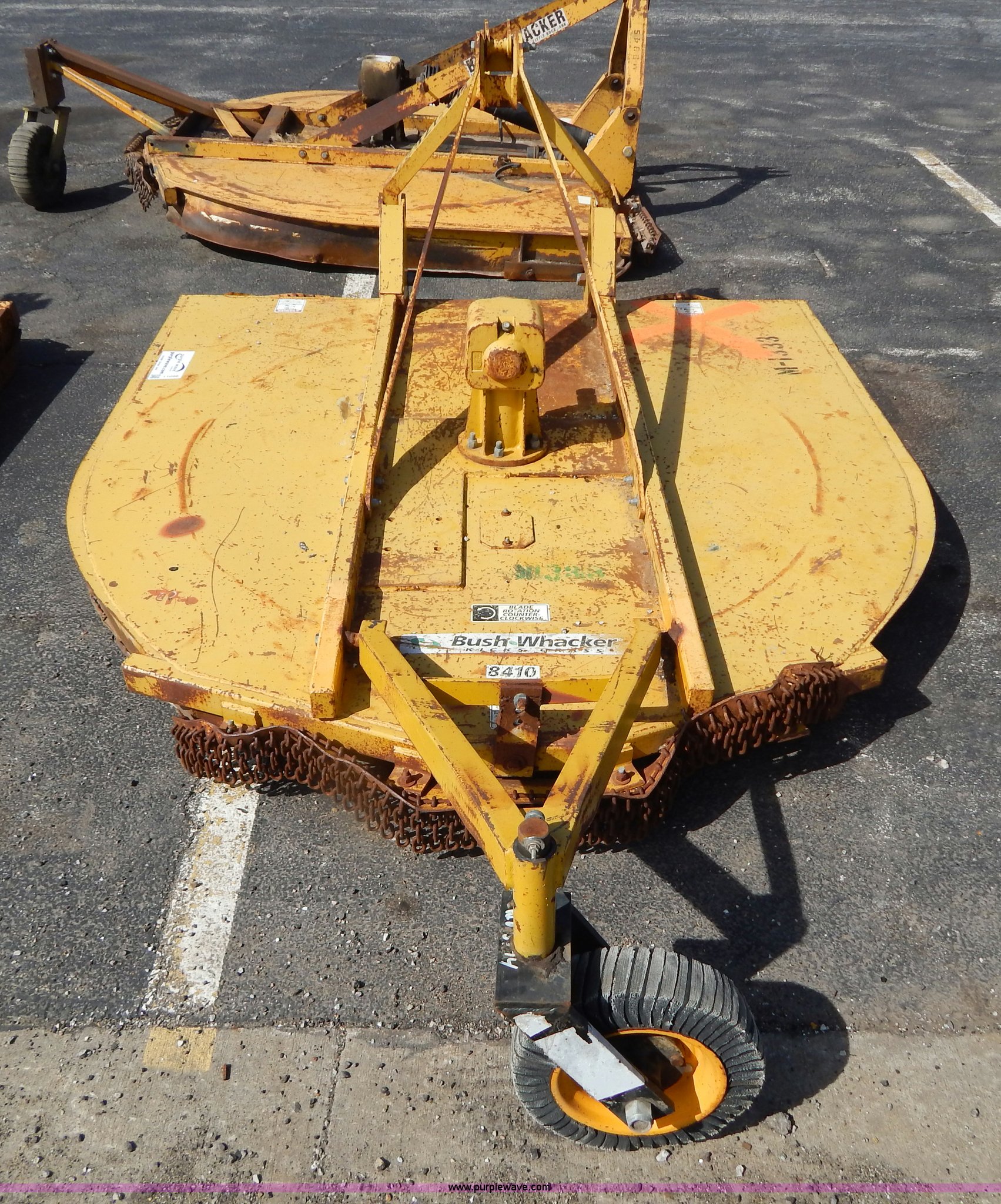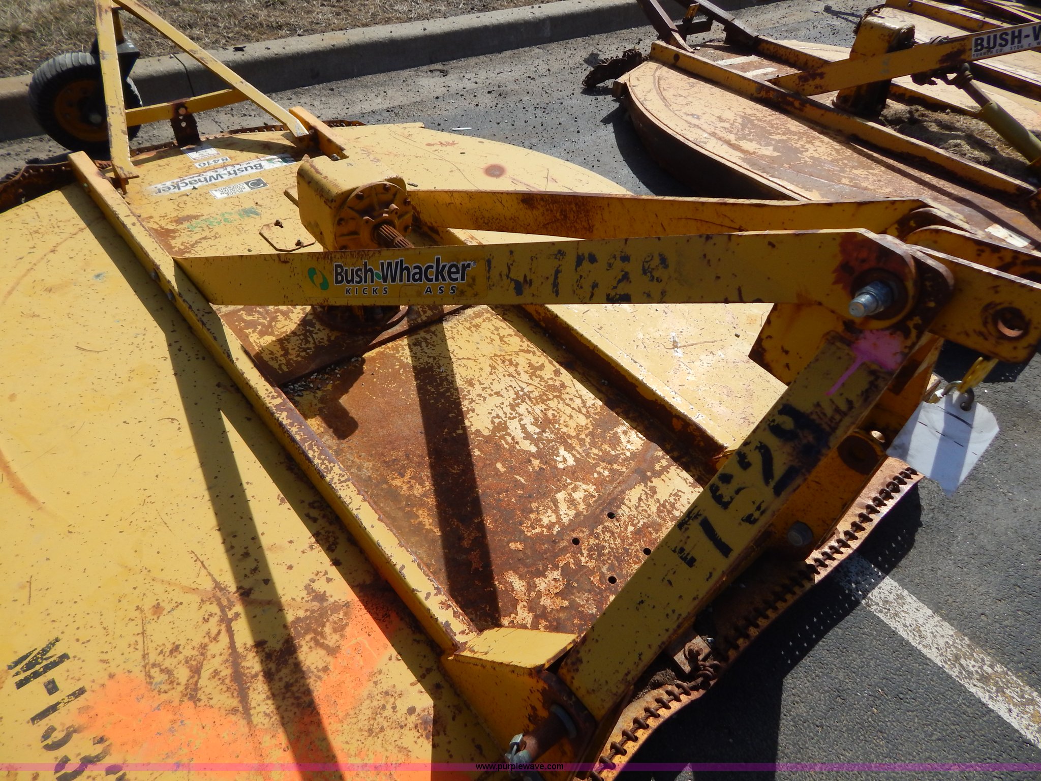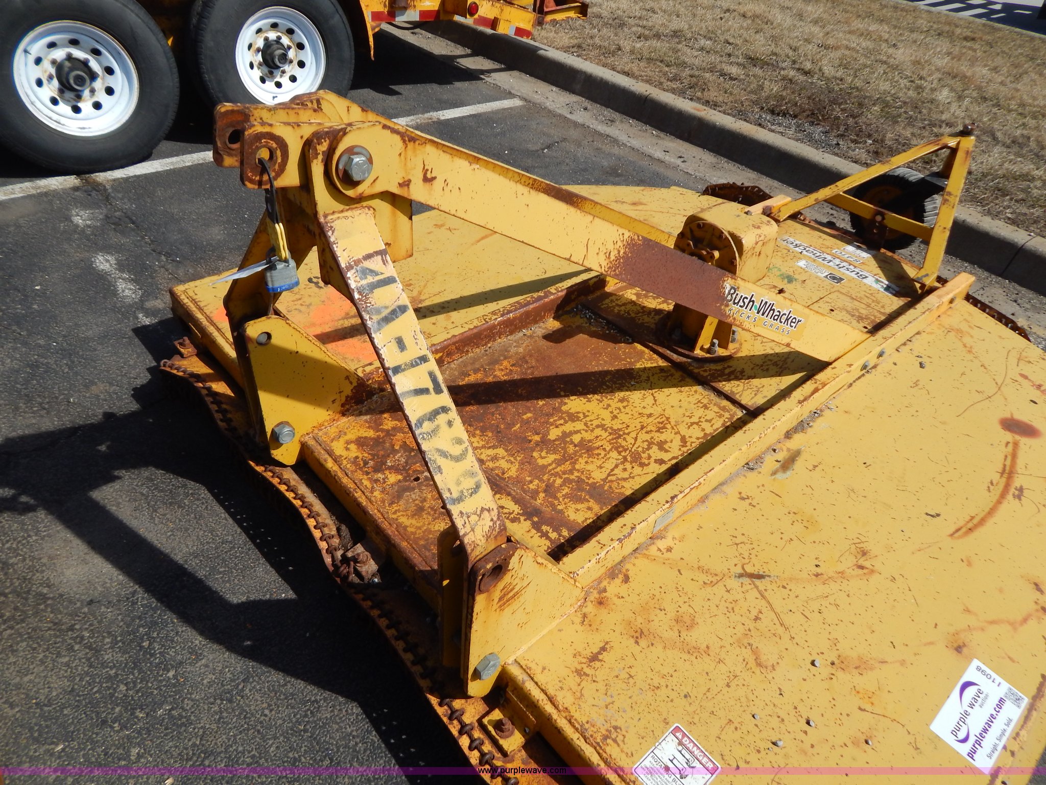 Purple Wave is selling a used Mower, Cutter, Shredder in Missouri. This item is a Bush Wacker 7' rotary mower with the following: 540 PTO, Three point, Missing PTO shaft, Unit# M1333
