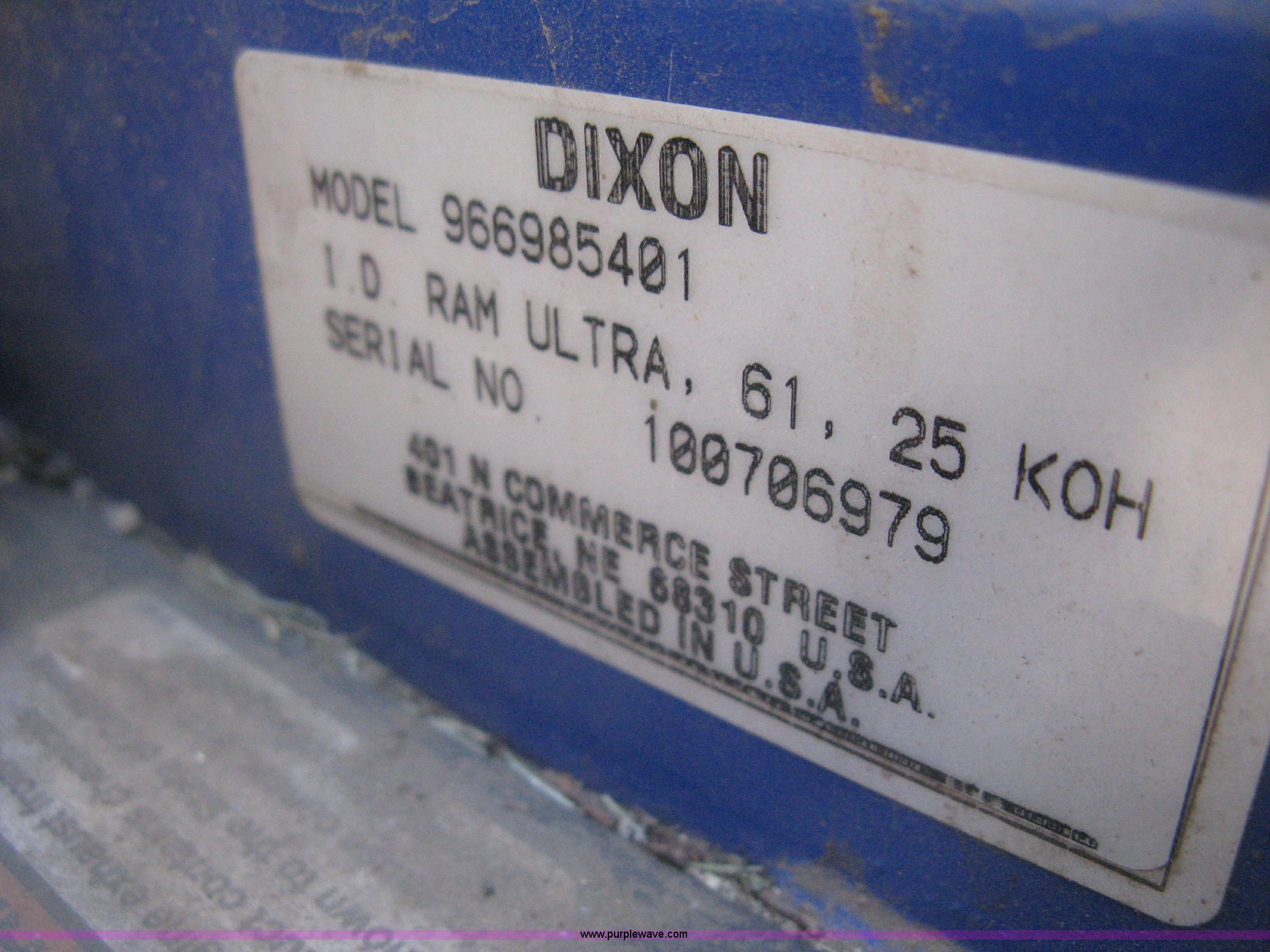 Take a look at this used Dixon Ram Ultra ZTR lawn mower being sold on April 10th, 2014 in the SOLD! April 10 Construction Equipment Auction. Take a look at all of the item information below or take a look at similar auctions for Mowers and Other Ag Equipment.