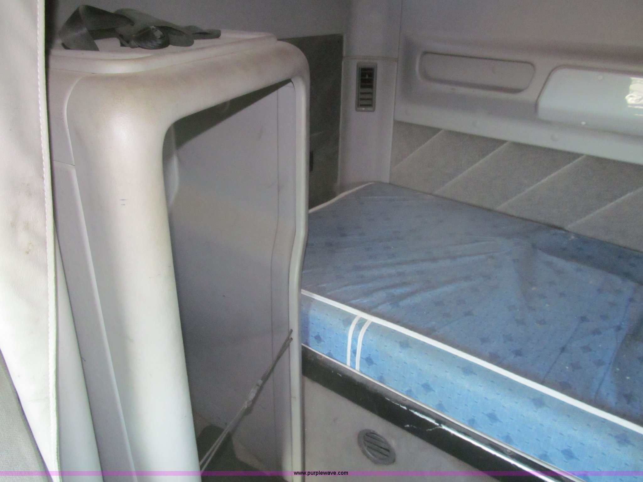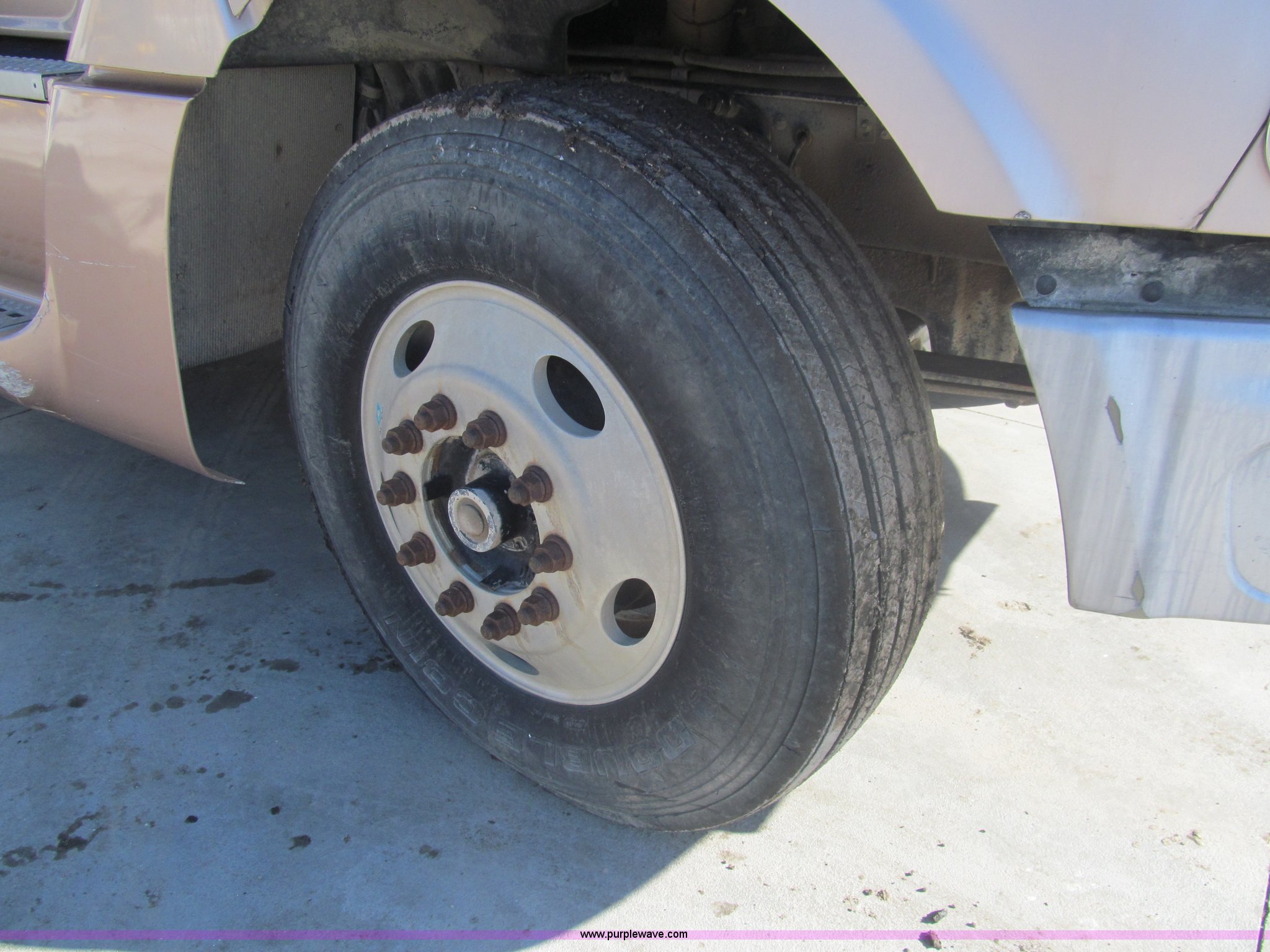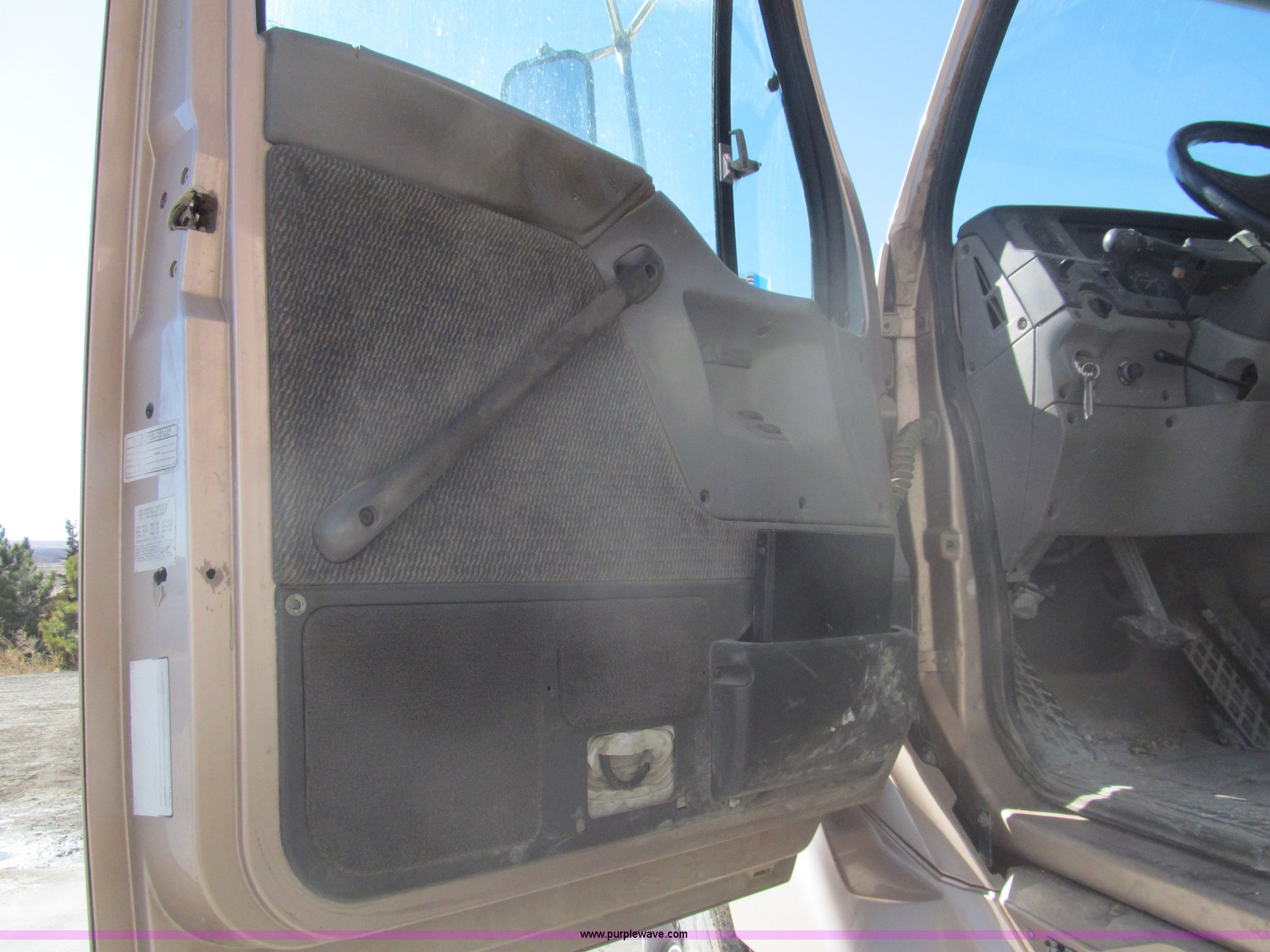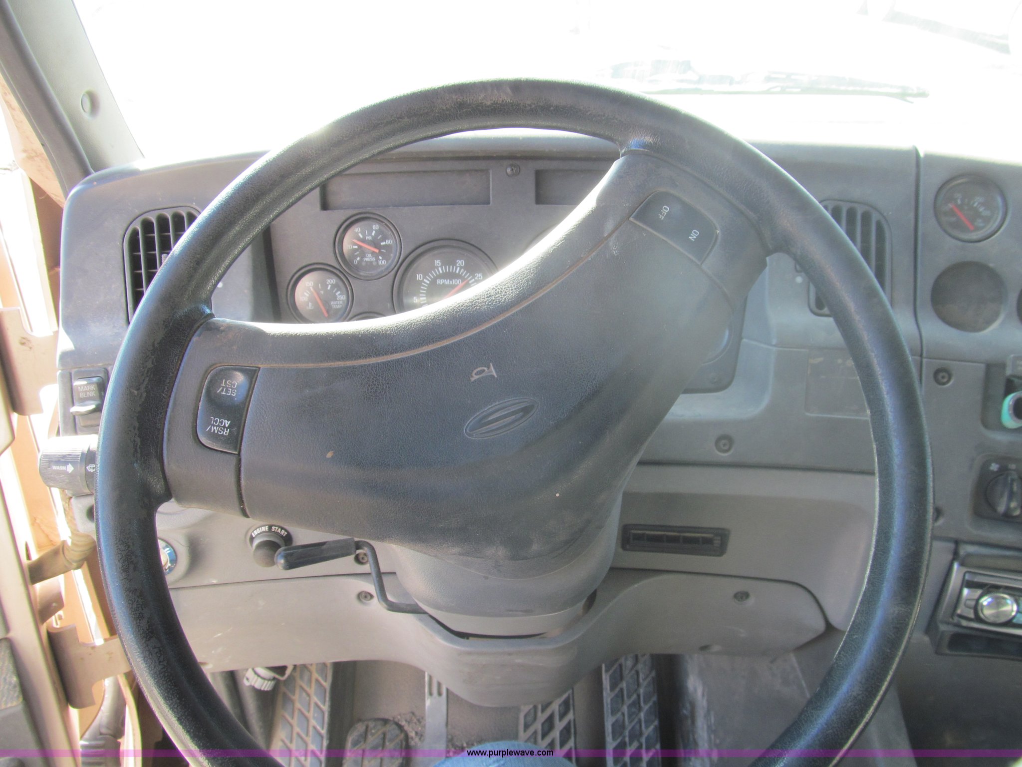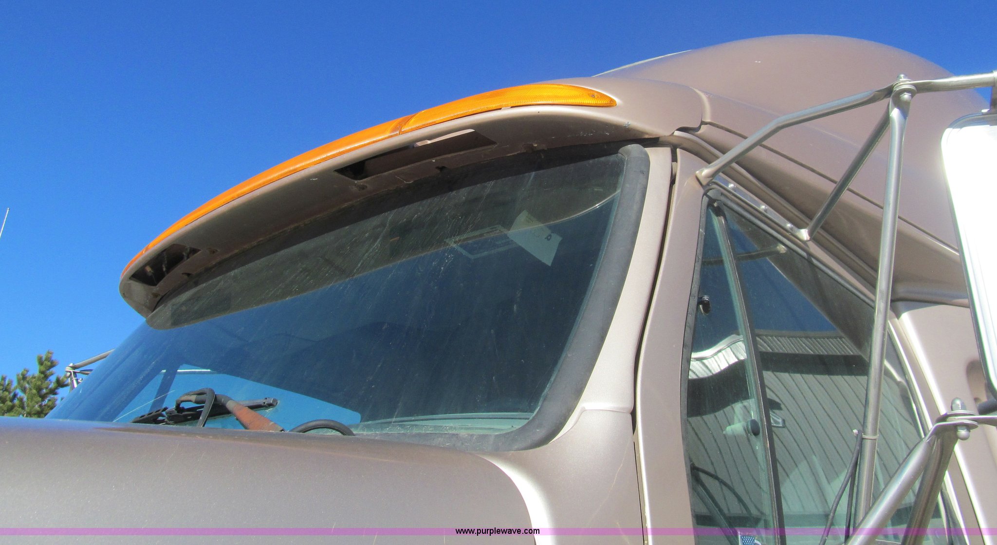 Purple Wave is selling a used Truck Tractor in Kansas. This item is a 1998 Sterling AT9522 semi truck with the following: 916,438 miles on odometer, Cummins N14 14.0L L6 diesel engine, Rockwell 10 speed manual transmission, Twin screw, AC and heat, Tilt, Cruise, AM/FM/CD, Passenger daylight door, Air suspension seat, Power windows, Heated mirrors, Visor, Air slide fifth wheel, Dual 120 gallon fuel tanks, Single rear exhaust stack, Aluminum deck plate, Full fenders, Single sleeper with storage, Dump valves, Air suspension, Air brakes, Jake brake, GVWR 52,000 lbs, FAWR 12,000 lbs, IAWR 20,000 lbs, RAWR 20,000 lbs, 275/80R22.5 tires, 232" wheel base, Exterior cosmetic damage