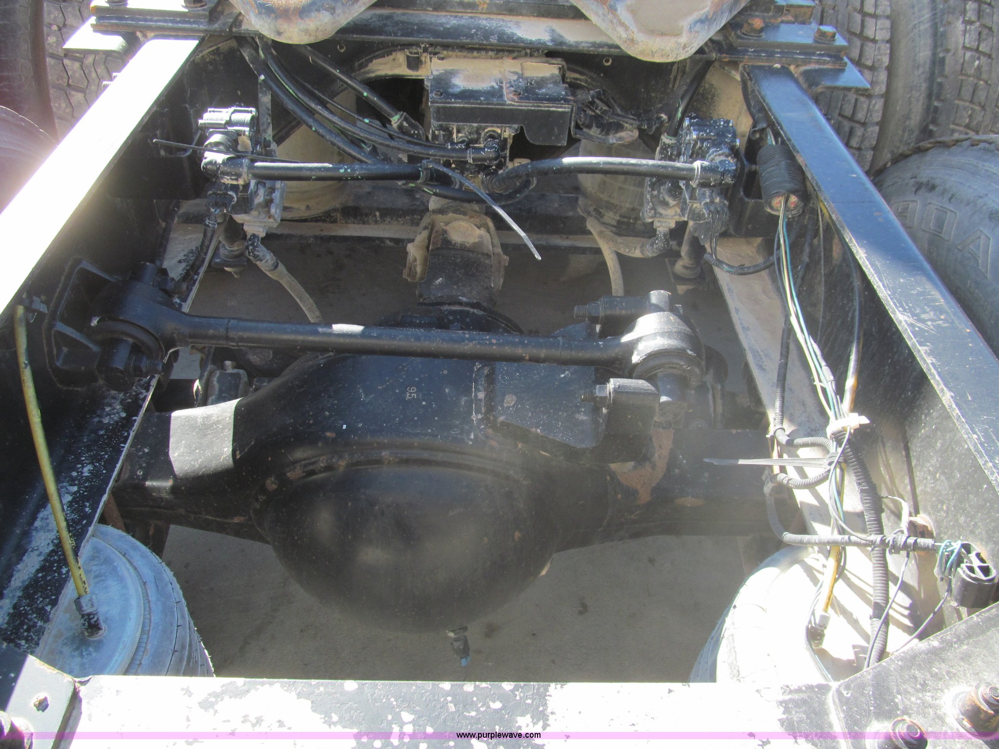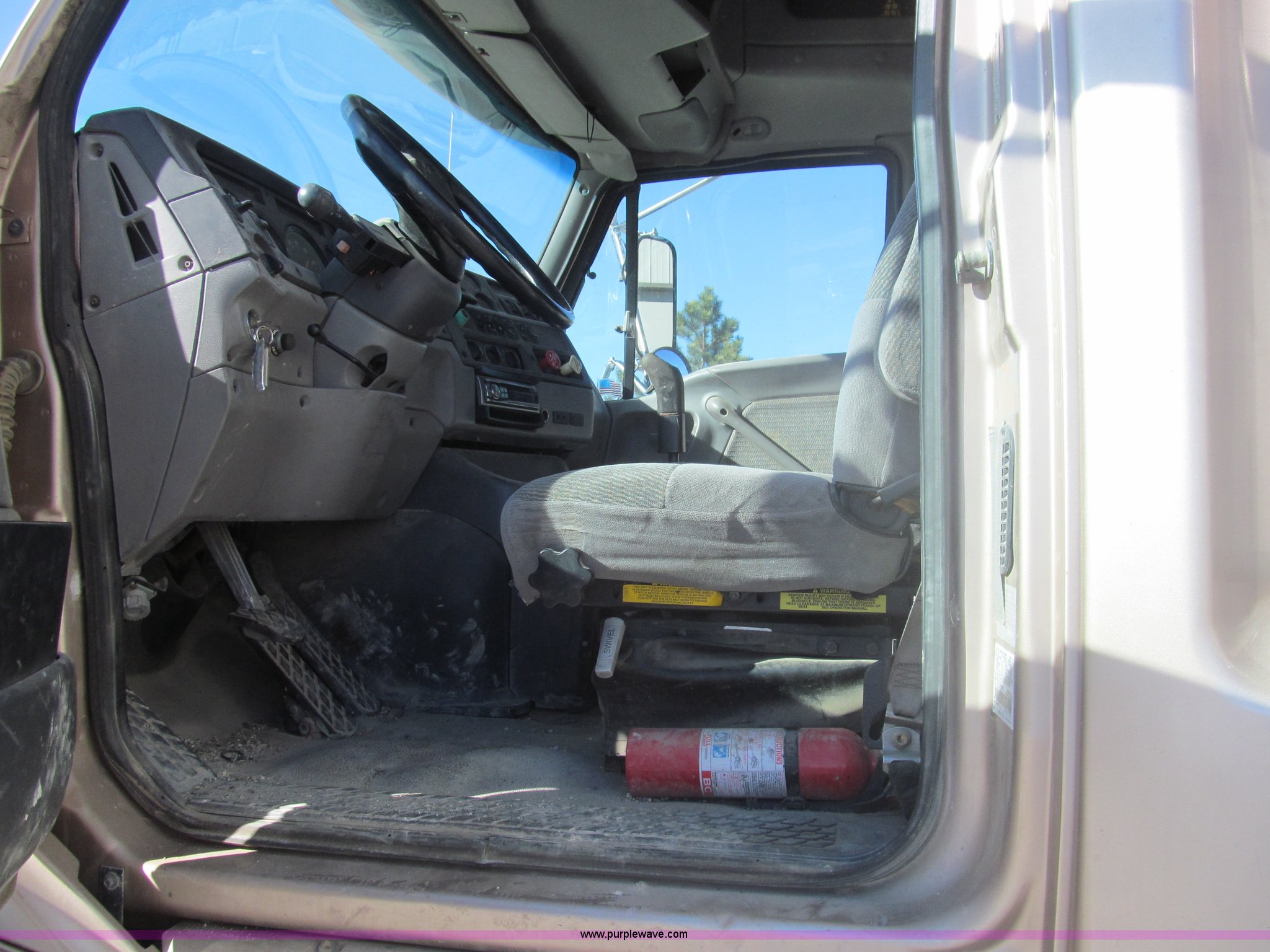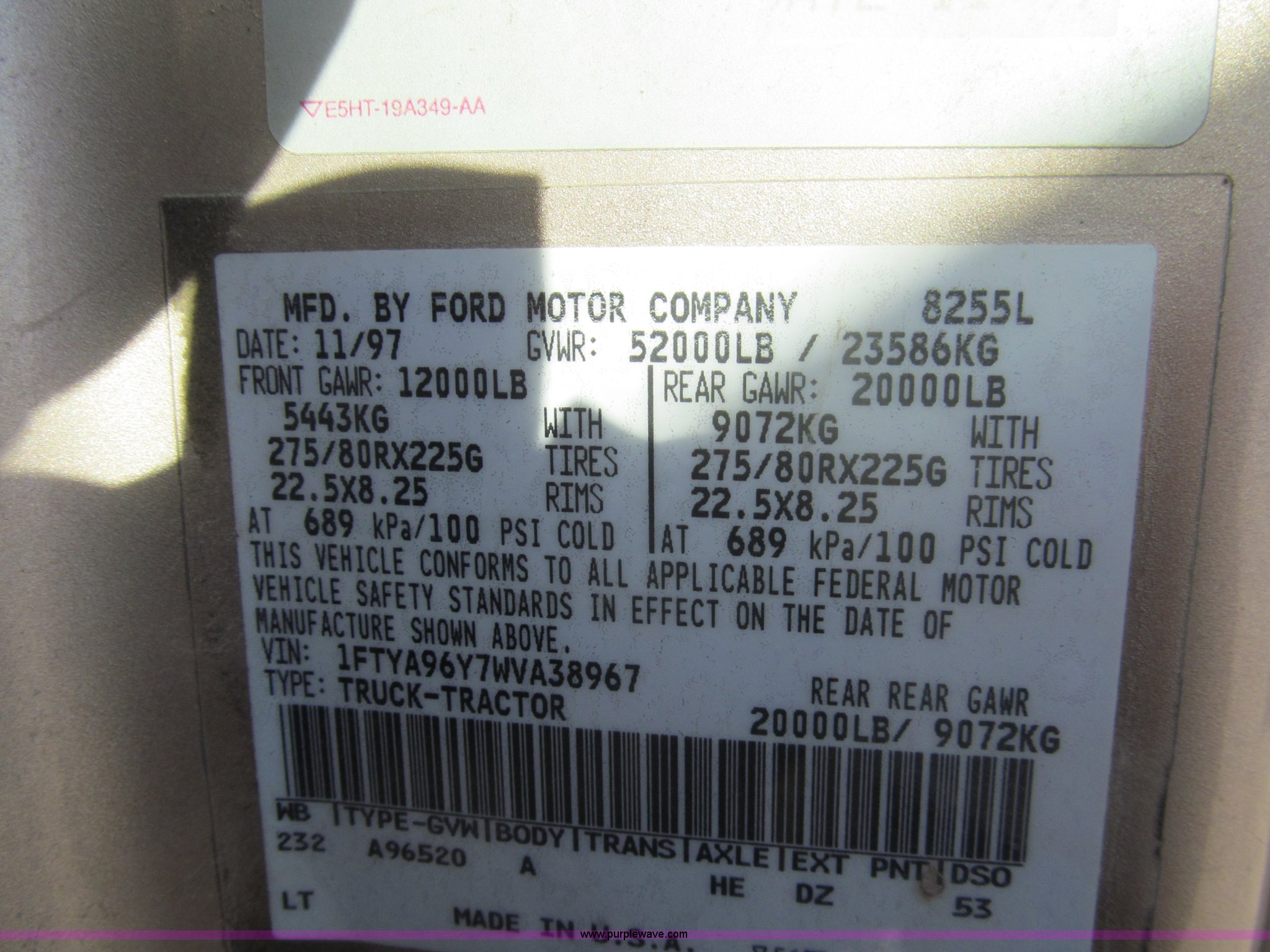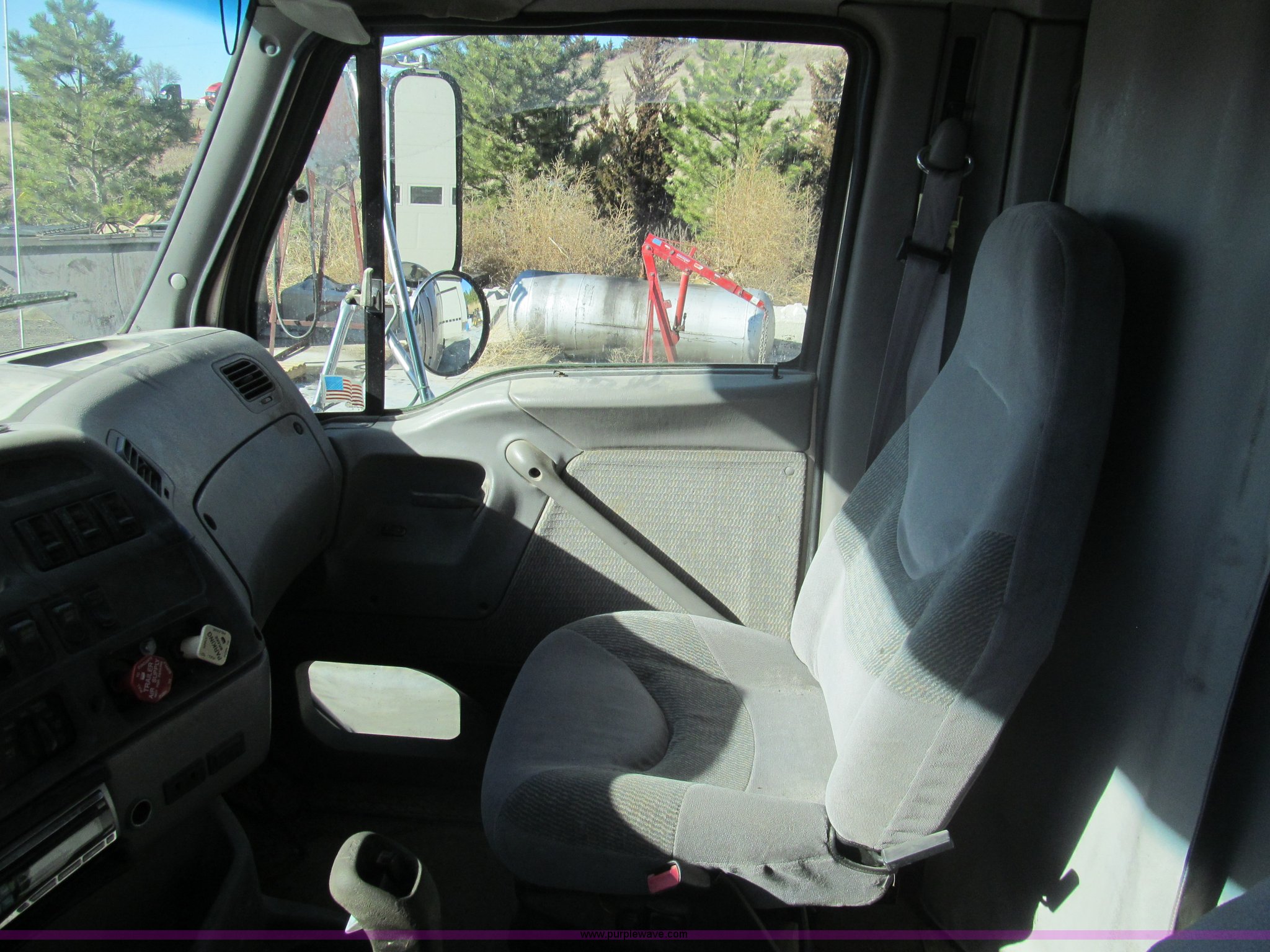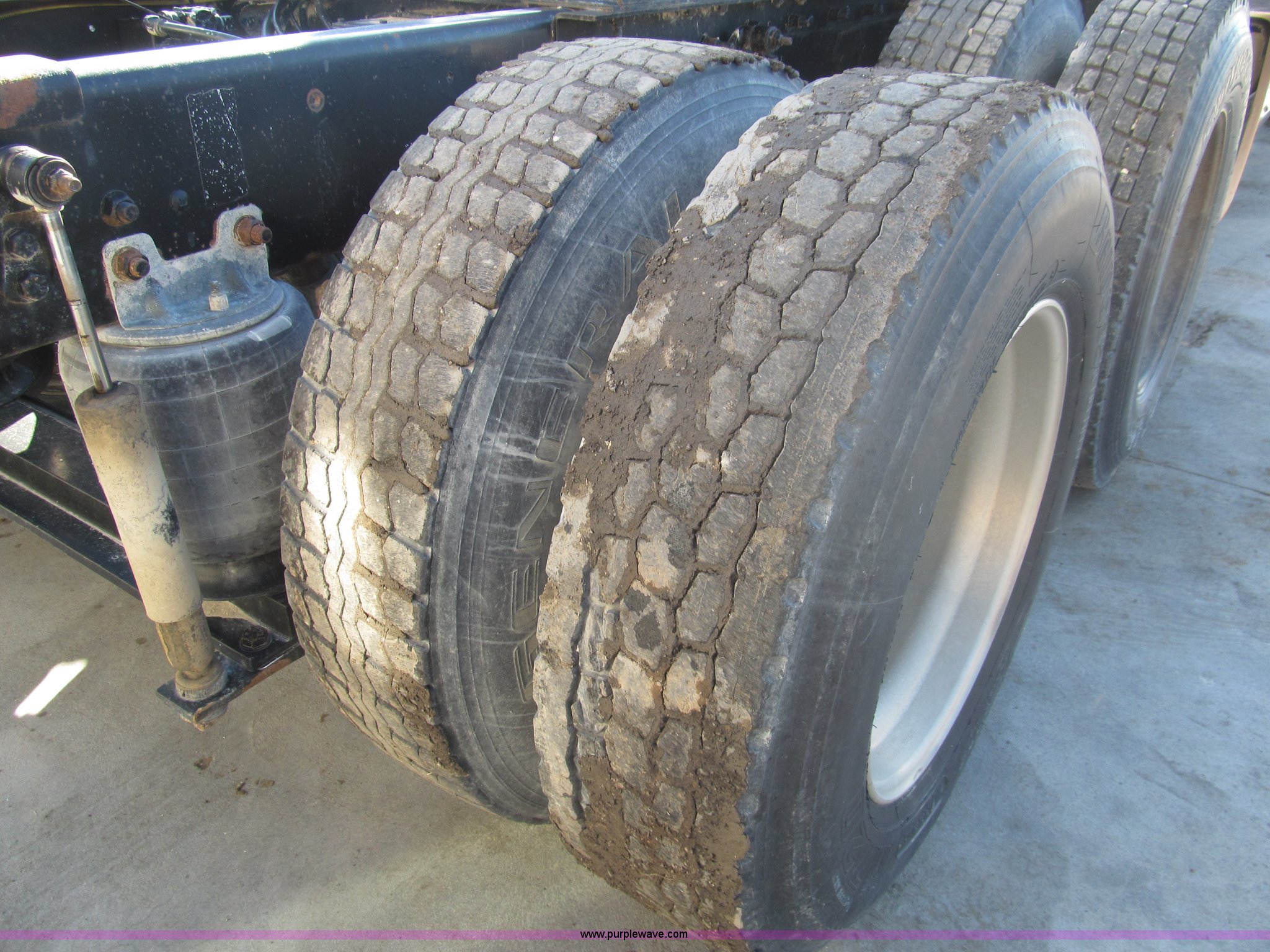 Purple Wave is selling a used Truck Tractor in Kansas. This item is a 1998 Sterling AT9522 semi truck with the following: 916,438 miles on odometer, Cummins N14 14.0L L6 diesel engine, Rockwell 10 speed manual transmission, Twin screw, AC and heat, Tilt, Cruise, AM/FM/CD, Passenger daylight door, Air suspension seat, Power windows, Heated mirrors, Visor, Air slide fifth wheel, Dual 120 gallon fuel tanks, Single rear exhaust stack, Aluminum deck plate, Full fenders, Single sleeper with storage, Dump valves, Air suspension, Air brakes, Jake brake, GVWR 52,000 lbs, FAWR 12,000 lbs, IAWR 20,000 lbs, RAWR 20,000 lbs, 275/80R22.5 tires, 232" wheel base, Exterior cosmetic damage