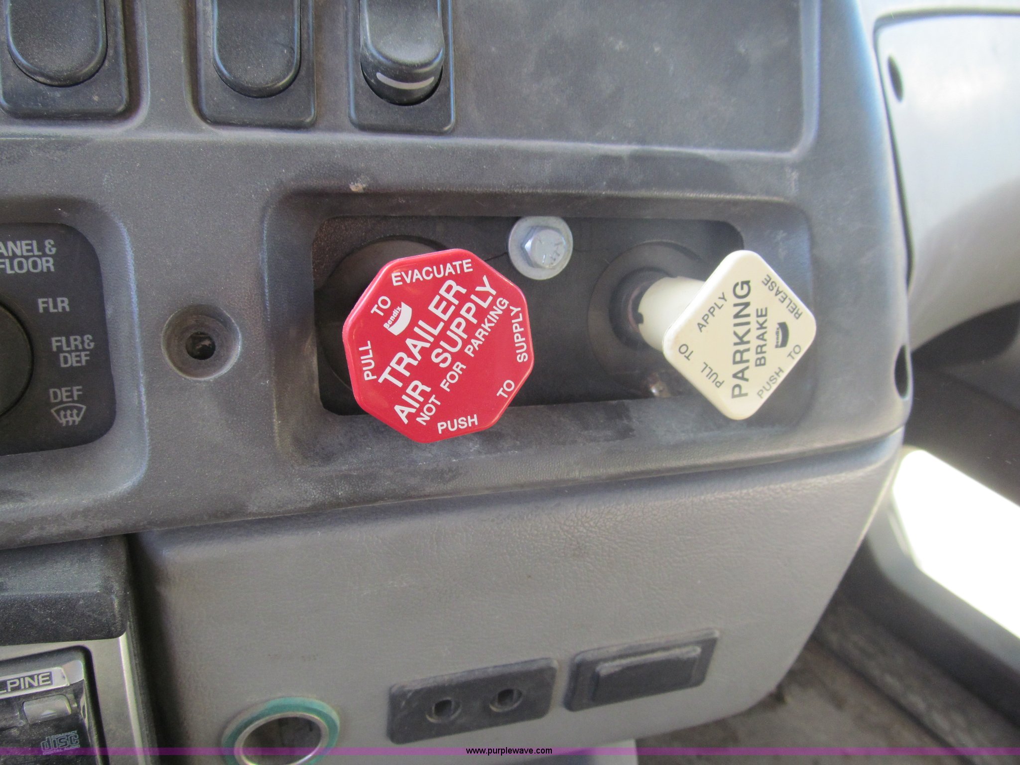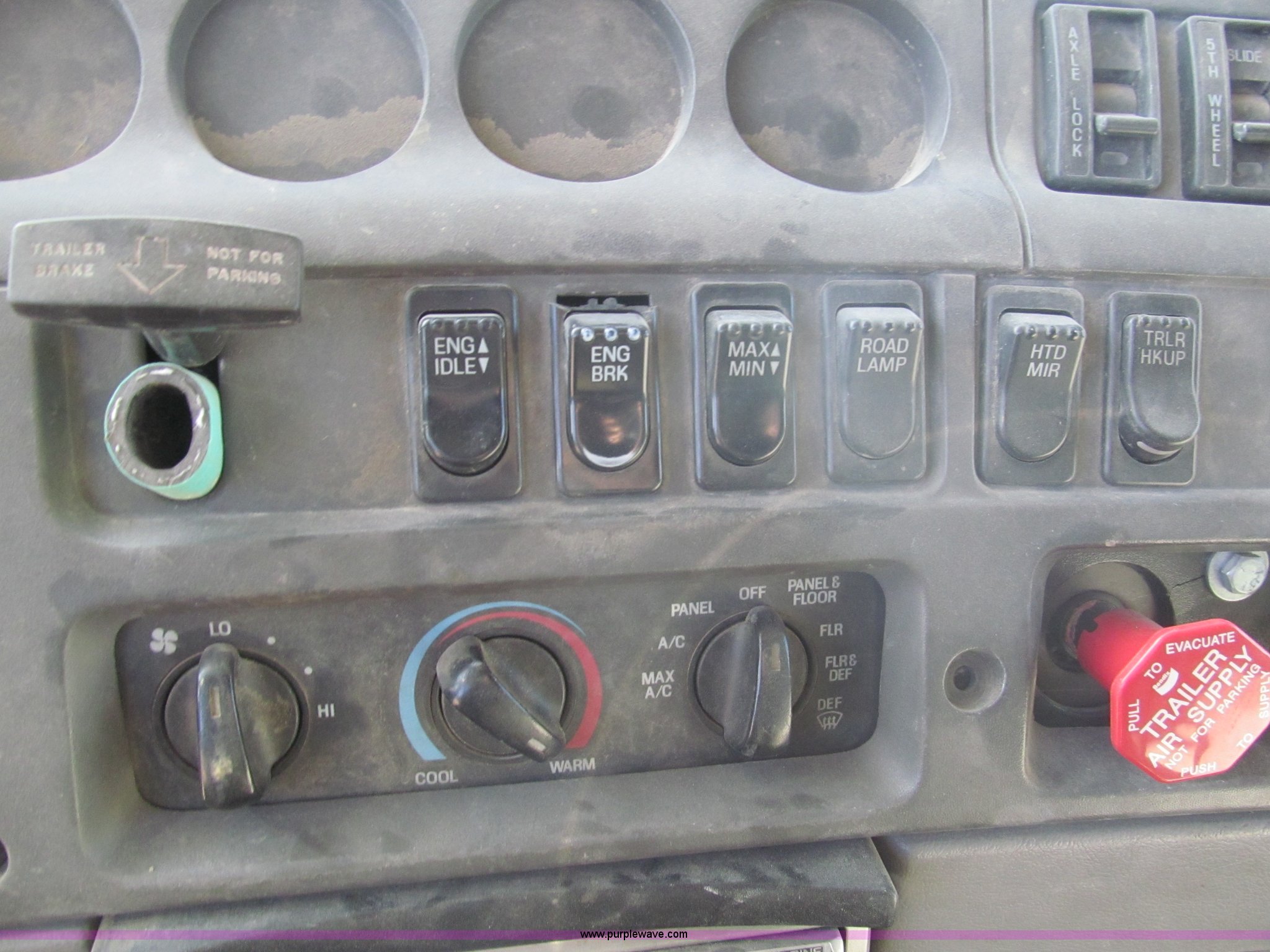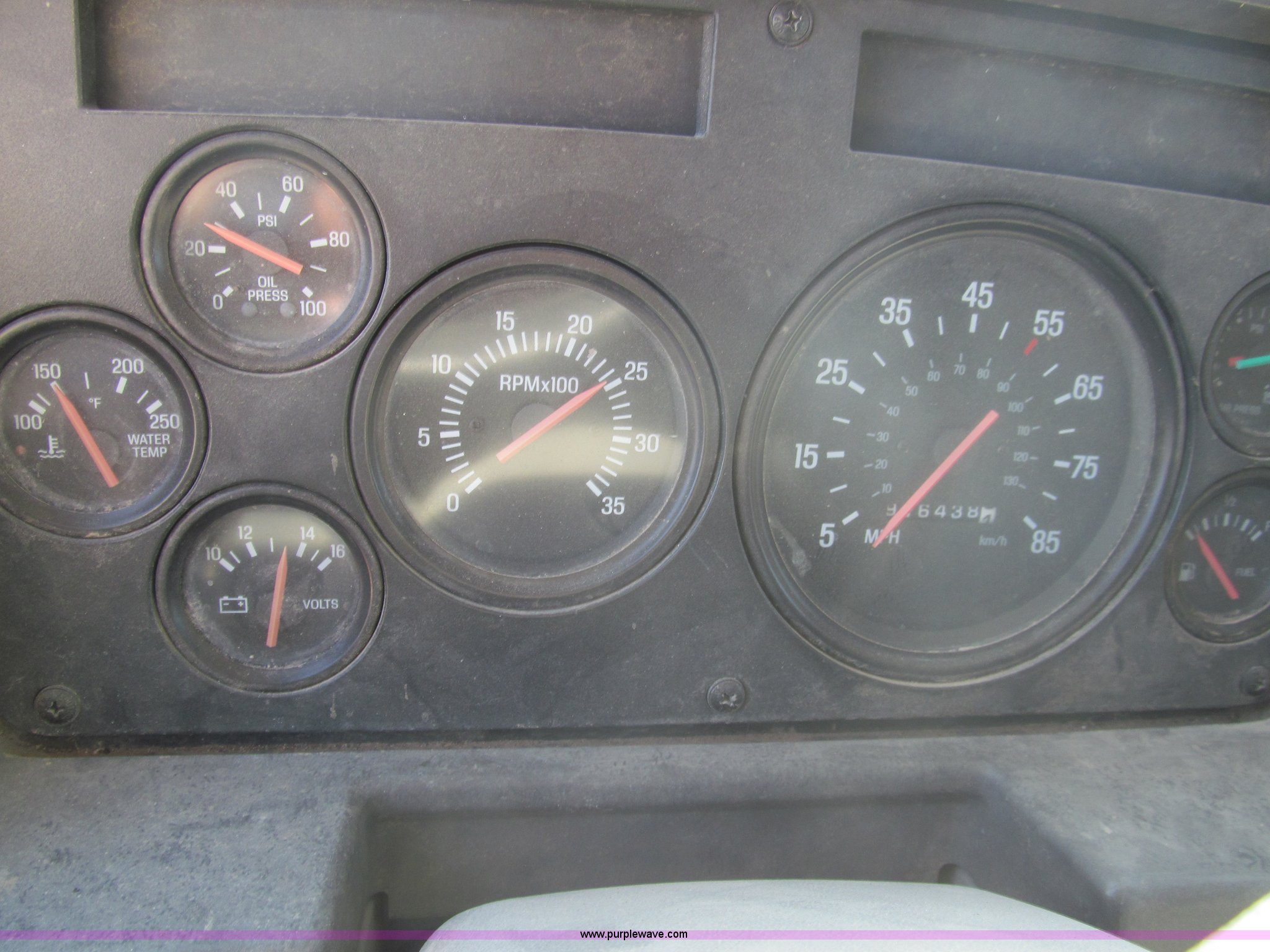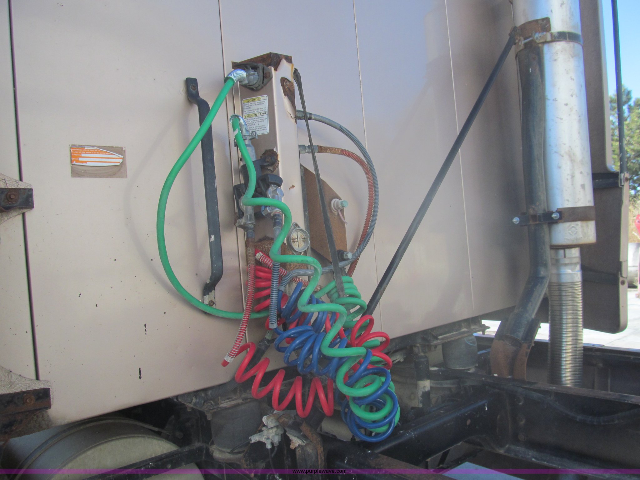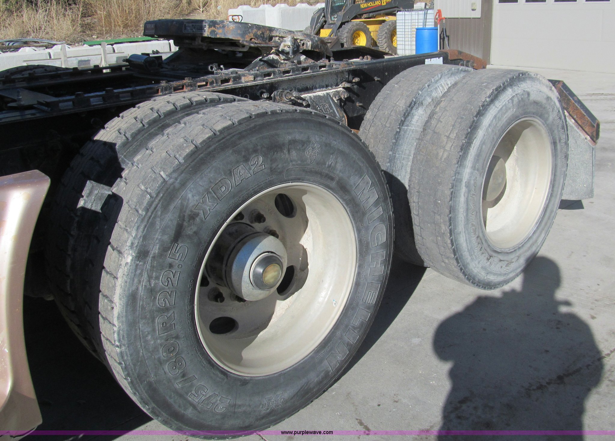 Purple Wave is selling a used Truck Tractor in Kansas. This item is a 1998 Sterling AT9522 semi truck with the following: 916,438 miles on odometer, Cummins N14 14.0L L6 diesel engine, Rockwell 10 speed manual transmission, Twin screw, AC and heat, Tilt, Cruise, AM/FM/CD, Passenger daylight door, Air suspension seat, Power windows, Heated mirrors, Visor, Air slide fifth wheel, Dual 120 gallon fuel tanks, Single rear exhaust stack, Aluminum deck plate, Full fenders, Single sleeper with storage, Dump valves, Air suspension, Air brakes, Jake brake, GVWR 52,000 lbs, FAWR 12,000 lbs, IAWR 20,000 lbs, RAWR 20,000 lbs, 275/80R22.5 tires, 232" wheel base, Exterior cosmetic damage