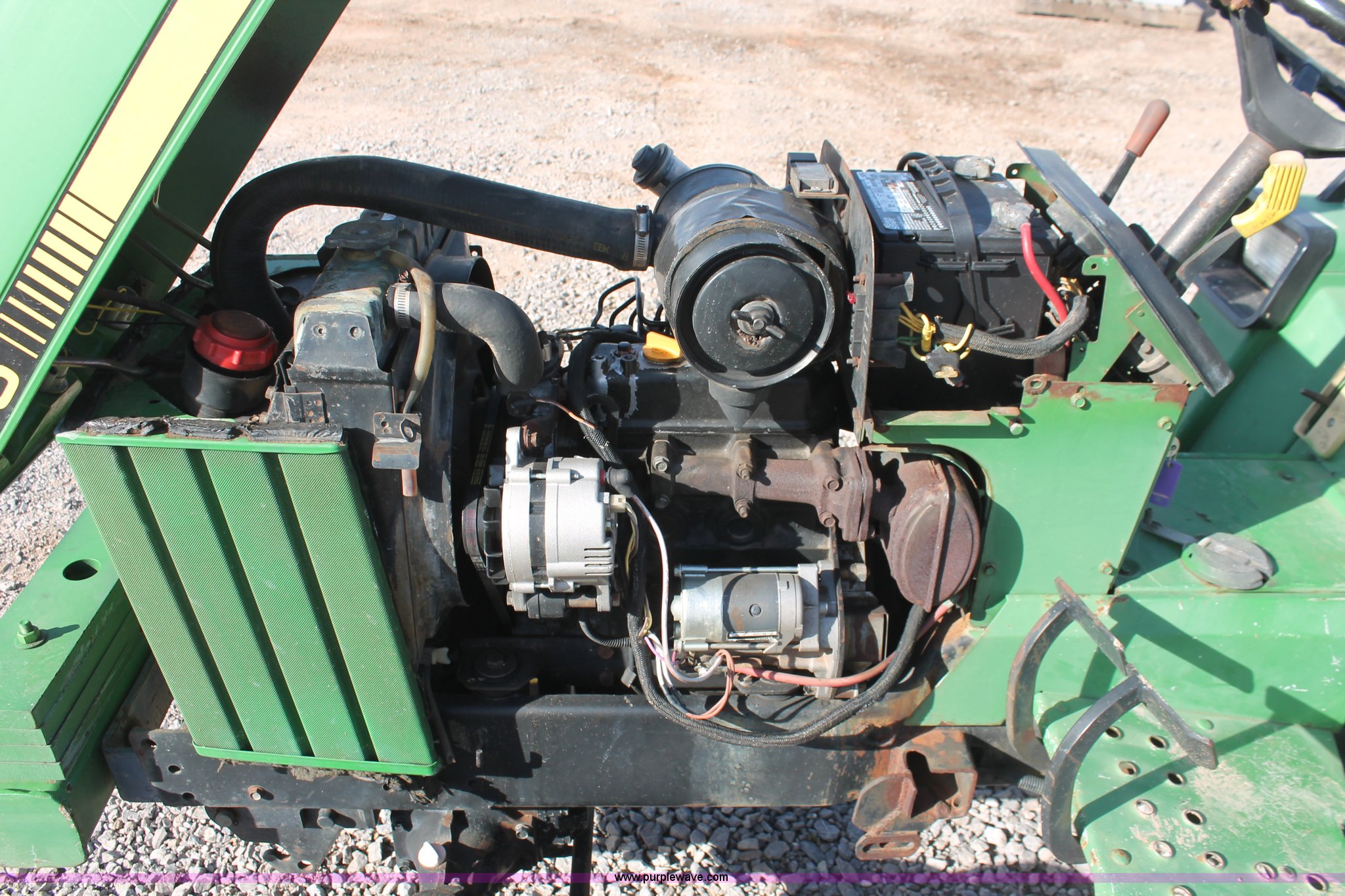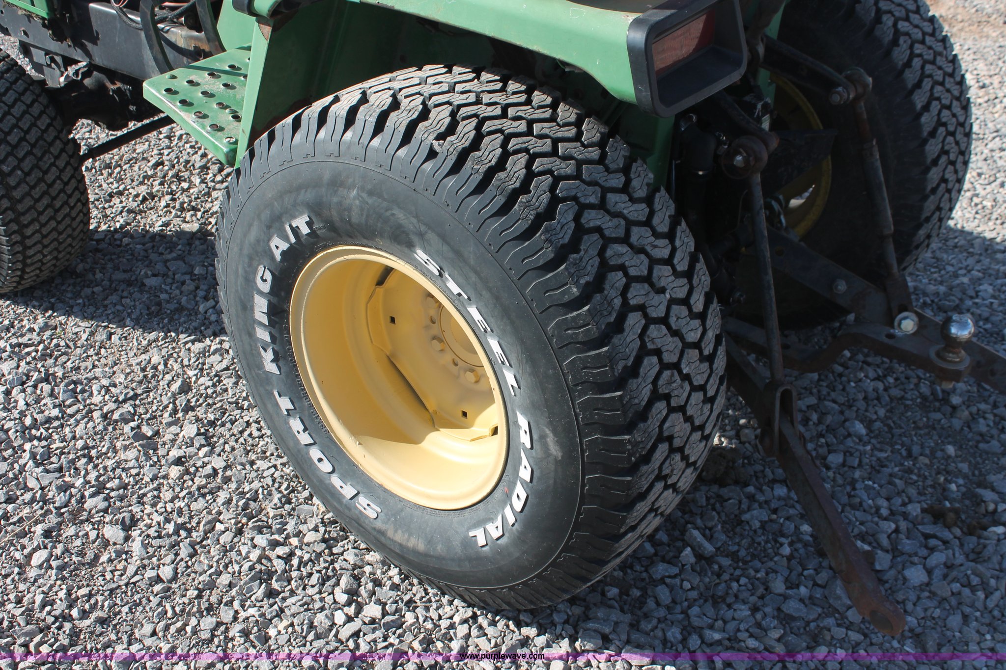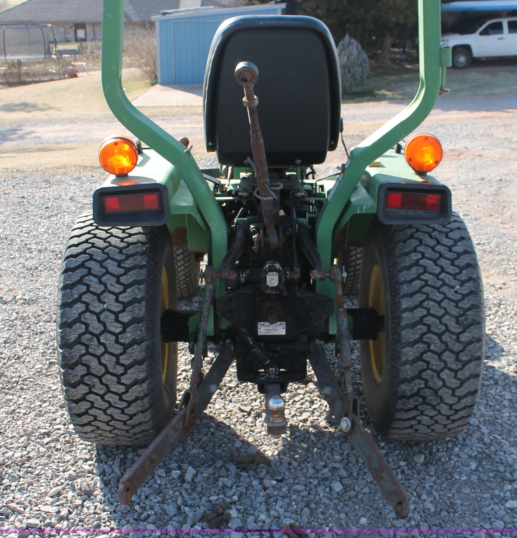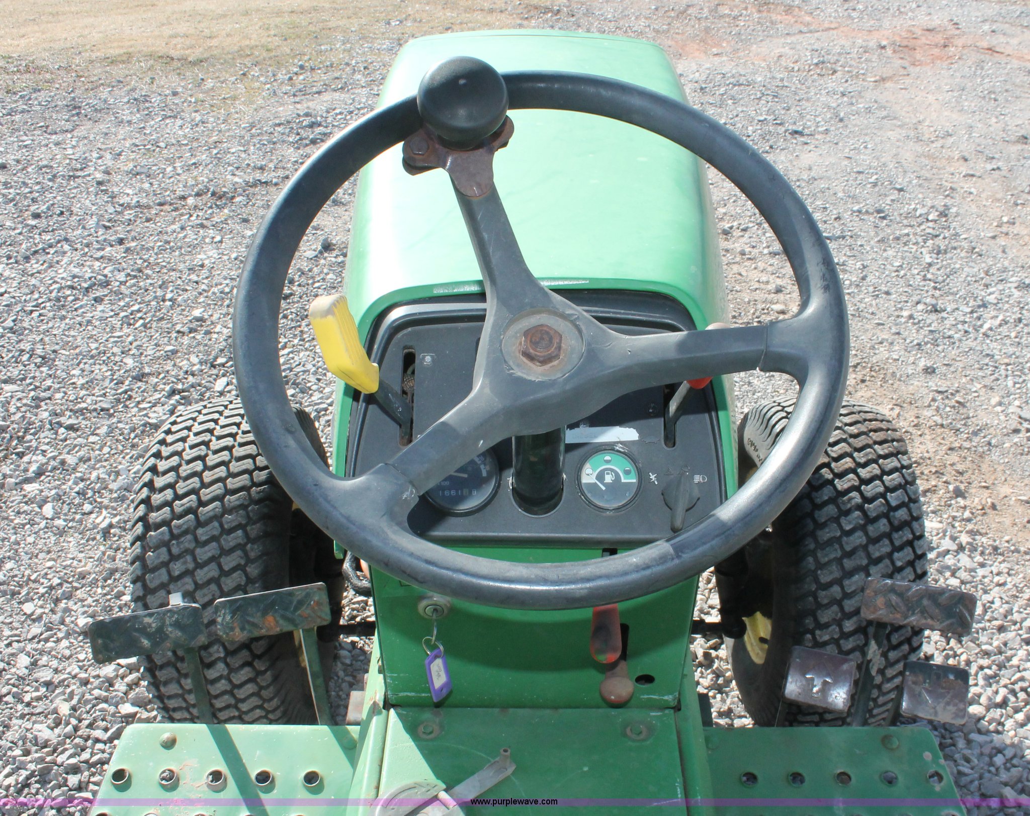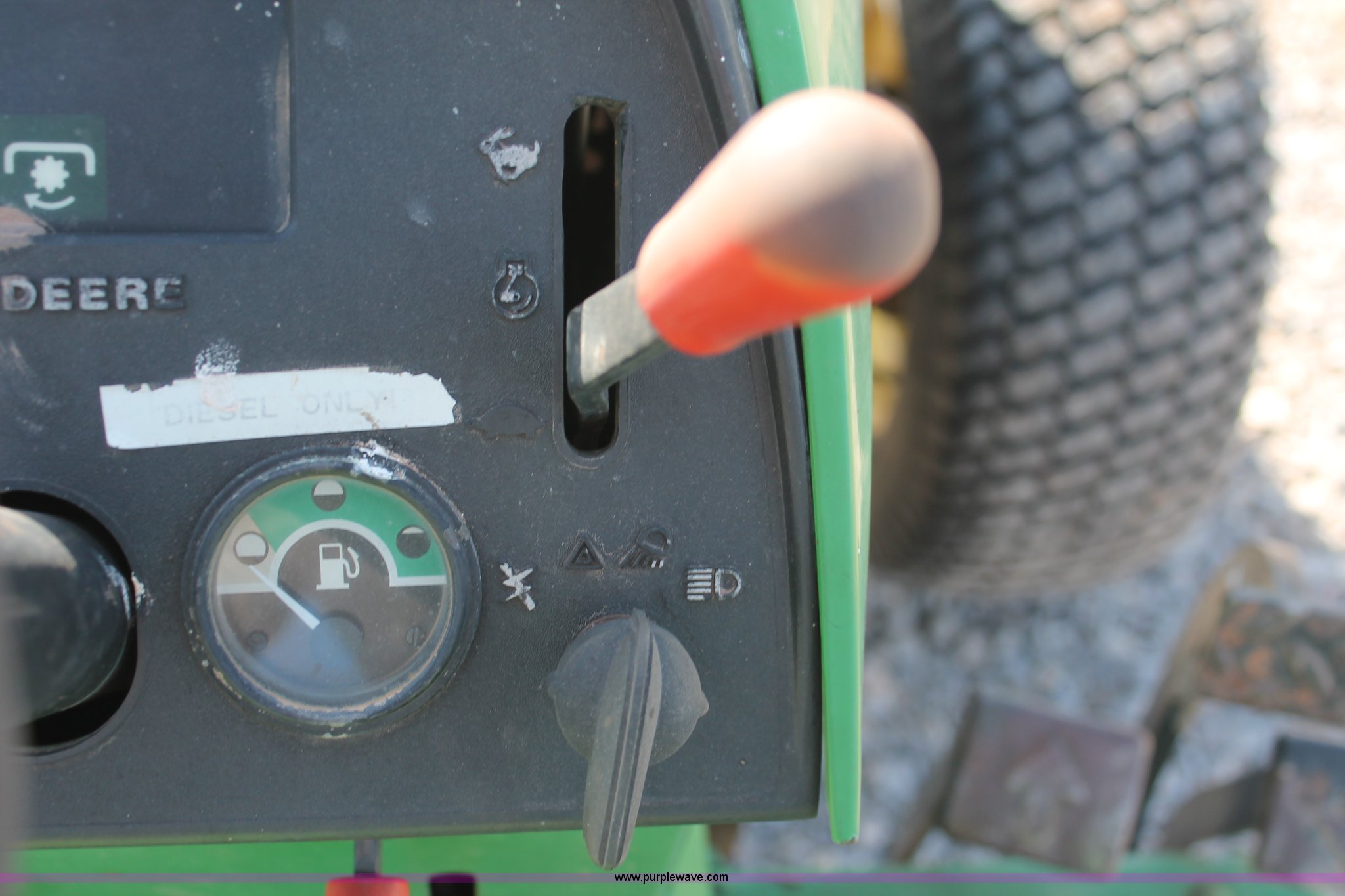 Purple Wave is selling a used Tractor in Oklahoma. This item is a 1988 John Deere 755 MFWD tractor with the following: 1,661 hours on meter, Yanmar three cylinder diesel engine, 20 HP, Hydrostatic transmission, Differential lock, ROPS bar, Spring suspension seat, Three point, Draw bar, 540 PTO, 2" ball, (4) front suitcase weights, 57" wheelbase, 23x9.50-12 front tires, 33x12.50R15 rear tires, Instructor's manual included, 4.4 gallon fuel tank, Serial M00755D530171