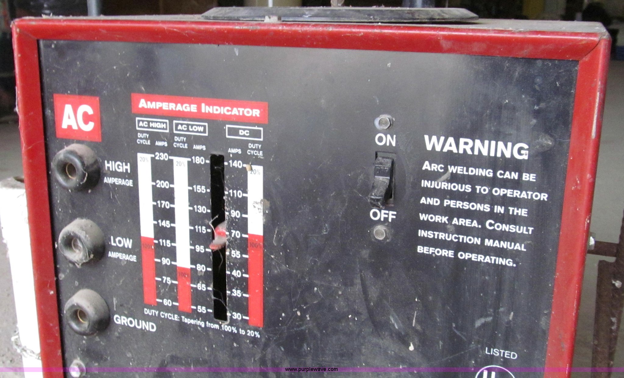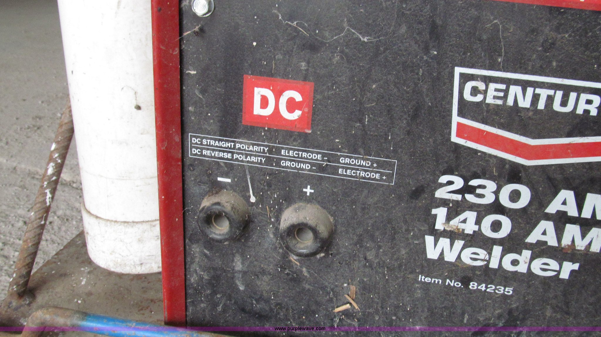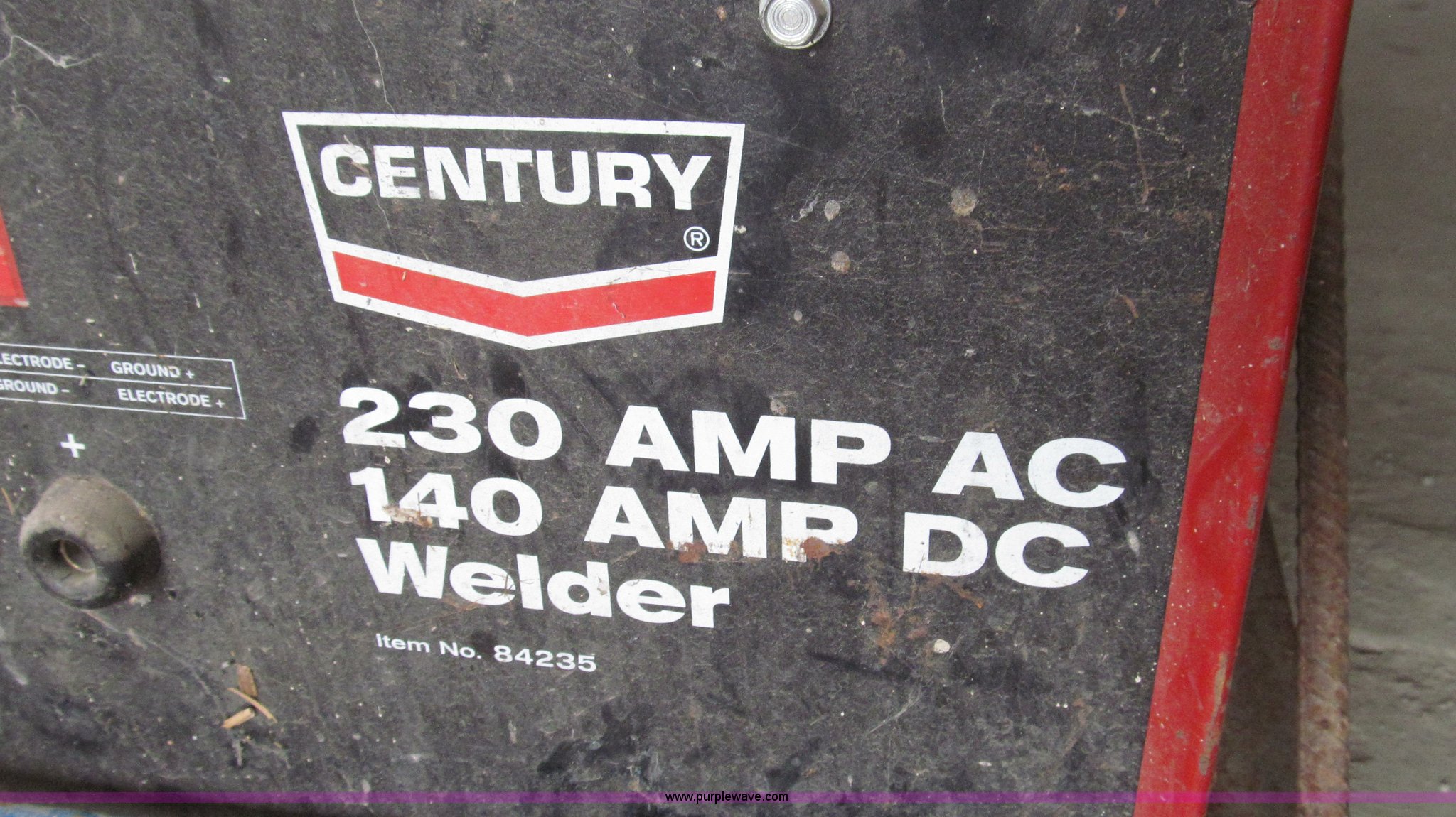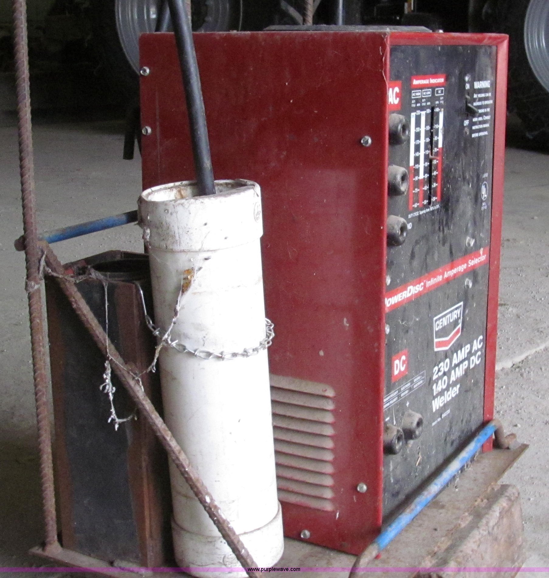 Purple Wave is selling a used Welder (Manual) in Missouri. This item is a Century AC/DC arc welder with the following: 230 amp AC, 140 amp DC, AC high-low-ground lead plug, DC positive and negative lead plug, Power selector, No leads, Metal rack, Serial F494936