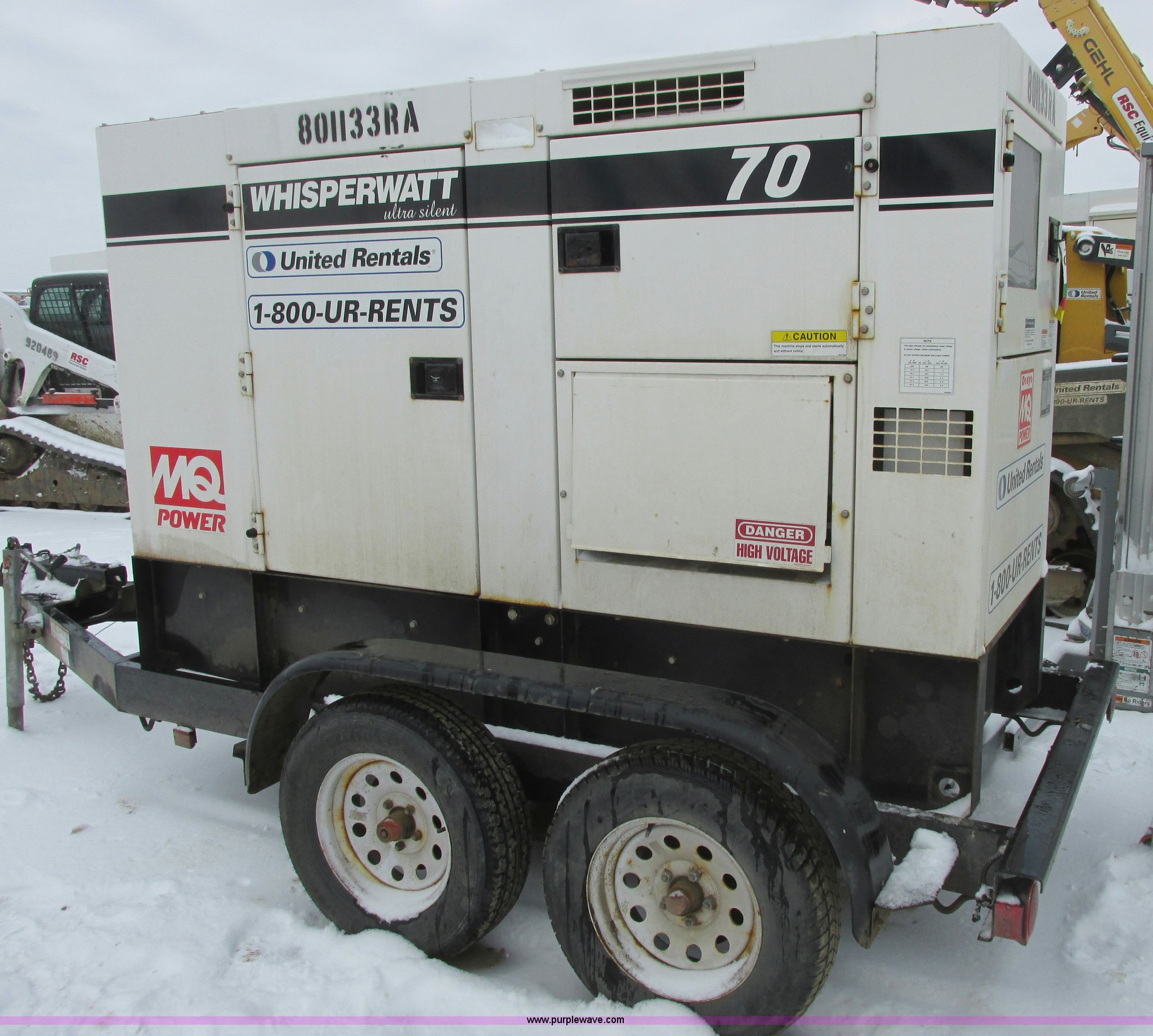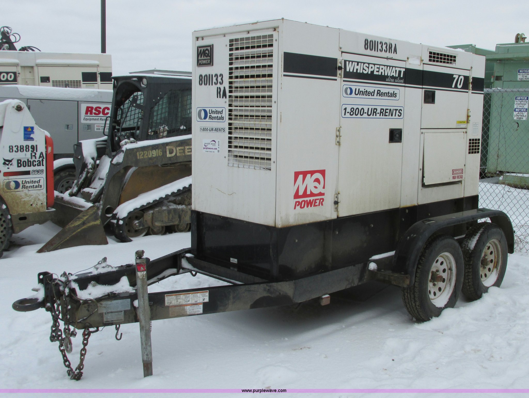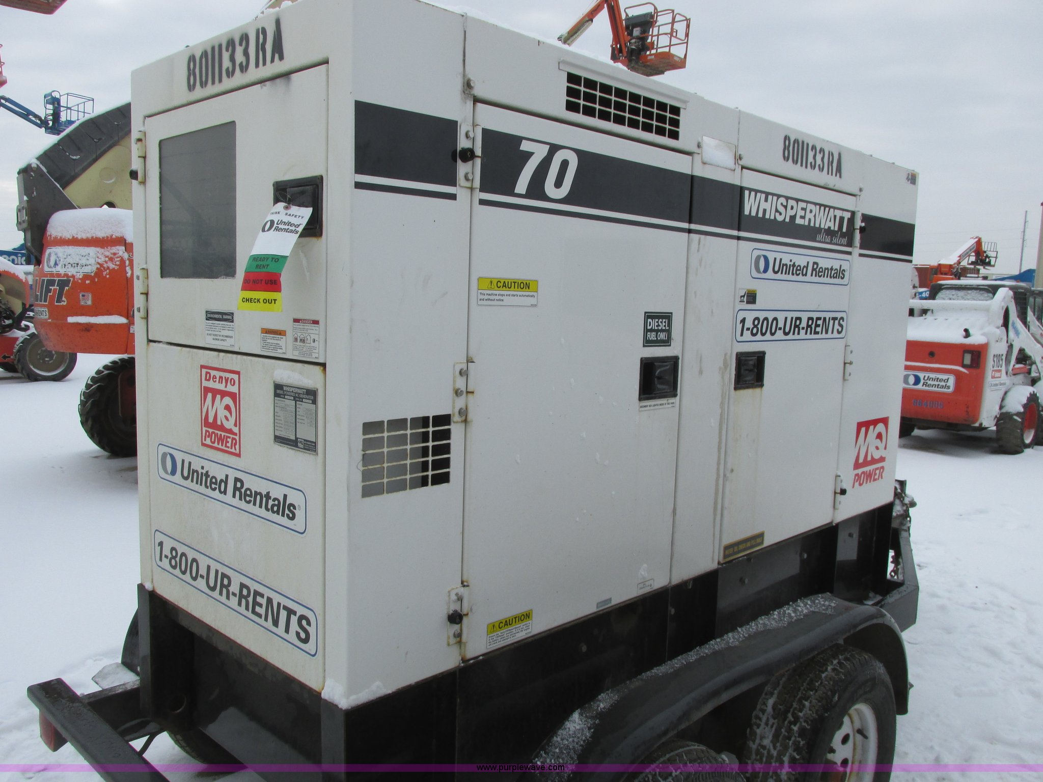 2010 Multiquip DCA70USI2C generator. 11,000 hours on meter, Isuzu 4JJ1X diesel engine 87 HP, 56 kW output Three phase, 40 kW output Single phase, Denco AC generator, Pintle hitch, 103 gallon fuel tank, Torsion suspension, Surge brakes, ST205/75R15 tires, Engine is inoperable Blows smoke out of exhaust , Slight miss, May have a broken oil ring , Burns oil, Serial 8801532, EIN 801133RA. View item removal requirement and like-kind exchange information. United Rentals - Williston. 14031 Bennet Loop. Williston, ND 58801