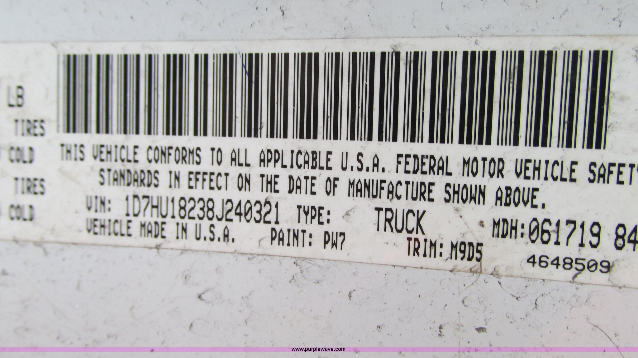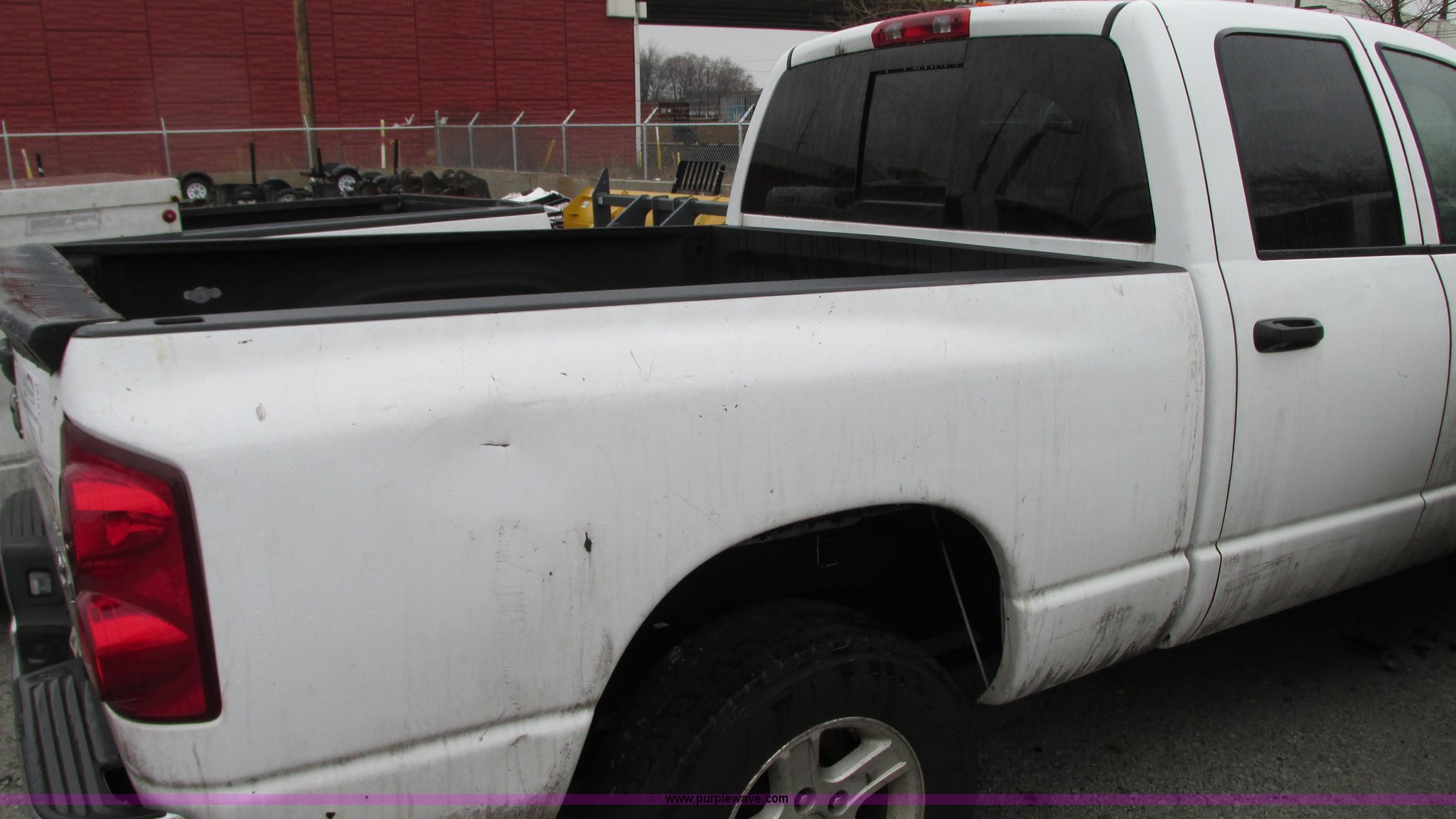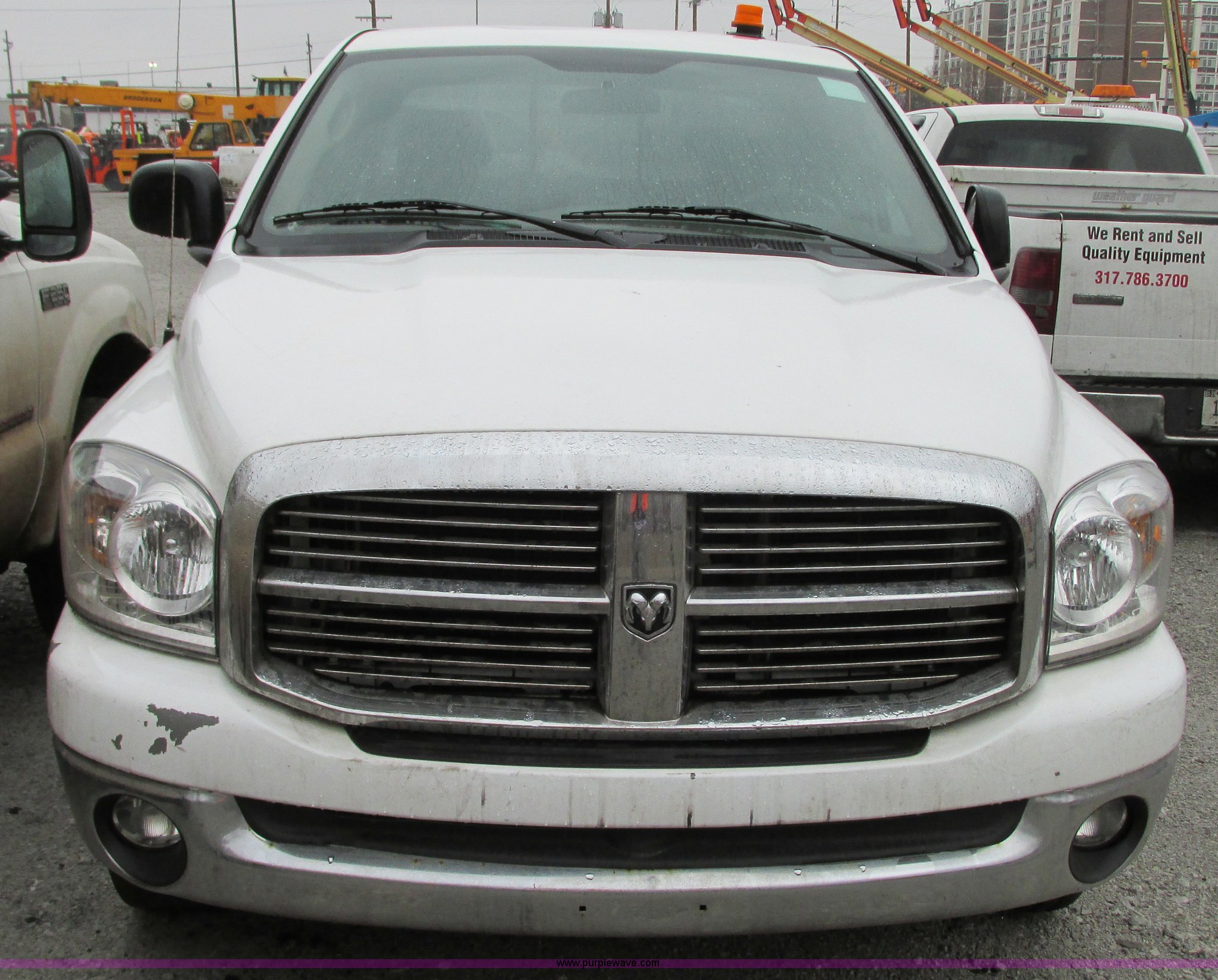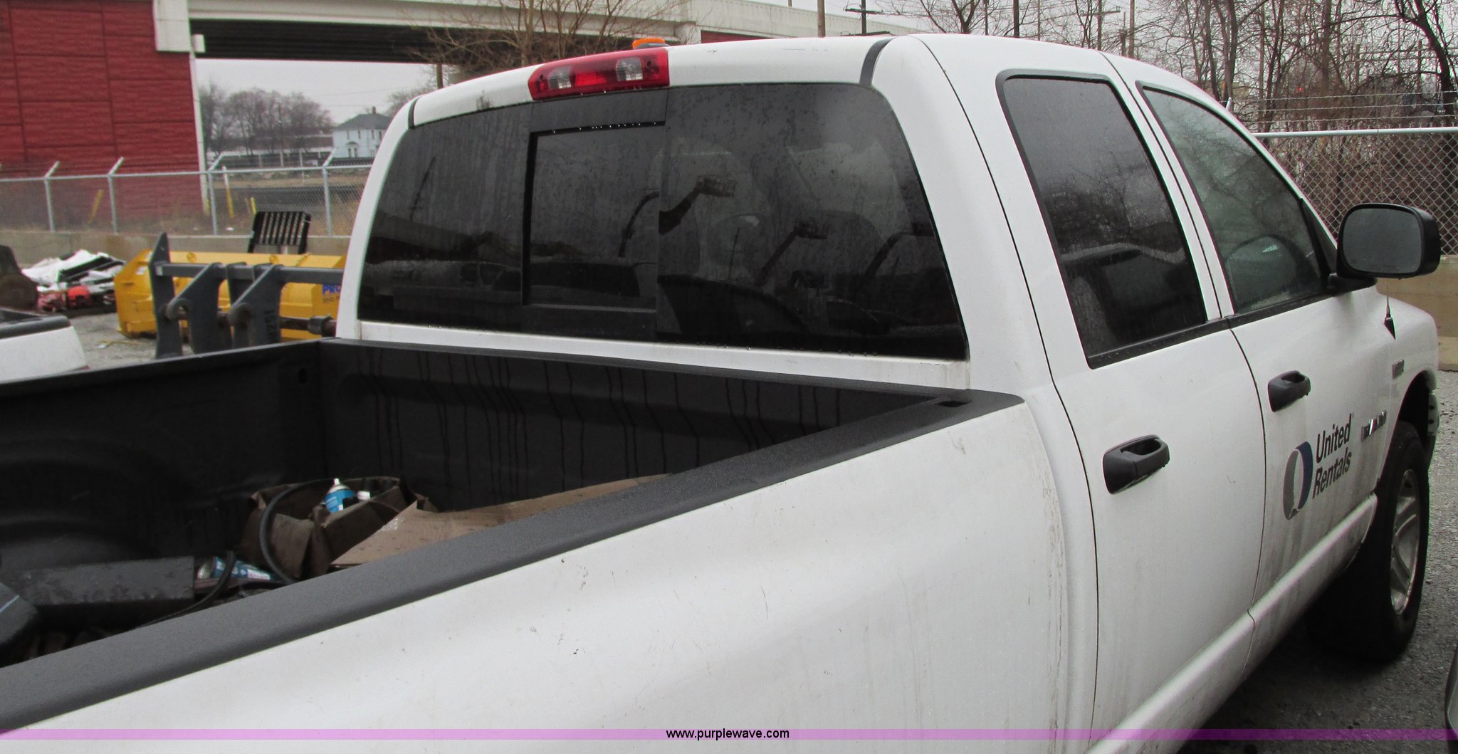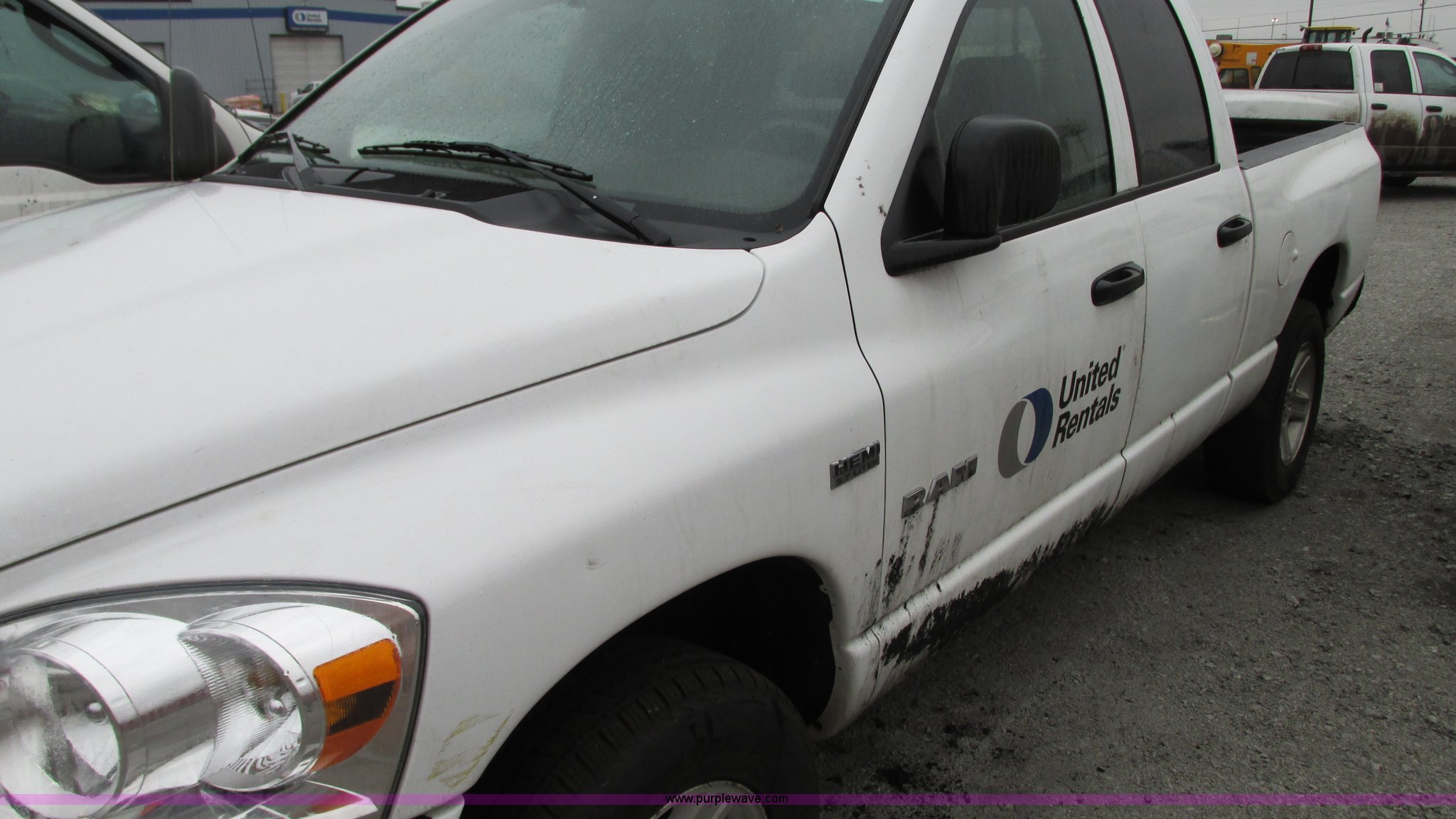 2008 Dodge Ram 1500 Quad Cab pickup truck. Unknown miles on odometer, 5.7L V8 OHV 16V gas engine, Automatic transmission, Four wheel drive, AC and heat, Tilt, Cruise, AM/FM/CD, Power windows, locks, mirrors, and driver seat, Cloth interior, Spray-in bed liner, Receiver hitch, Trailer wiring, 265/70R17 tires, Interior/exterior cosmetic damage, Oil/grease on floor board, Engine needs replaced, will not run, EIN 1089118. View item removal requirement and like-kind exchange information. 1D7HU18238J240321. United Rentals - East Chicago. 300 W Chicago Ave. East Chicago, IN 46312
