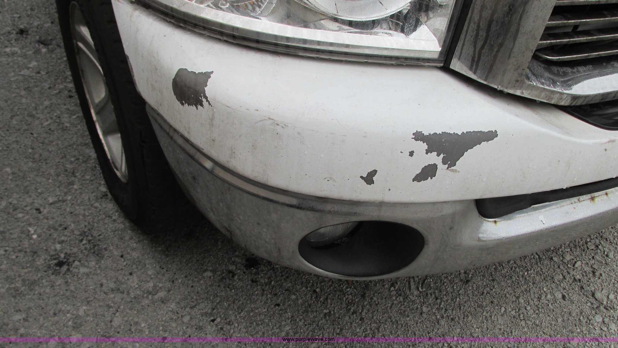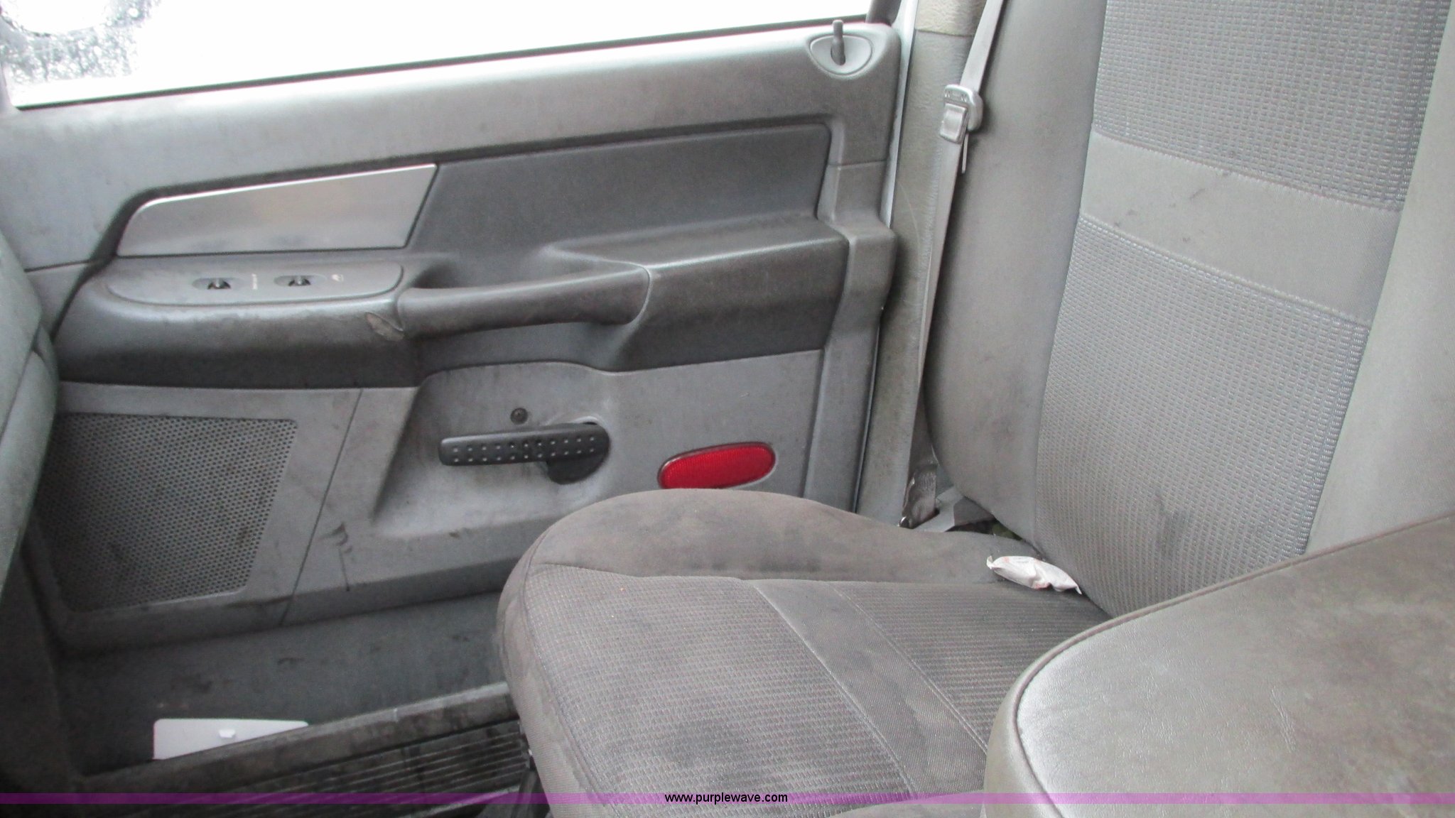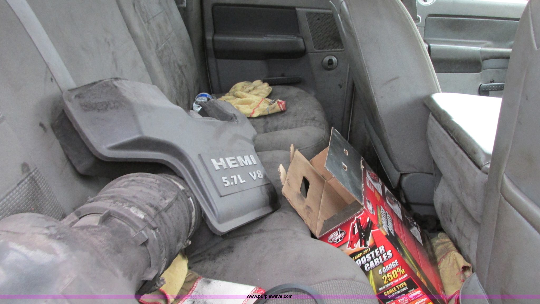 Purple Wave is selling a used Passenger Vehicle in Indiana. This item is a 2008 Dodge Ram 1500 Quad Cab pickup truck with the following: Unknown miles on odometer, 5.7L V8 OHV 16V gas engine, Automatic transmission, Four wheel drive, AC and heat, Tilt, Cruise, AM/FM/CD, Power windows, locks, mirrors, and driver seat, Cloth interior, Spray-in bed liner, Receiver hitch, Trailer wiring, 265/70R17 tires, Interior/exterior cosmetic damage, Oil/grease on floor board, Engine needs replaced, will not run, EIN 1089118