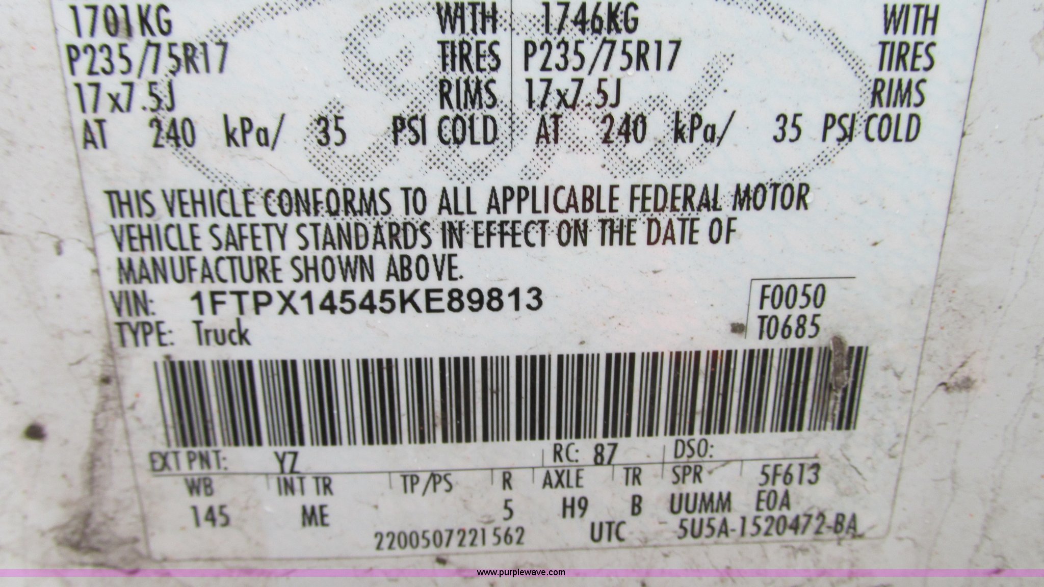 2005 Ford F150 XLT SuperCab pickup truck. 97,371 miles on odometer, 5.4L V6 SOHC 16V gas engine, Automatic transmission, Four wheel drive, AC and heat, Cruise, AM/FM/CD, Power windows, locks, mirrors, and driver seat, Cloth interior, Slide-in bed liner, Receiver hitch, Trailer wiring, 245/75R17 tires, Interior/exterior cosmetic damage, Missing tailgate, Running boards broken, EIN 781201. View item removal requirement and like-kind exchange information. 1FTPX14545KE89813. United Rentals - East Chicago. 300 W Chicago Ave. East Chicago, IN 46312