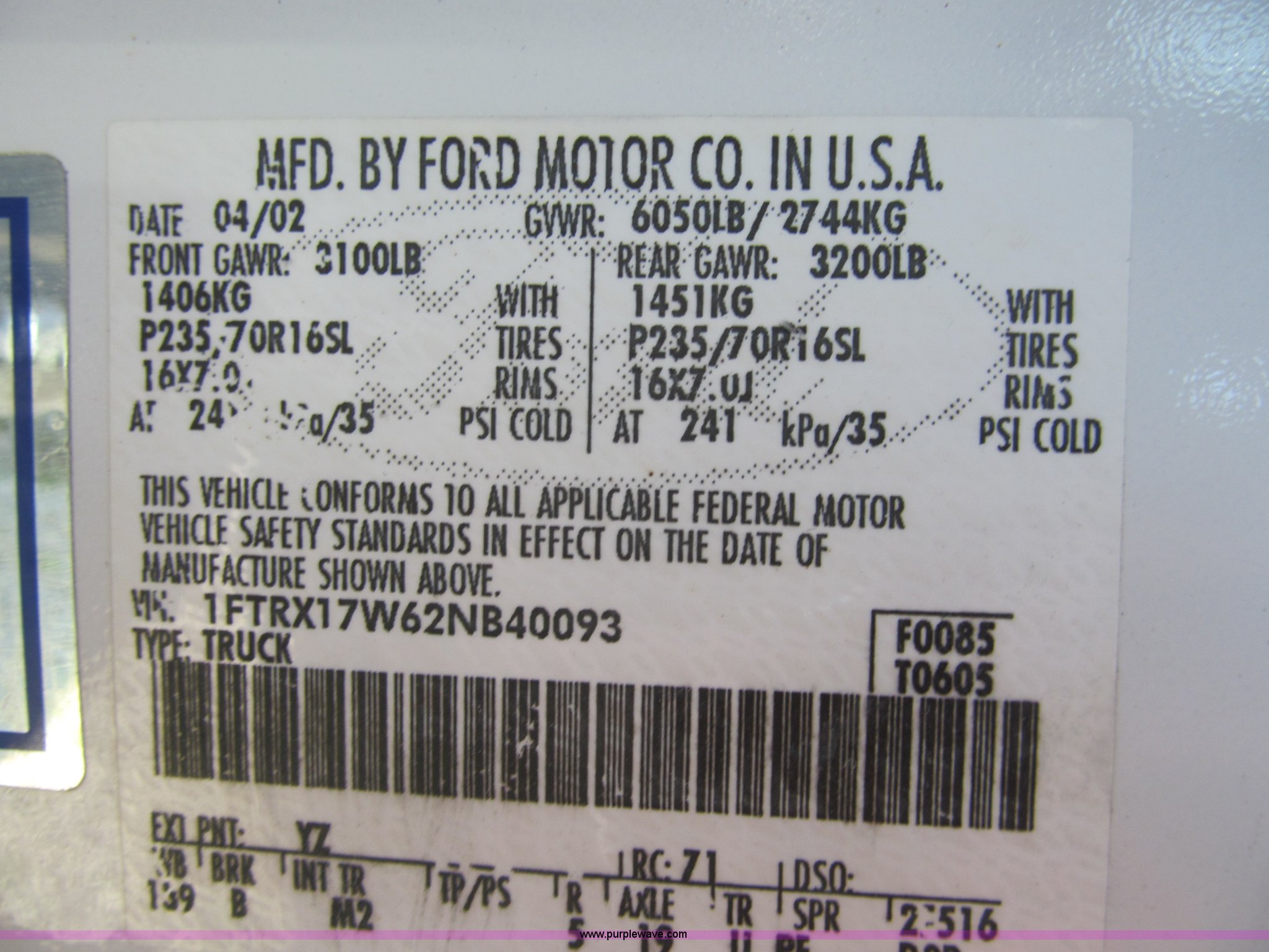 Purple Wave is selling a used 1/2 Ton Pickup or Van in Mississippi. This item is a 2002 Ford F150 XLT SuperCab pickup truck with the following: 153,229 actual miles, 4.6L V8 SOHC 16V gas engine, Automatic transmission, AC and heat, Tilt, Cruise, AM/FM/CD, Power windows, locks, and mirrors, Cloth interior, Bed caps, Bed liner, Receiver hitch, Trailer wiring, P235/70R16 tires, Tailgate damage, Front bumper damage, Chipped paint, Minor rust, EIN 427870RA