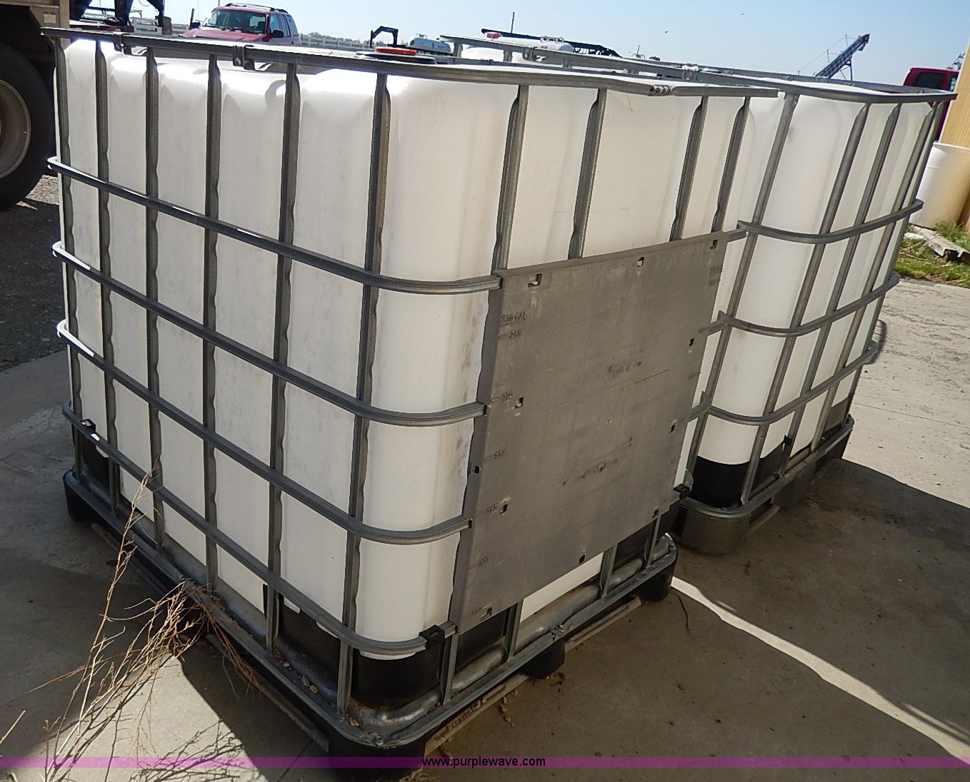 Purple Wave is selling a used Tanks in Kansas. This item is a (2) 260 gallon liquid tanks with the following: Cages