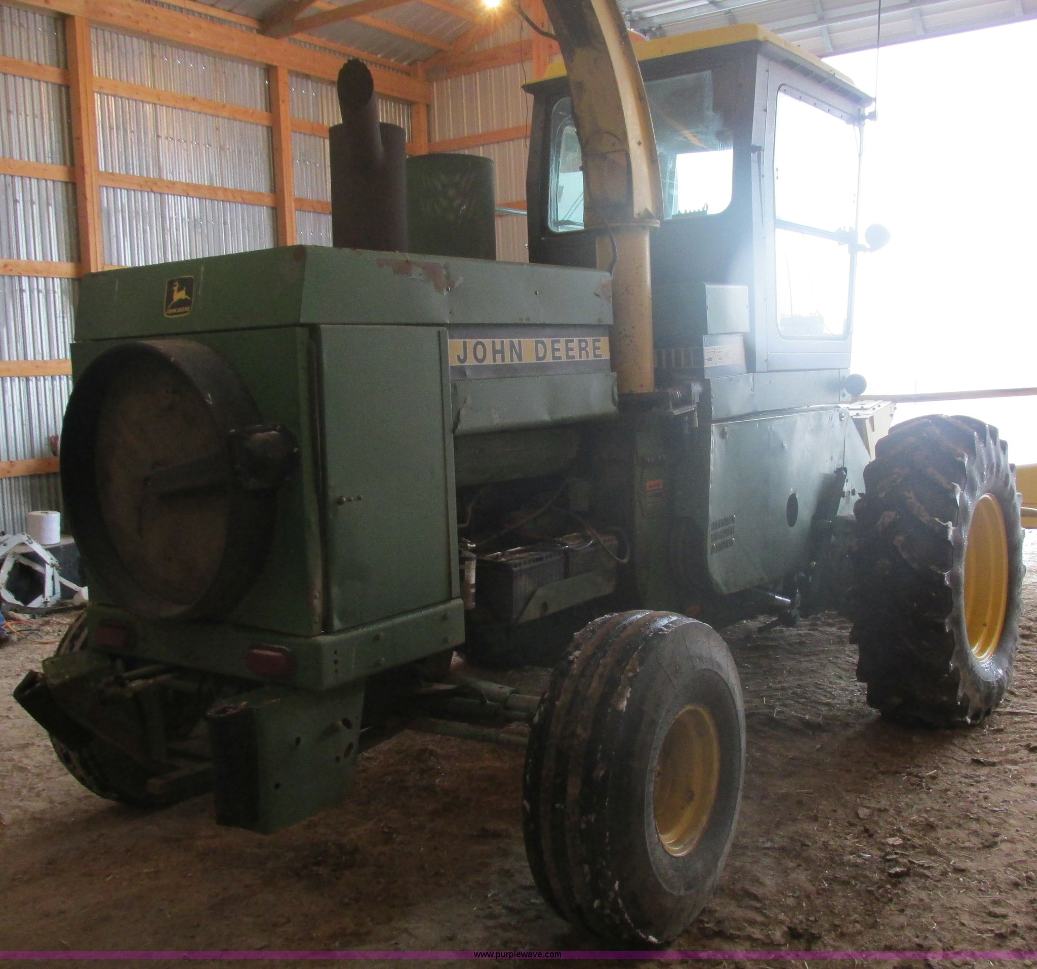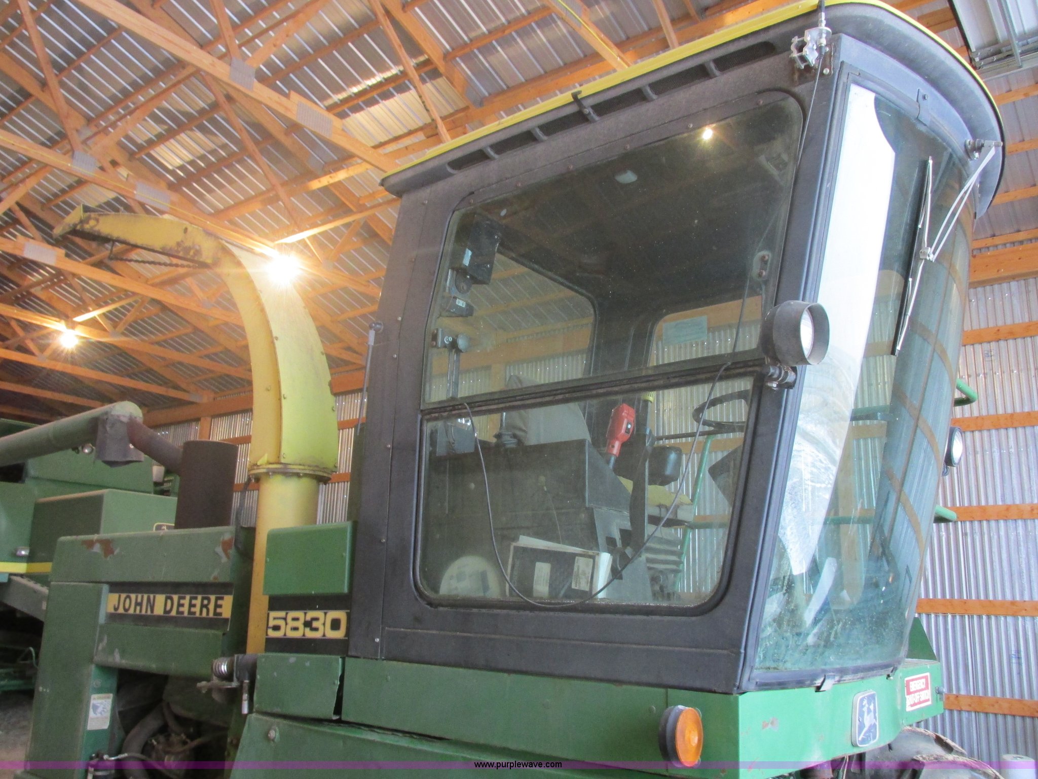 Purple Wave is selling a used Forage Harvester in South Dakota. This item is a 1990 John Deere 5830 forage harvester with the following: 4,001 hours on meter, John Deere six cylinder diesel engine, Serial 95008483, Hydrostatic transmission, Enclosed cab, AC and heat, AM/FM, Windshield wipers, Front work lights, Rear auxiliary hydraulics, CB radio, Four row converging corn head, Serial E000RCX812635, 18.4-30 front tires, 14L-16.1 SC rear tires, Serial E05830X852214