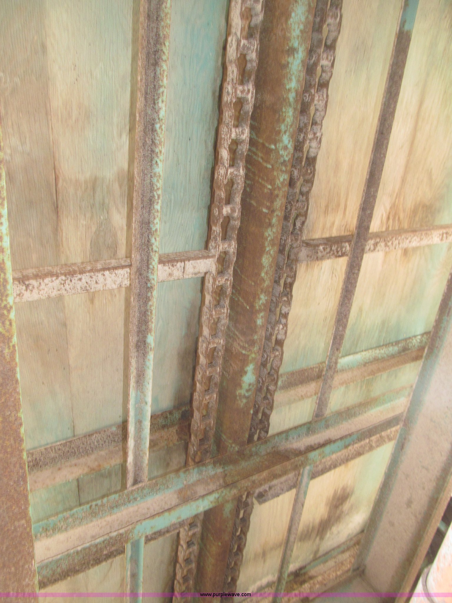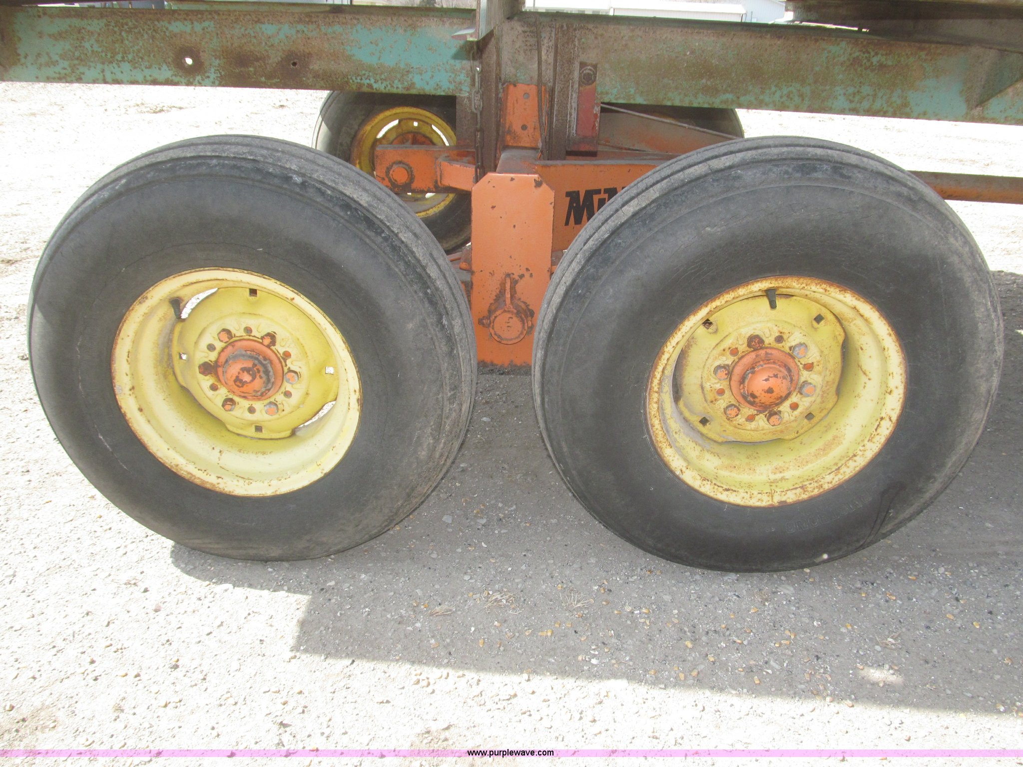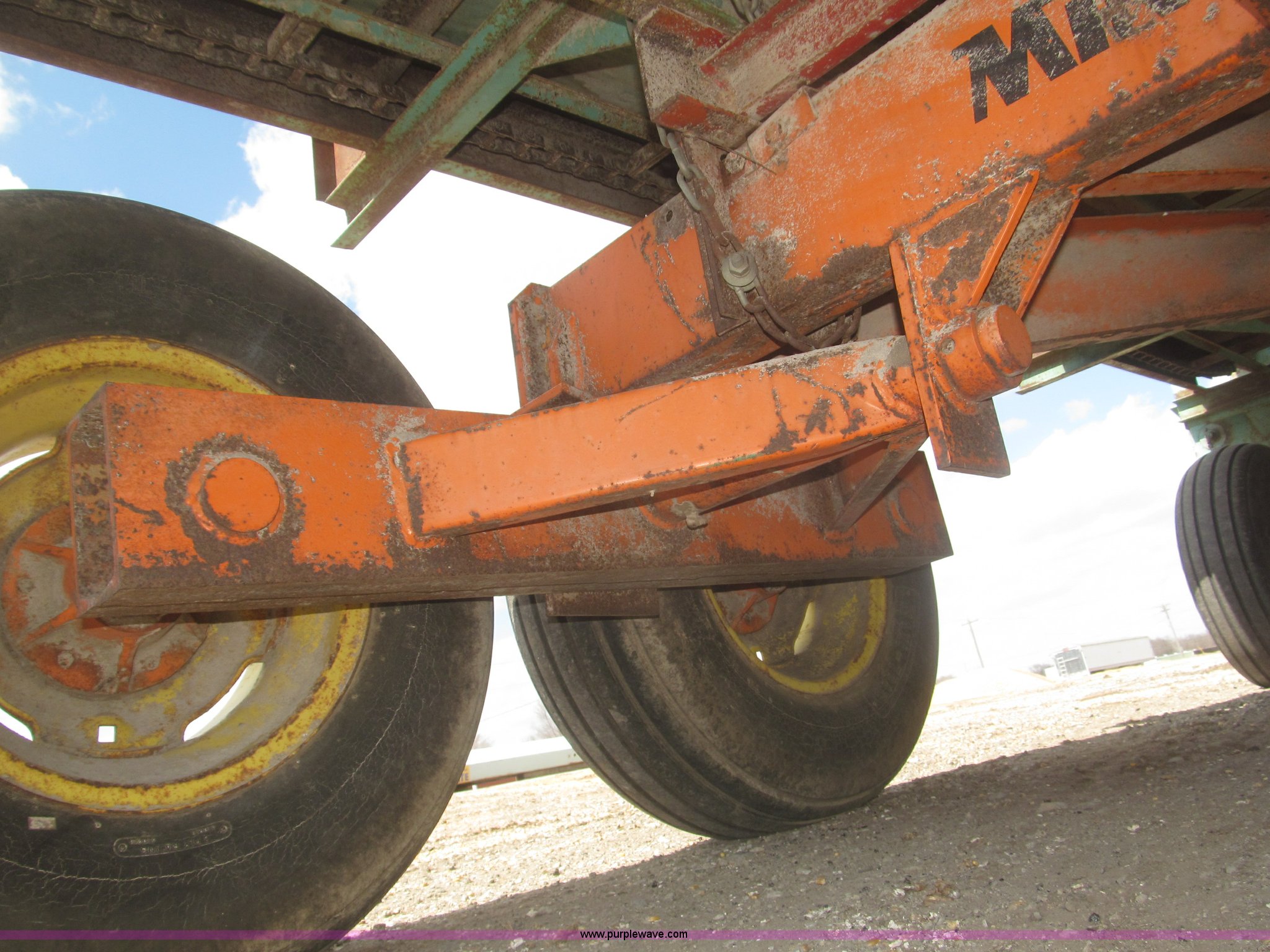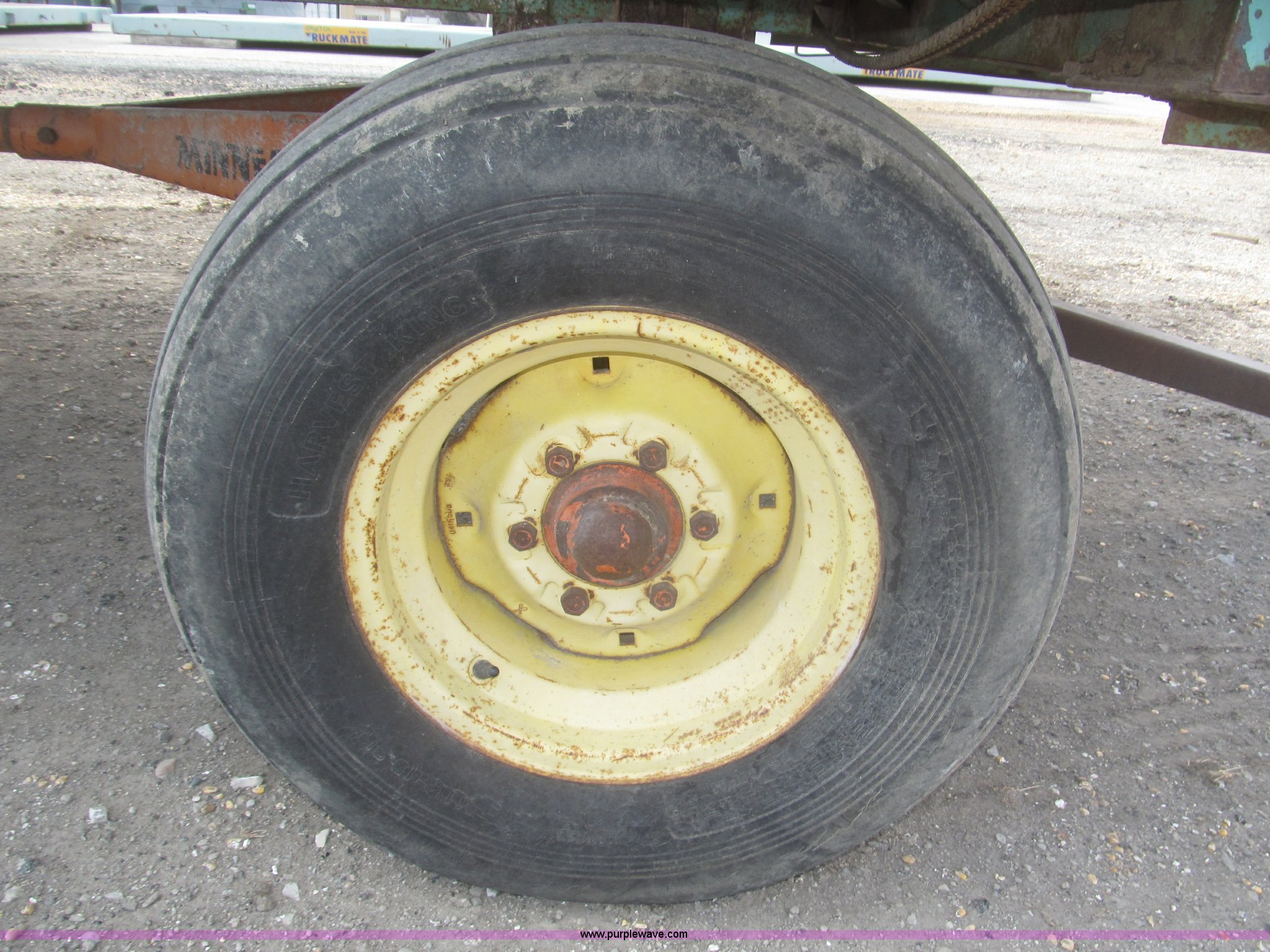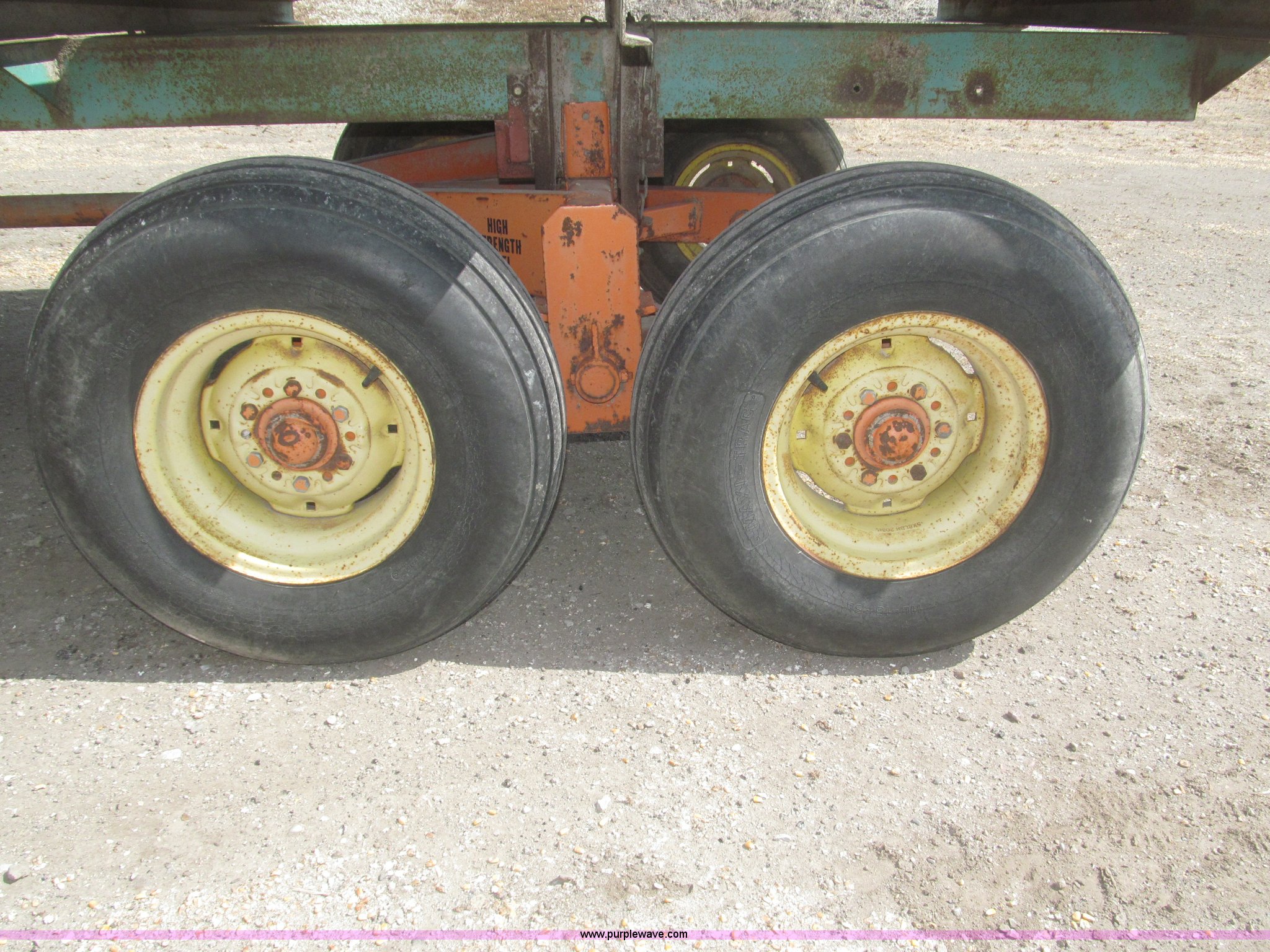 Purple Wave is selling a used Forage Head or Silage Handling in Iowa. This item is a Forage King A186 forage wagon with the following: 540 PTO, Two speed apron, Rear end gate, Approx. 16'L x 7'W O.D. box, Approx. 100"H ground to top of side rail, Adjustable length pin hitch tongue, Rear pin hitch, Minneota Tandem 12 running gear, Model12078, Six hole steel wheels, 11L-15 tires, Tires cracking, Floor showing wear, Serial 1068