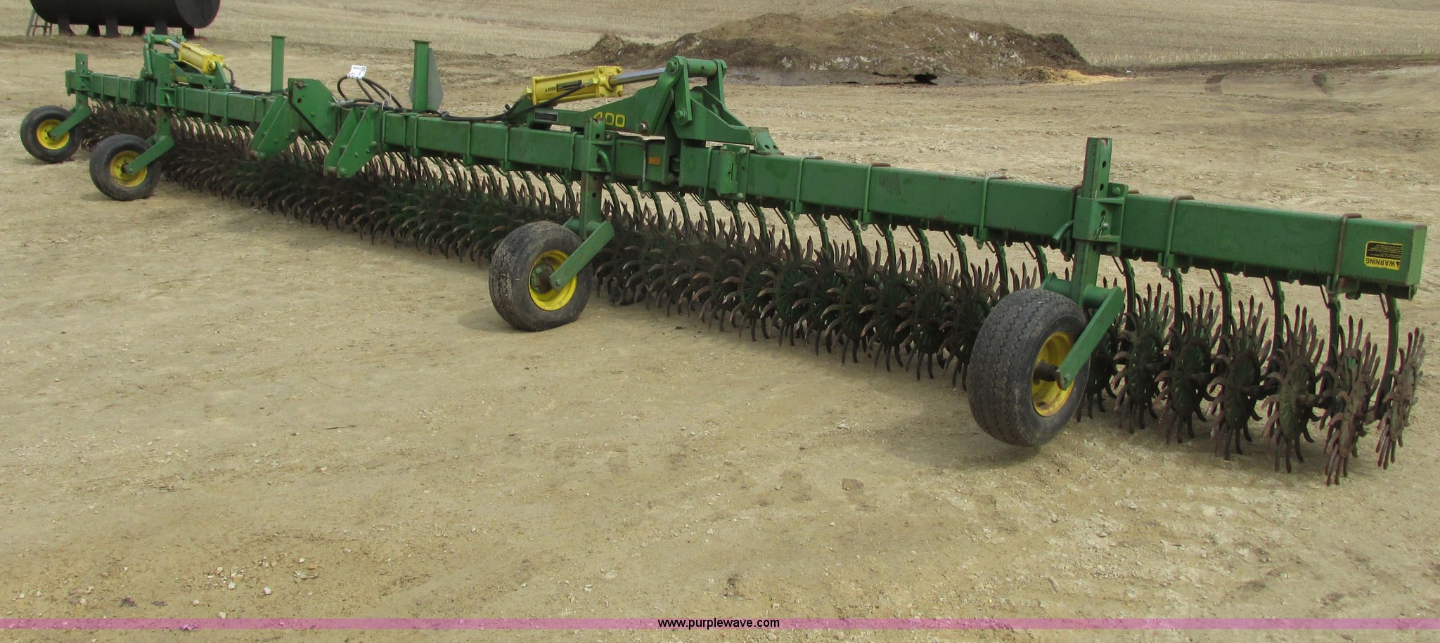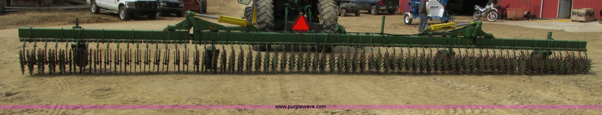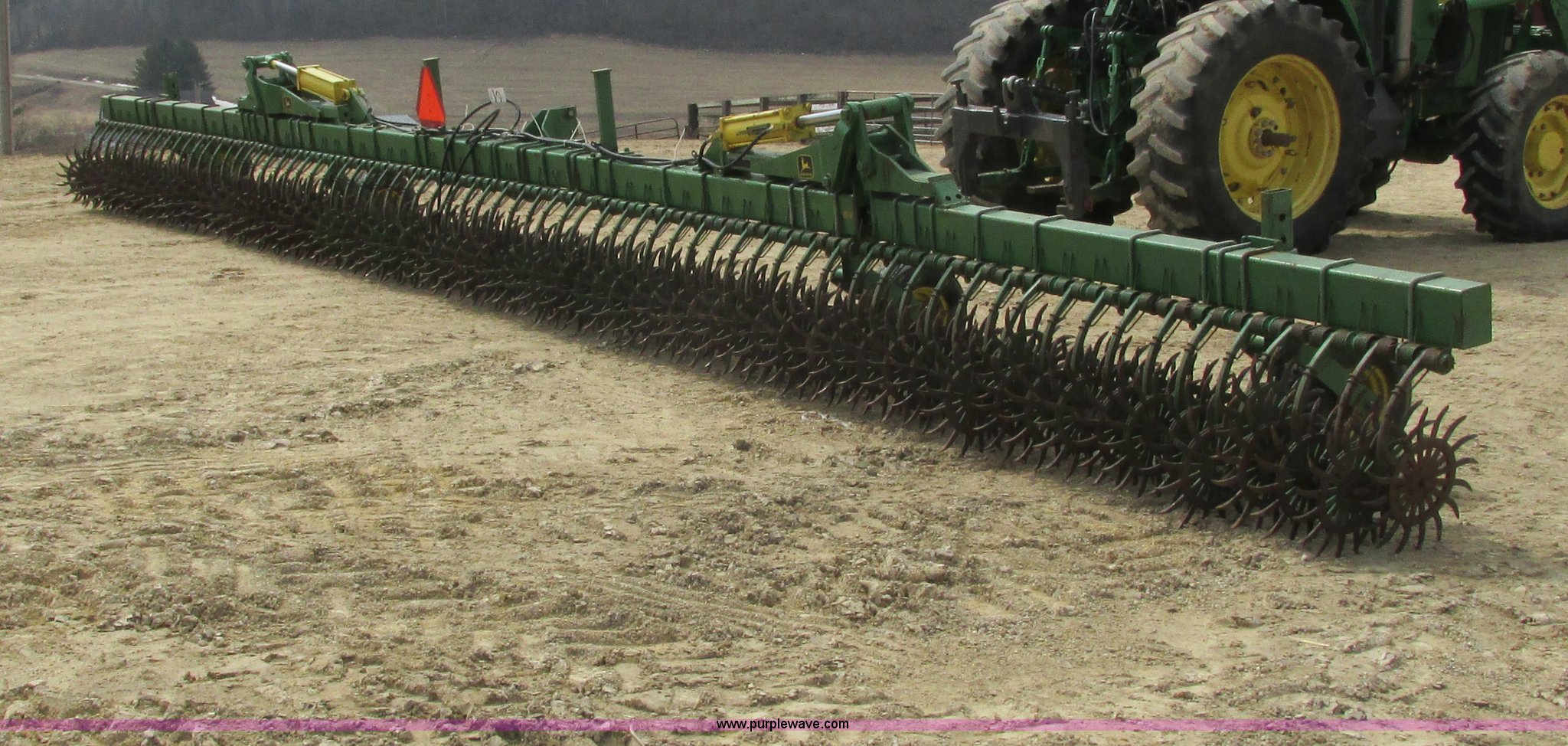 Purple Wave is selling a used Rotary Tillage in Wisconsin. This item is a John Deere 400 rotary hoe with the following: 40'W, Hydraulic folding, Adjustable height, 20" diameter tine wheels, Load Range B, Serial 001162