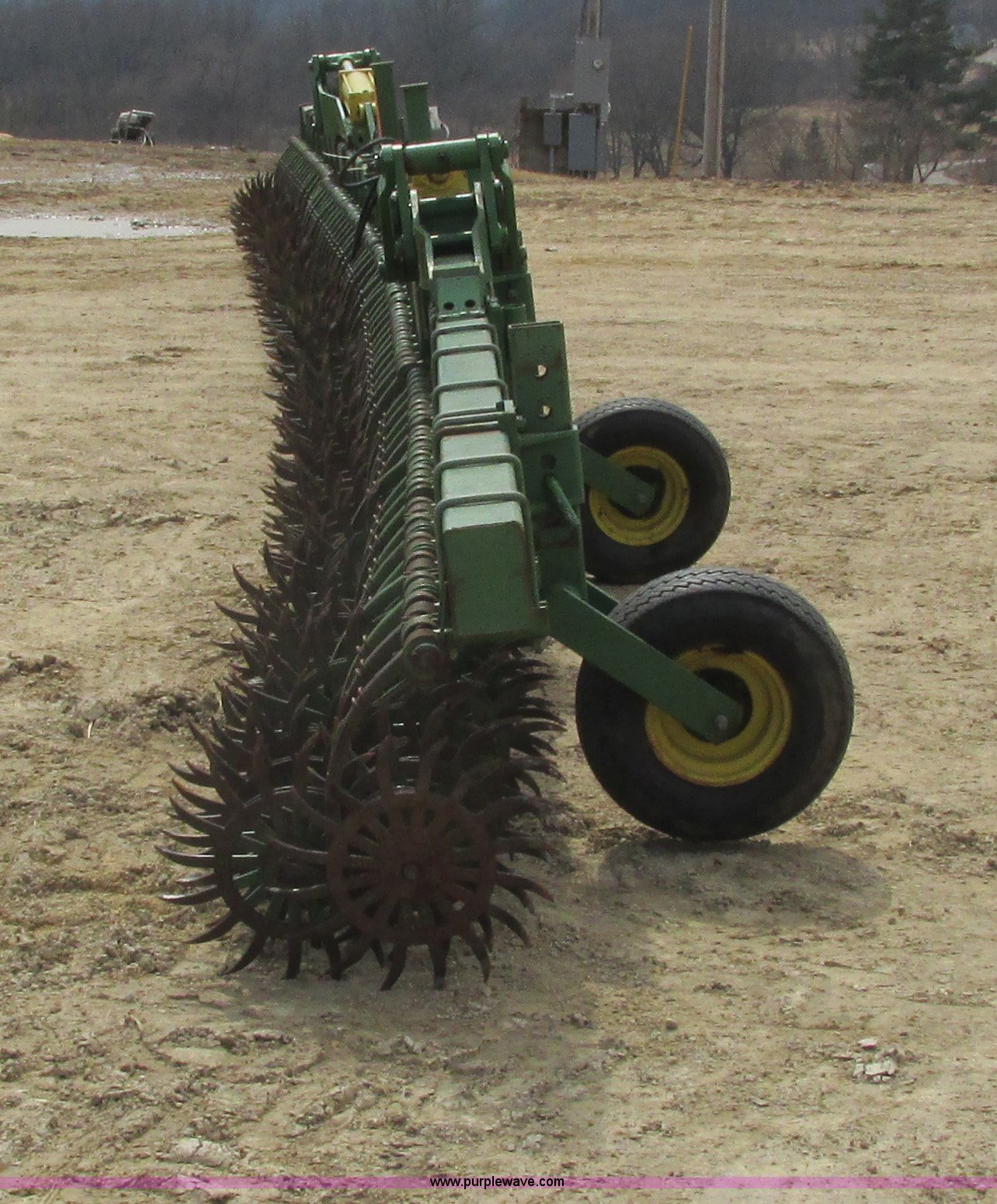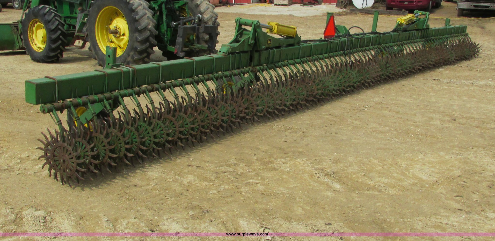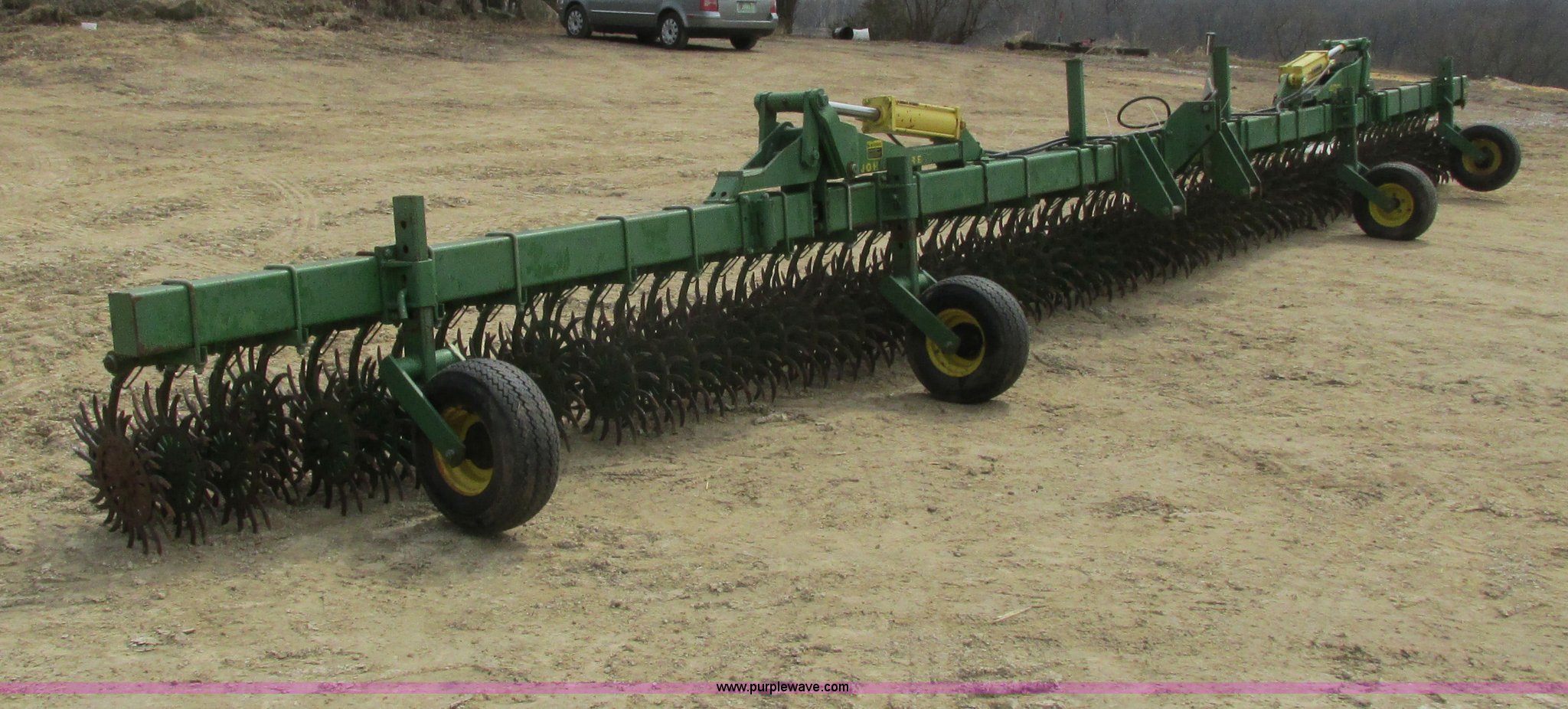 Purple Wave is selling a used Rotary Tillage in Wisconsin. This item is a John Deere 400 rotary hoe with the following: 40'W, Hydraulic folding, Adjustable height, 20" diameter tine wheels, Load Range B, Serial 001162