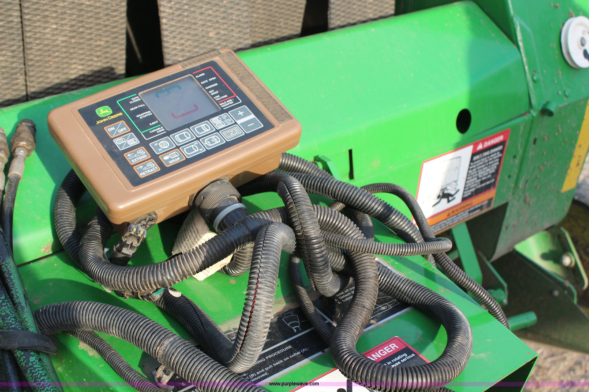 Purple Wave is selling a used Round Baler in Kansas. This item is a 2004 John Deere 567 round baler with the following: Approx. 7,500 bales on baler, 1000 PTO, 5' x 6' bale capacity, Net wrap, Dual arm twine tie, Bale kicker, Gauge wheels, Monitor, 31x13.50-15 tires, Serial E00567X301056