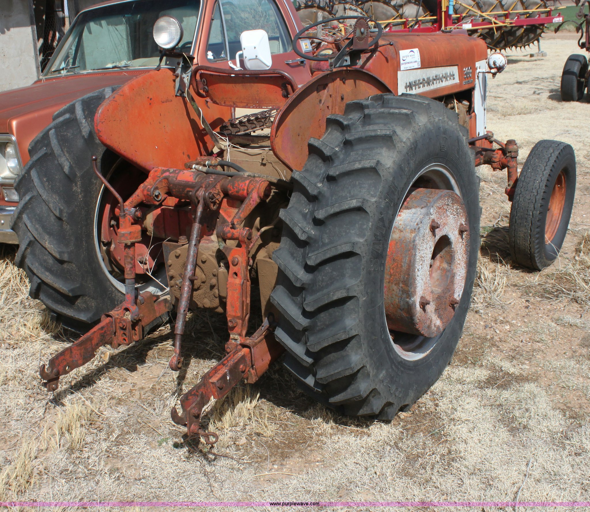 Purple Wave is selling a used Tractor in Kansas. This item is a International 300 utility tractor with the following: Four cylinder gas engine, 5F-1R gears, Torque amplifier, 540 PTO, Three point, 15" front tires, 13.6-28 rear tires, Has to be pull started, Serial 11173J